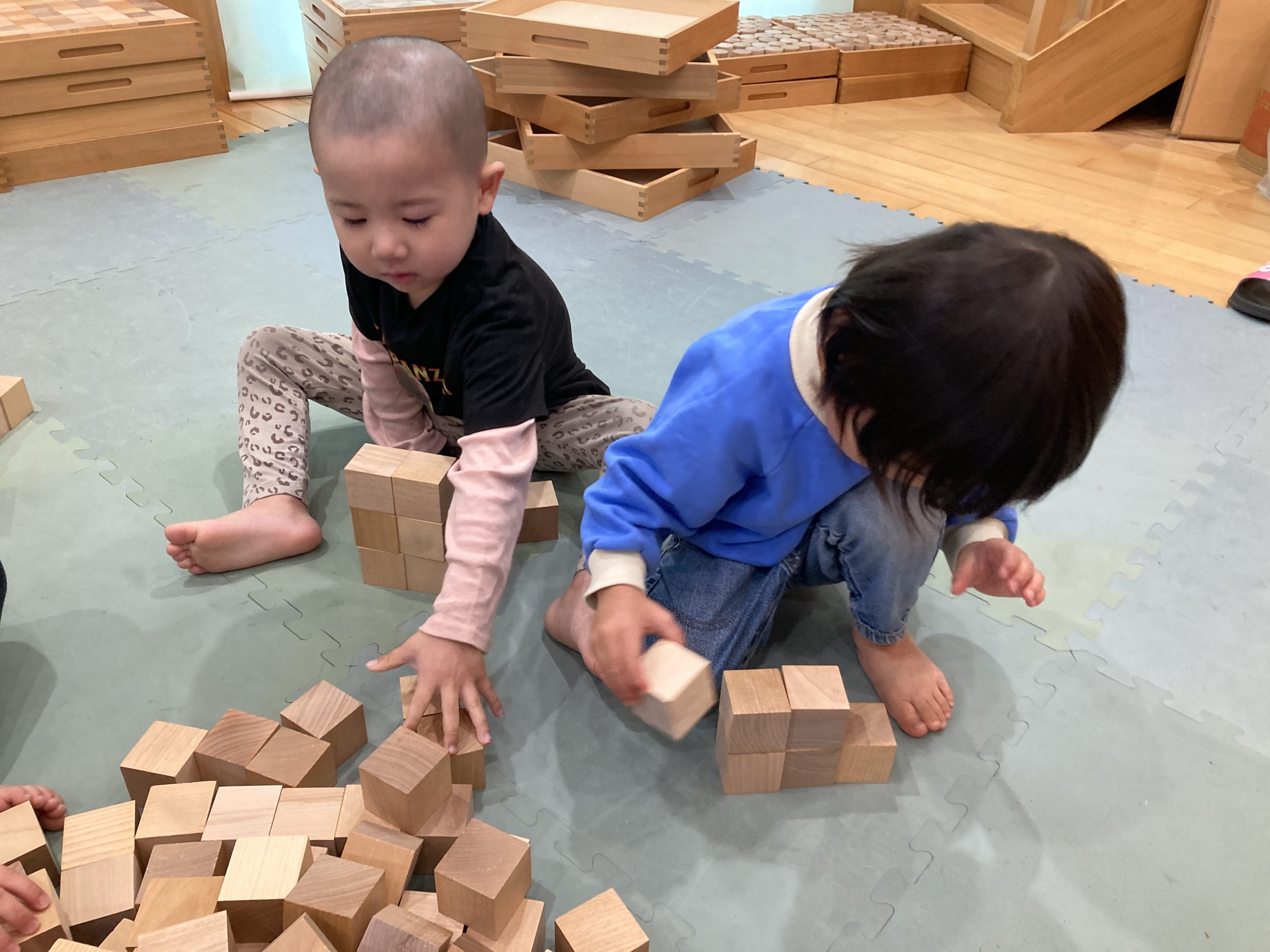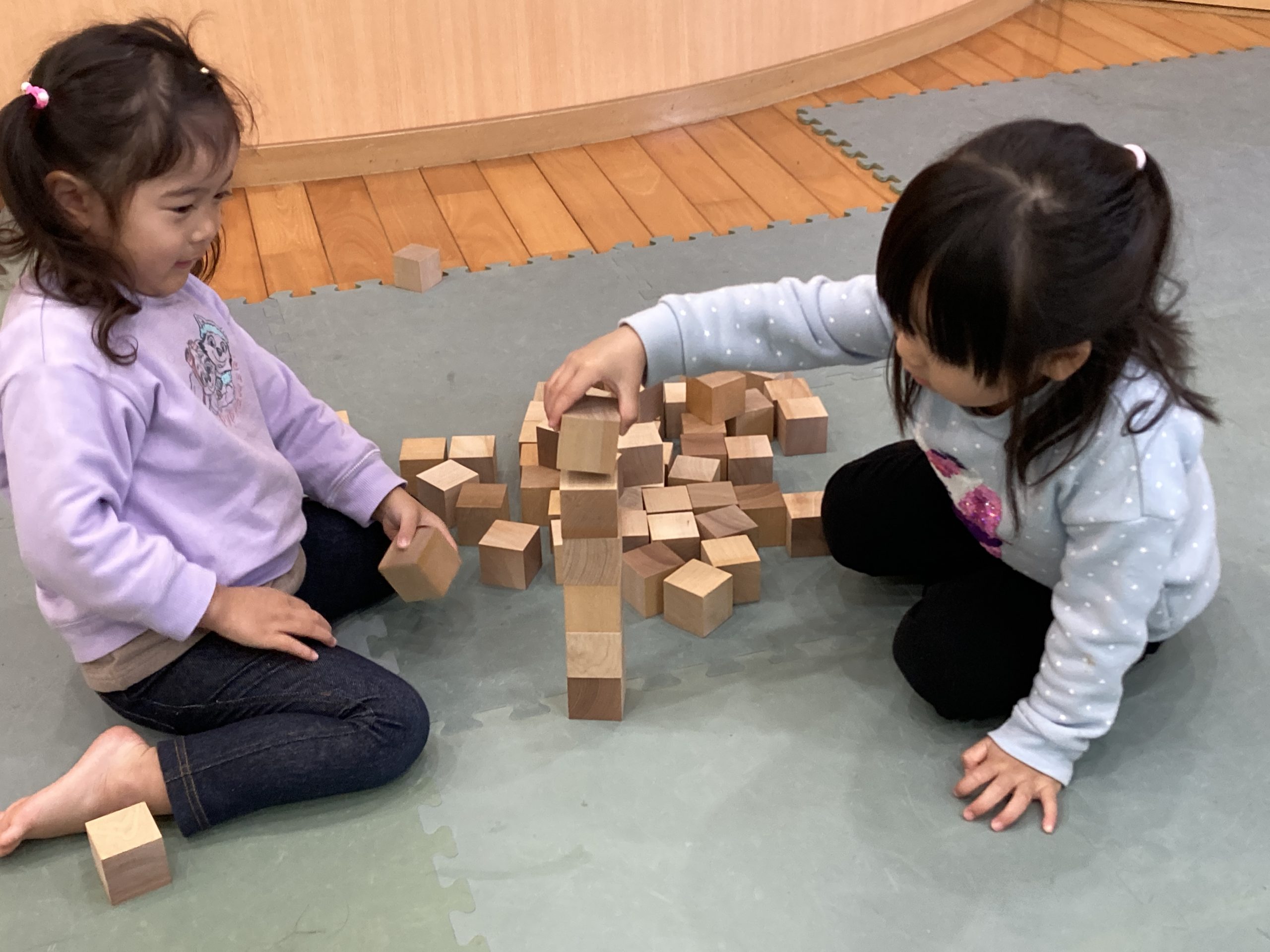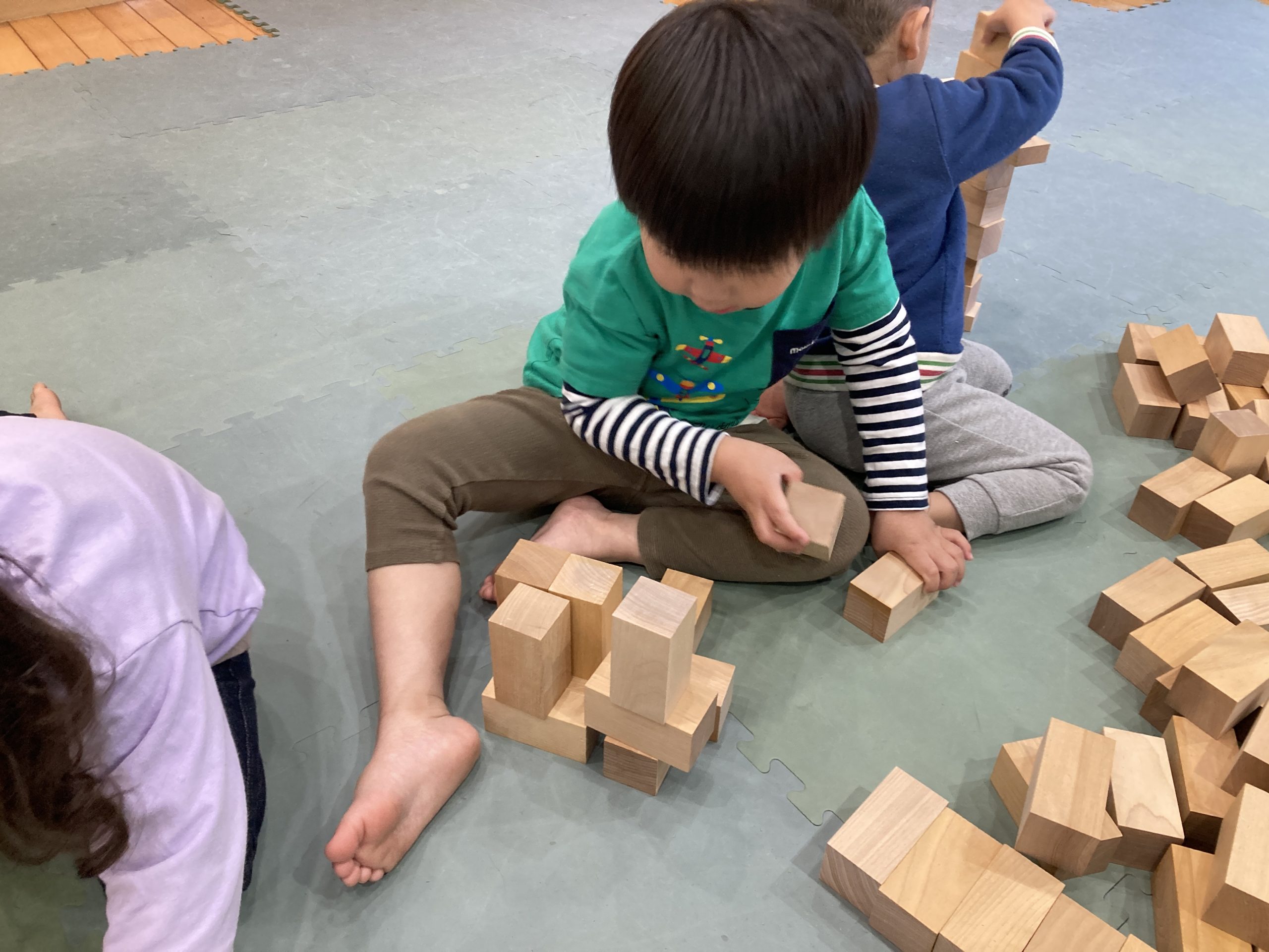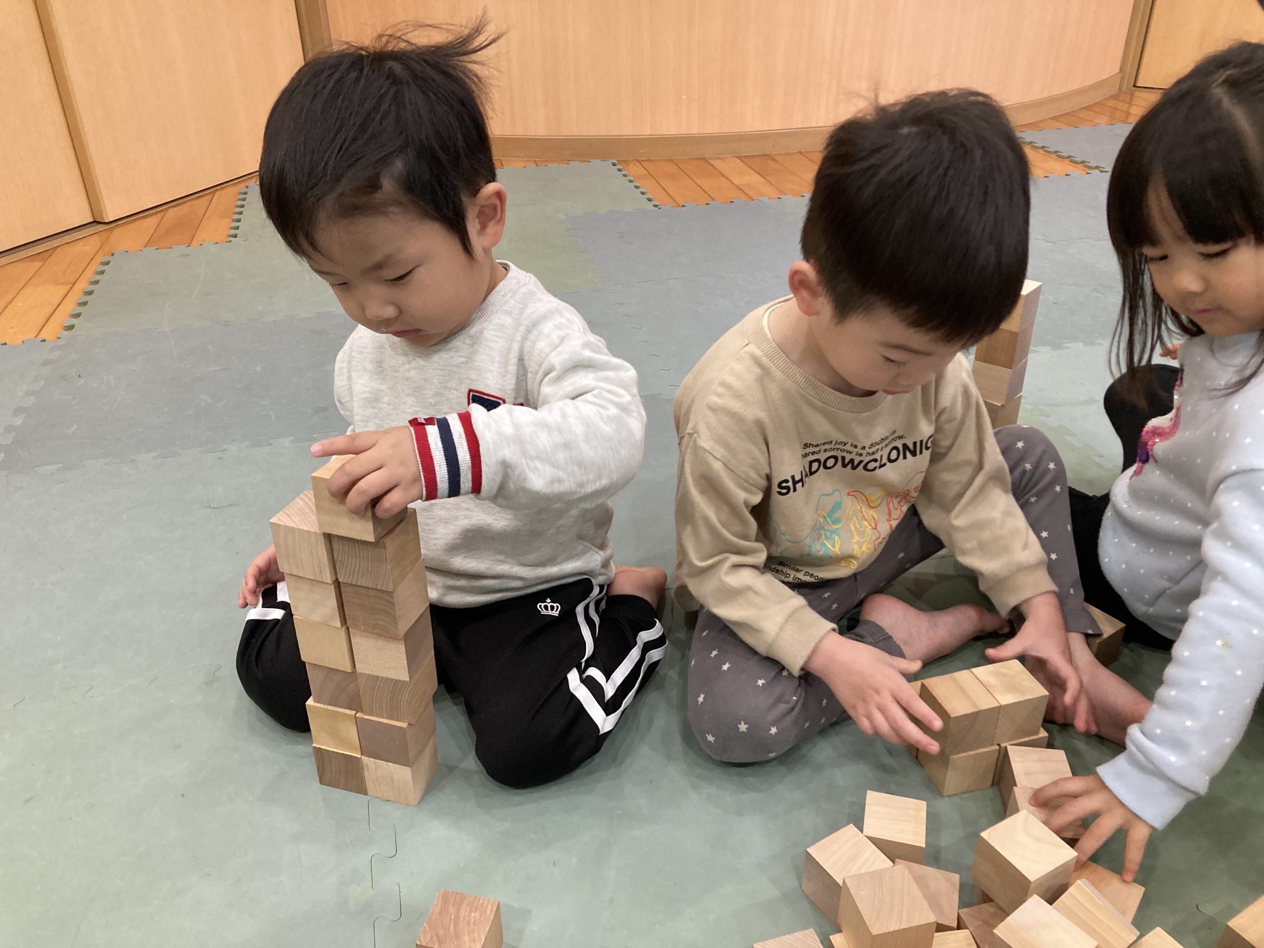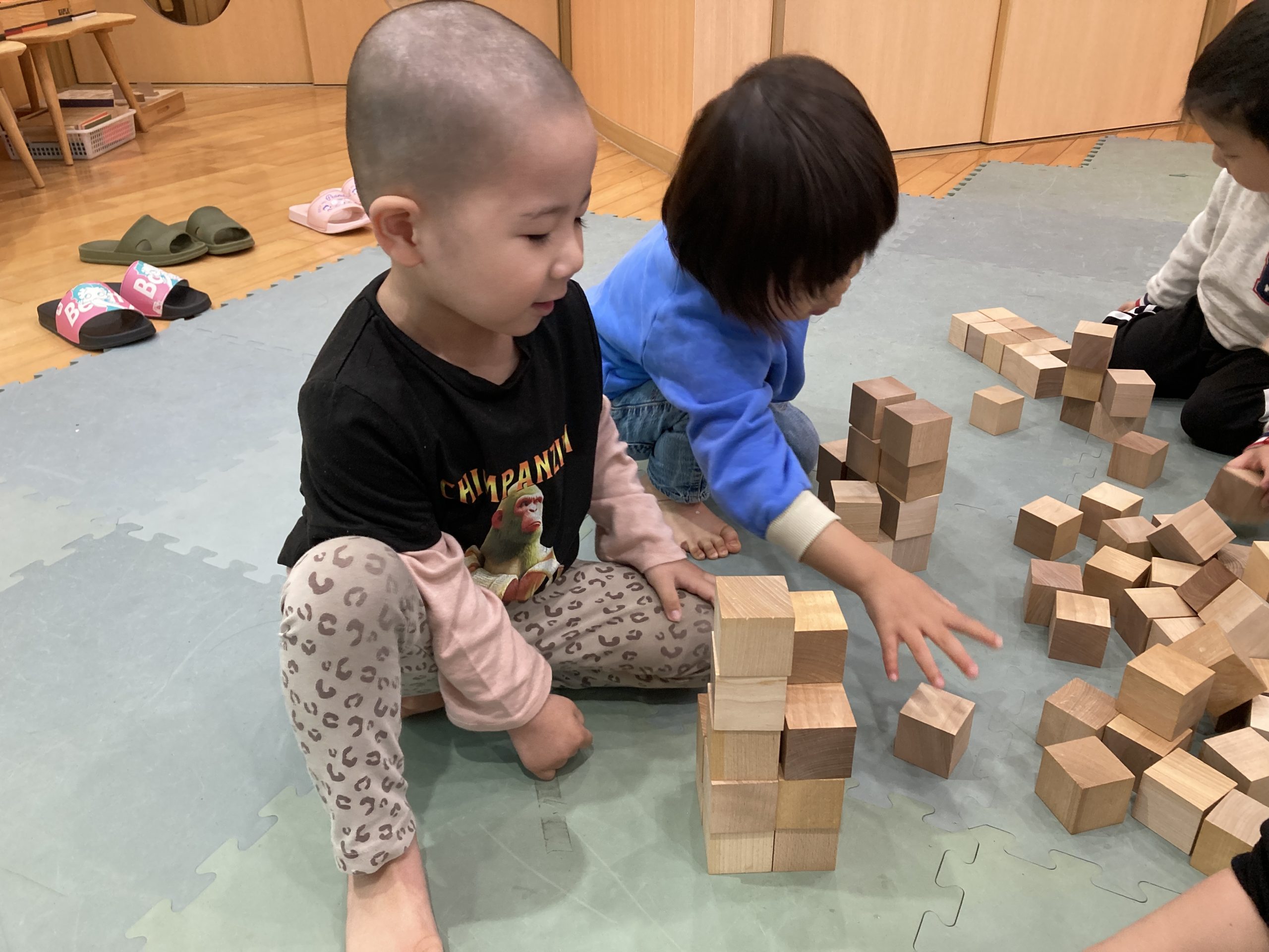 今日は、積み木遊びをしました✨お友だちと仲良く一緒に楽しんでいましたよ~♪