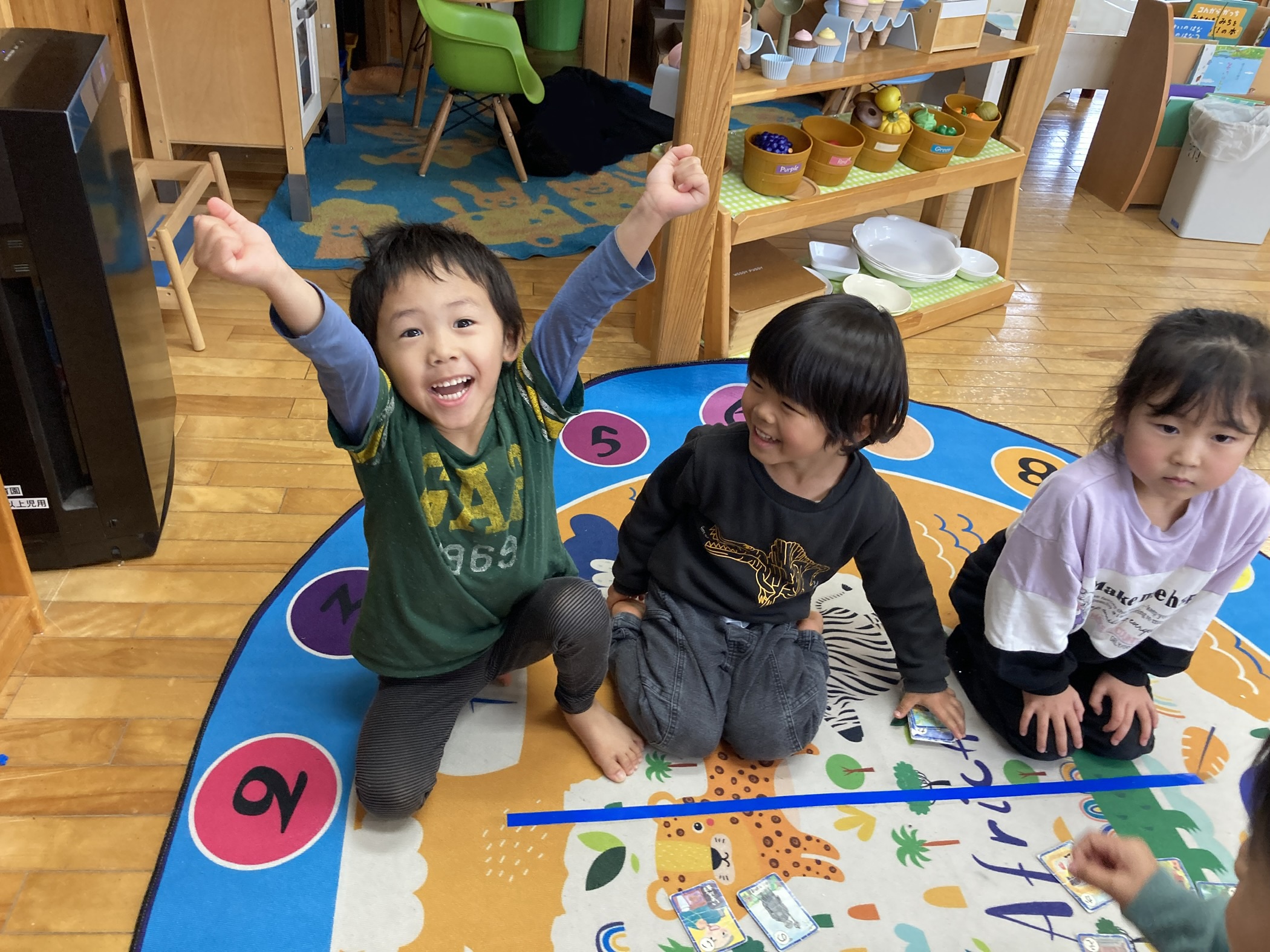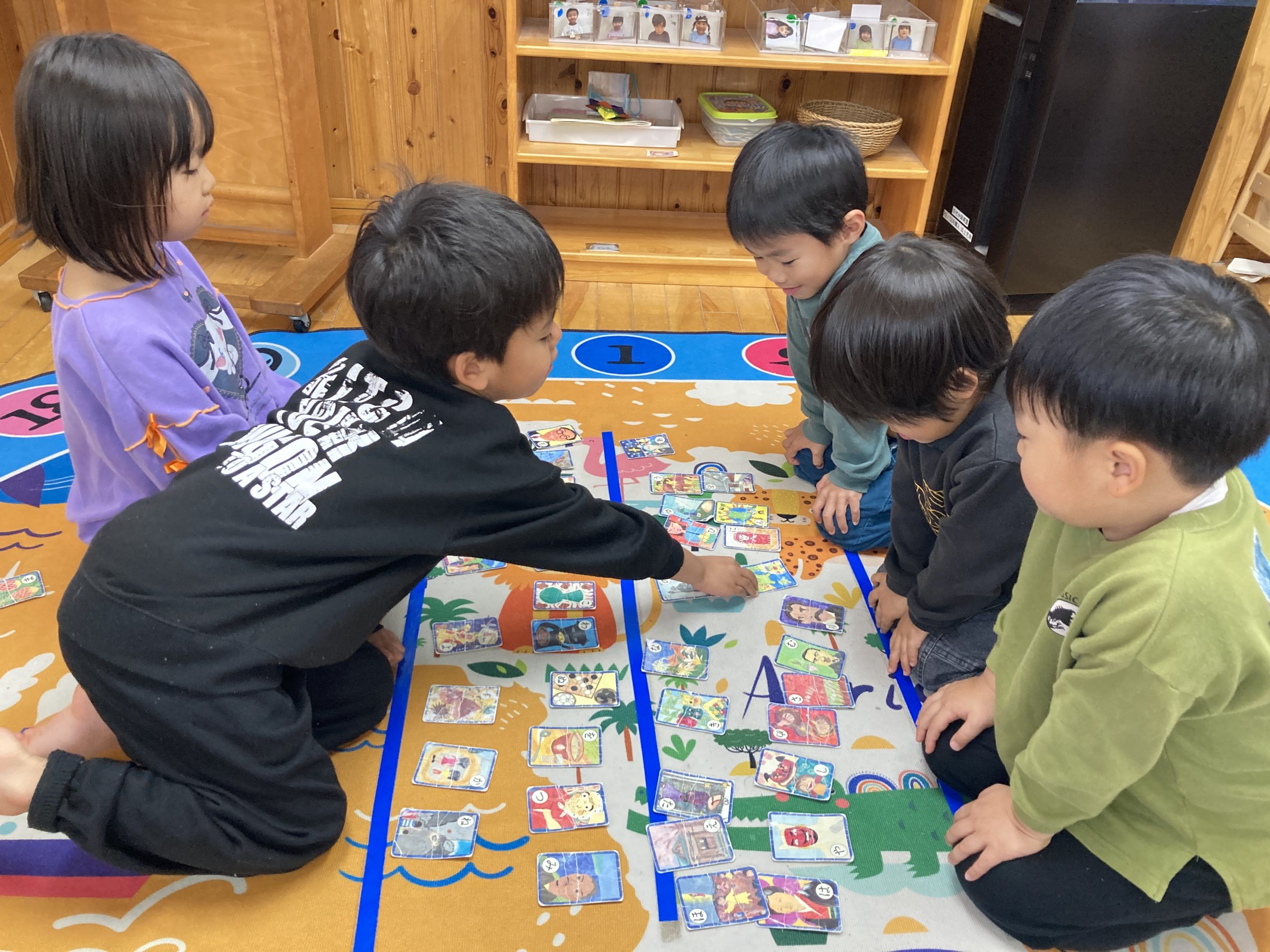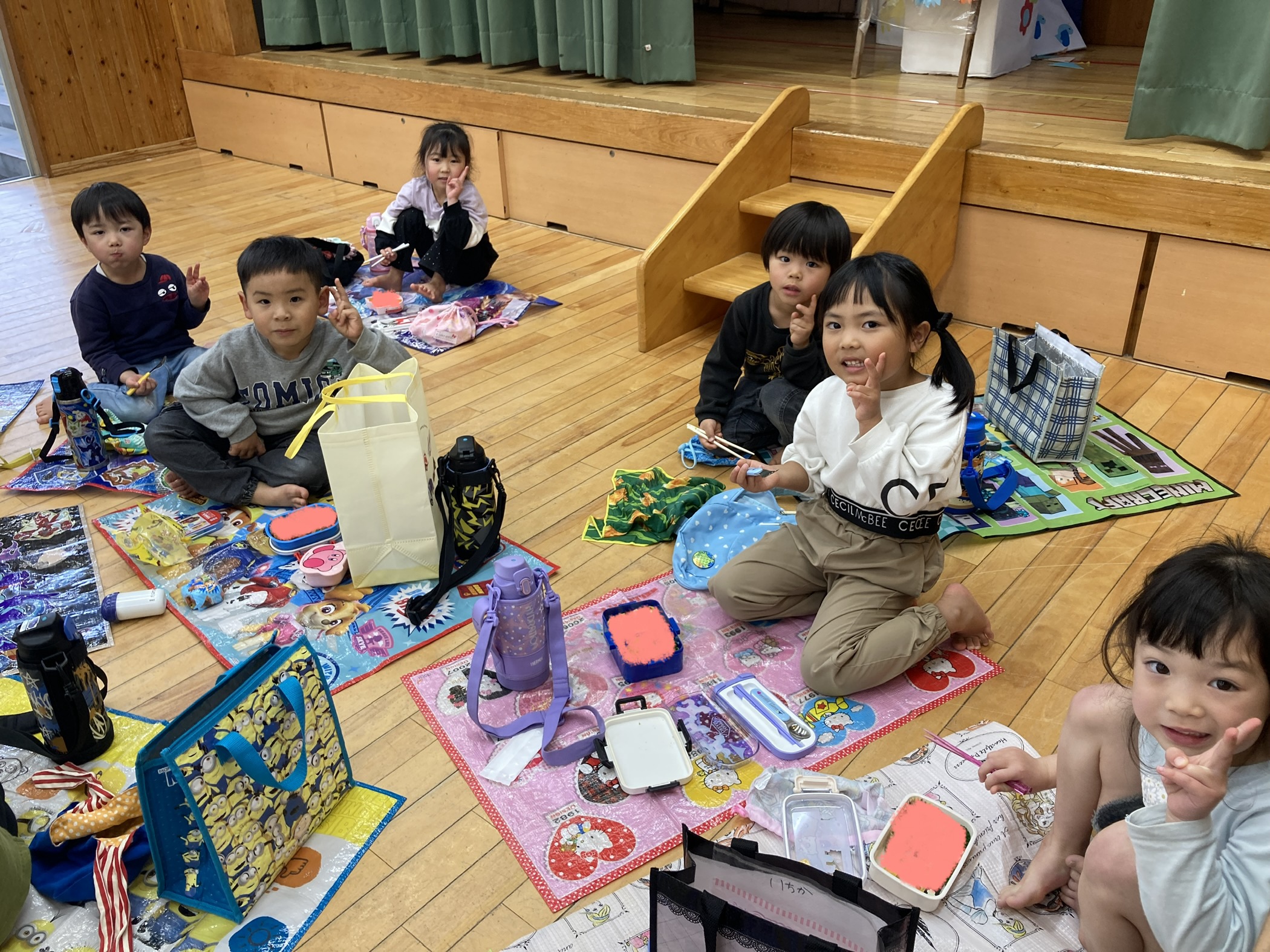 今日はひむかかるたをしました☀️初めてでしたがやり方を覚えたりひらがなや絵を見てカードを取ったりと楽しんでいました🍀また、楽しみにしていたお弁当の時間ではとても美味しそうに楽しそうに食べていました😋💖