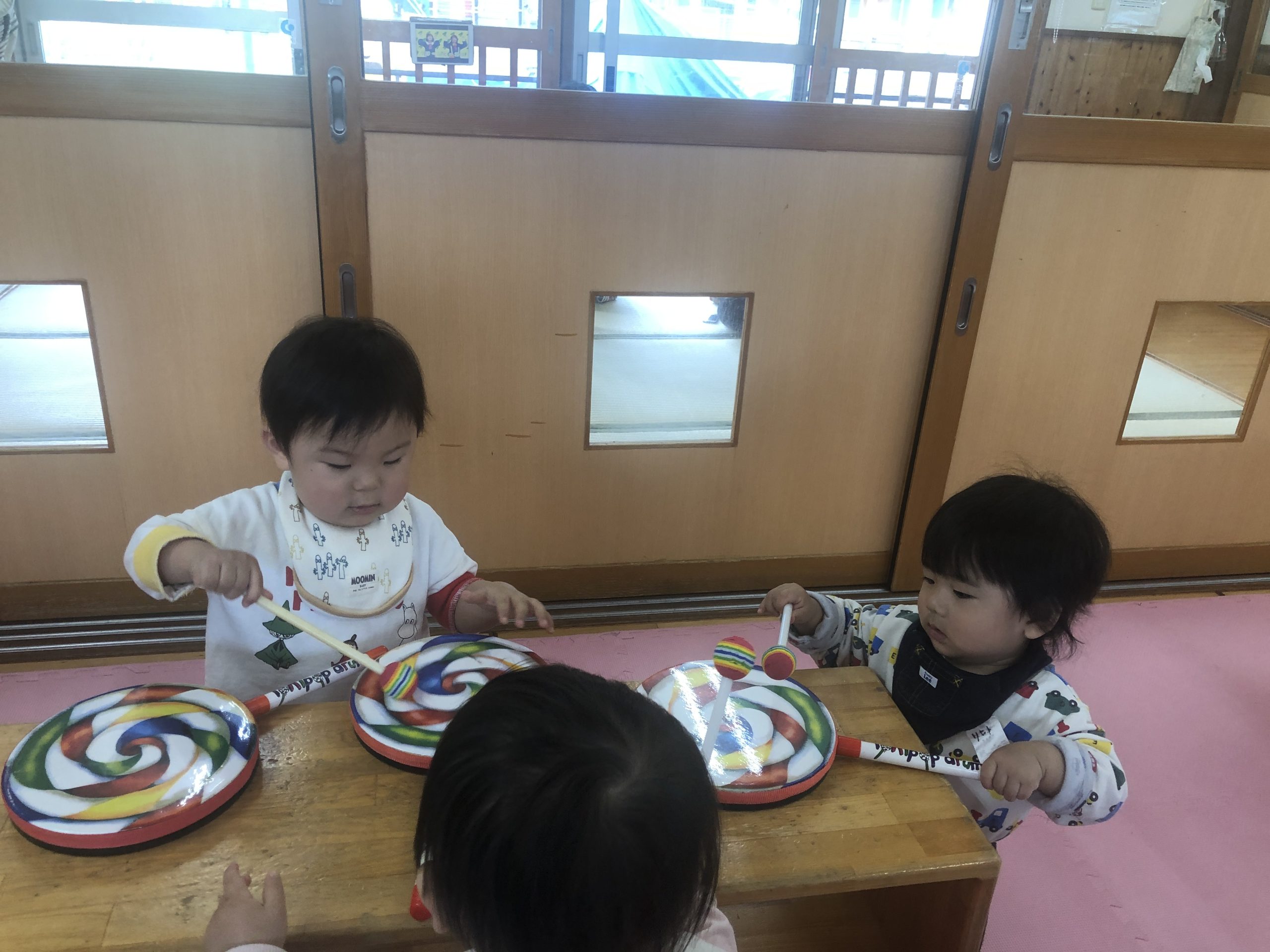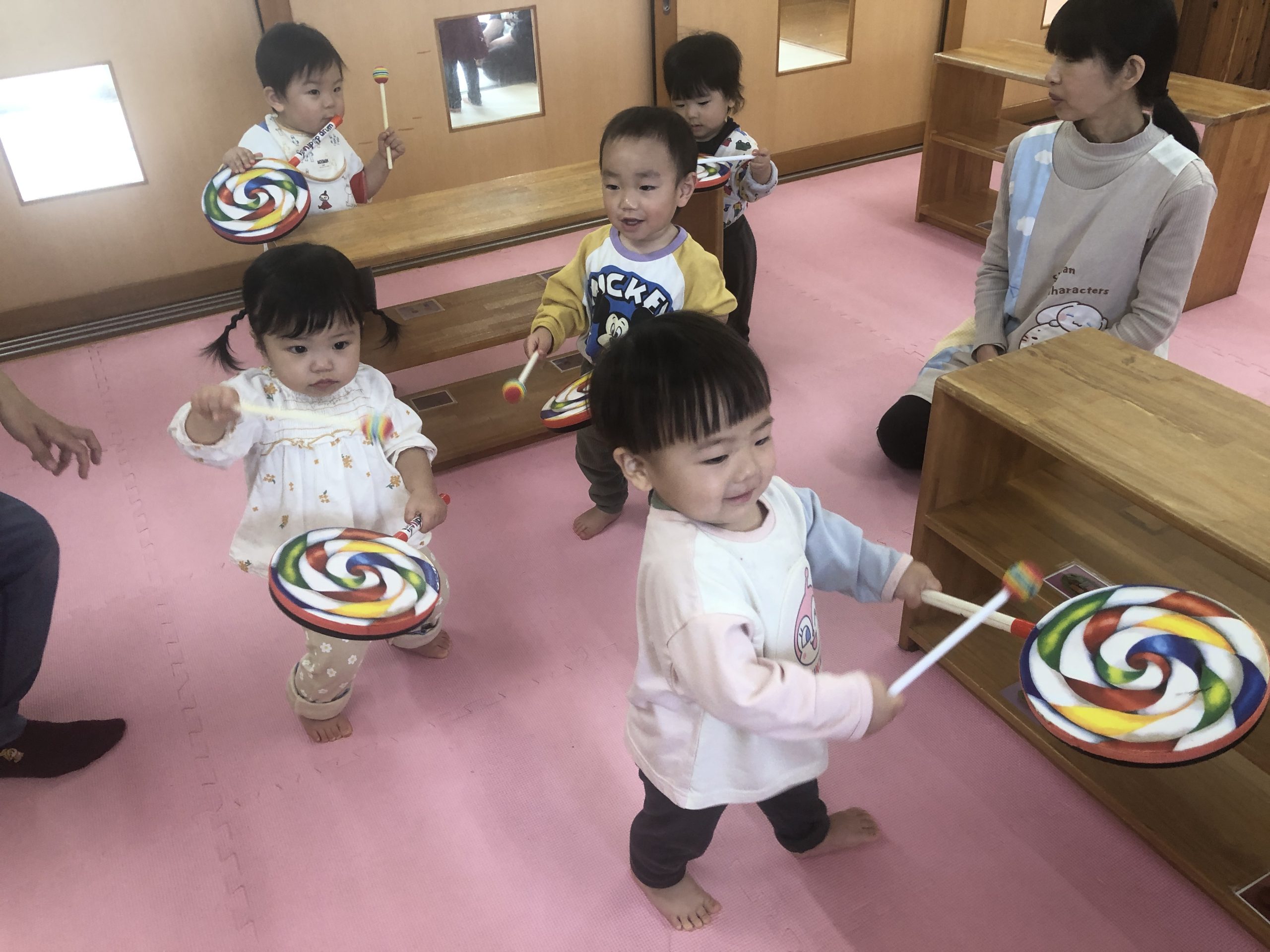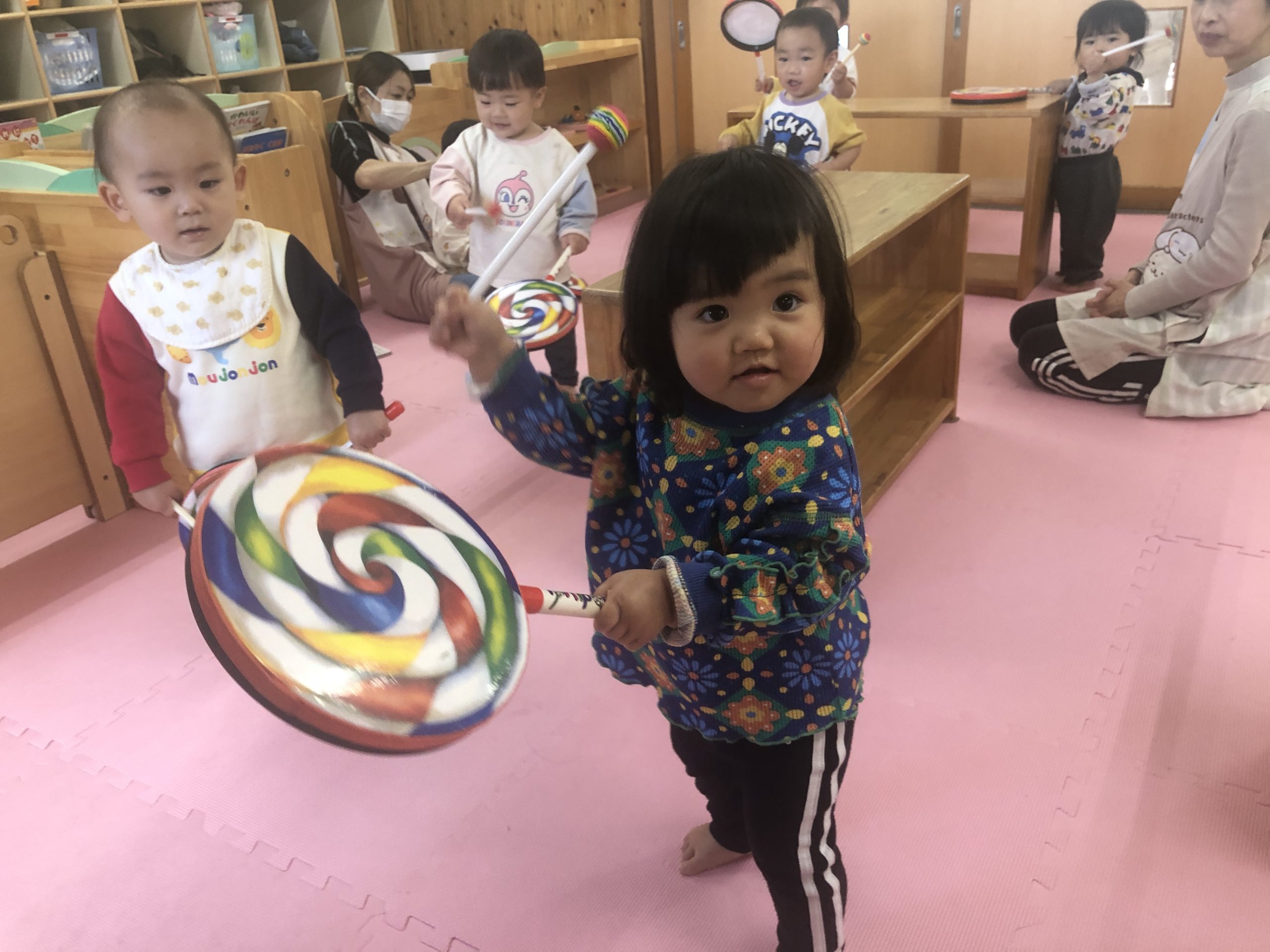 今日は、色の分別分類あそびをしました。カラーボールを手に同じ色のボックスを探して入れていましたよ✨音楽を聞きながらリズムにのって、手持ち太鼓を鳴らして楽しんでいました♫