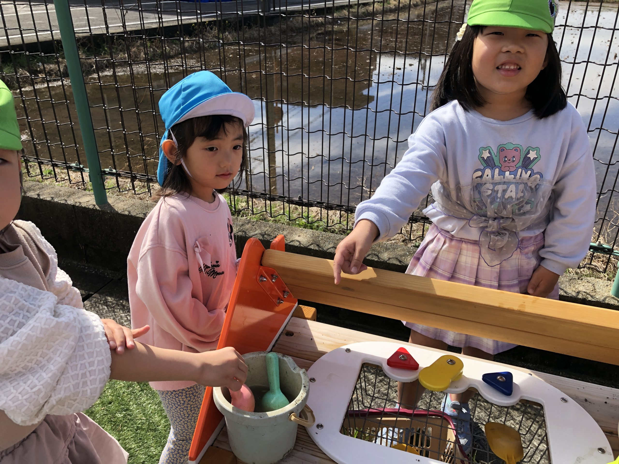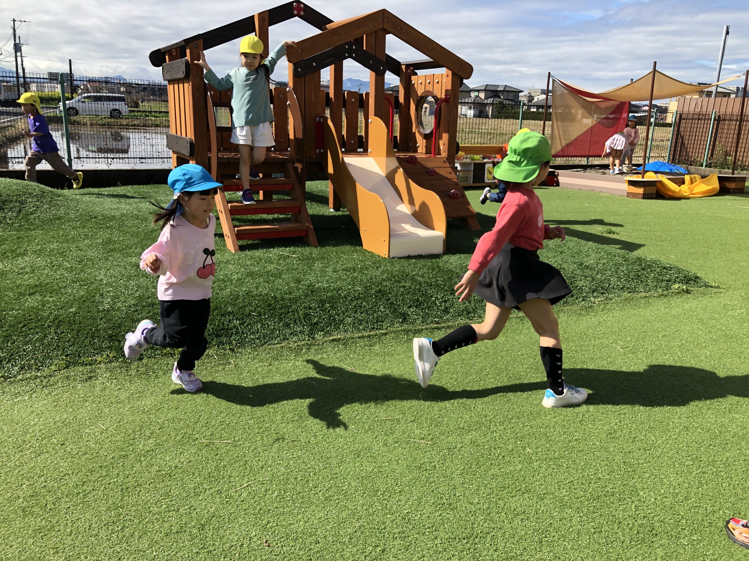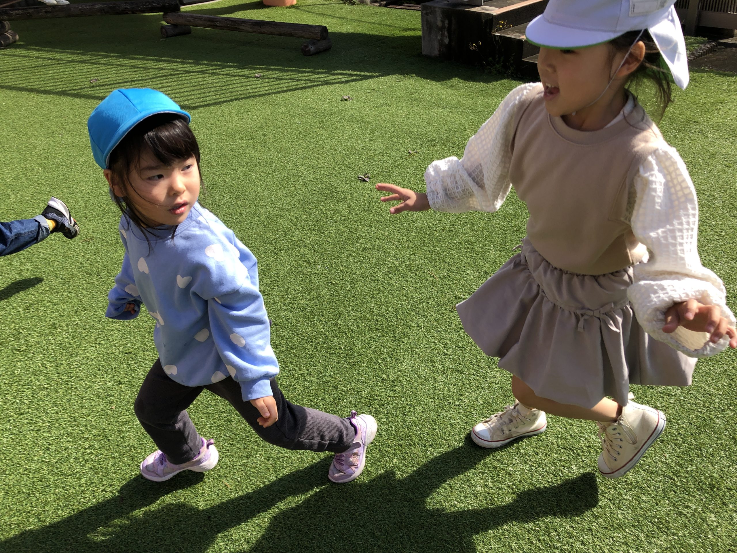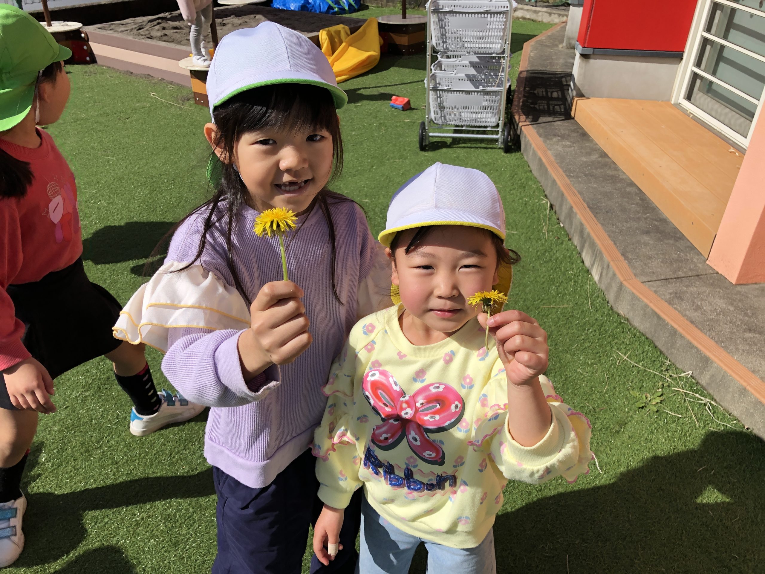 今日の異年齢グループは、新園舎の園庭で遊びました☀️砂場遊びや、氷鬼・しっぽ取り・色鬼などなど好きな遊びをしながらみんな元気いっぱい遊んでいましたよ!!また、たんぽぽやバッタなど春の自然・生き物にも触れ時間いっぱい戸外遊びを満喫していました🍀