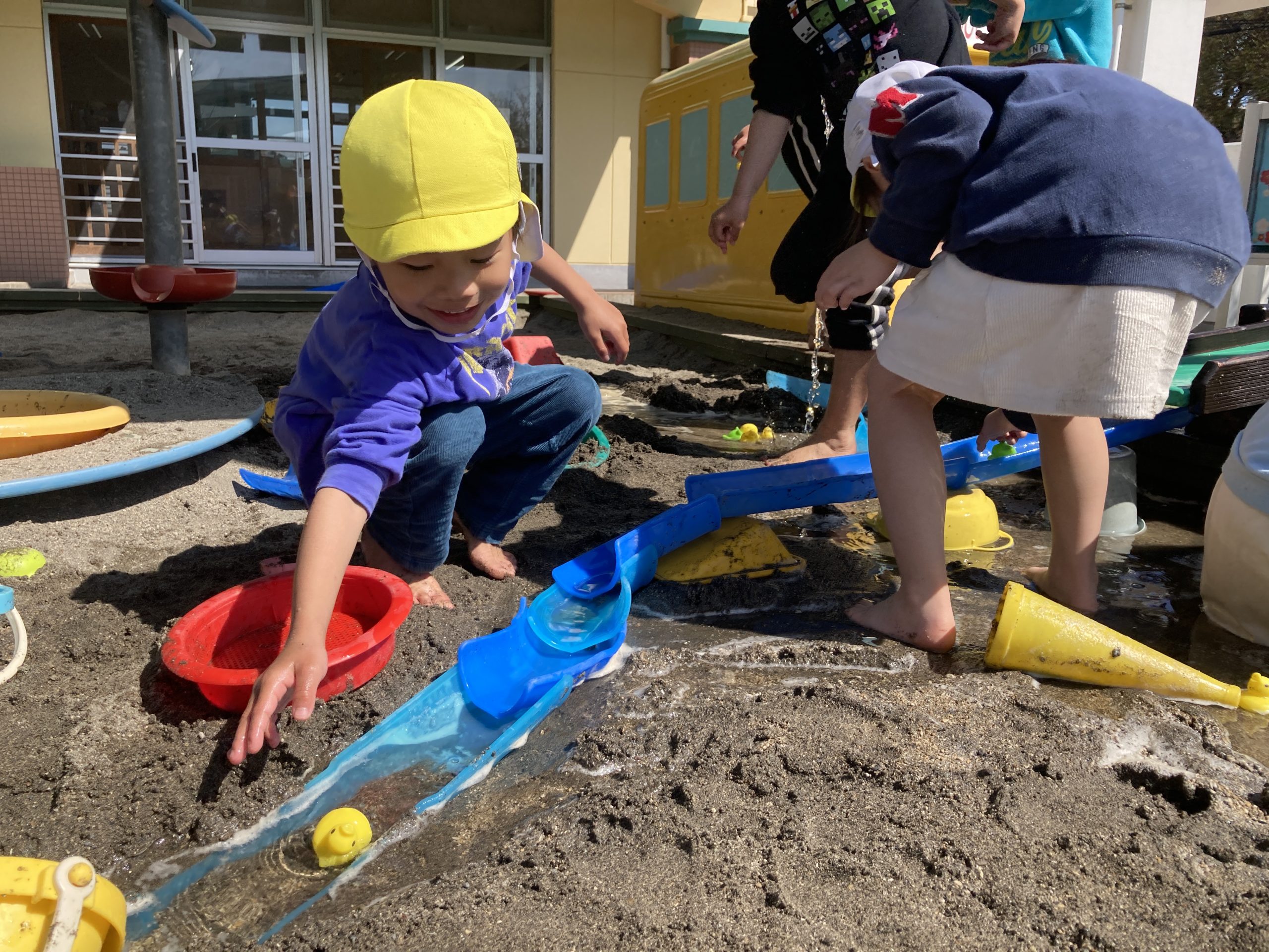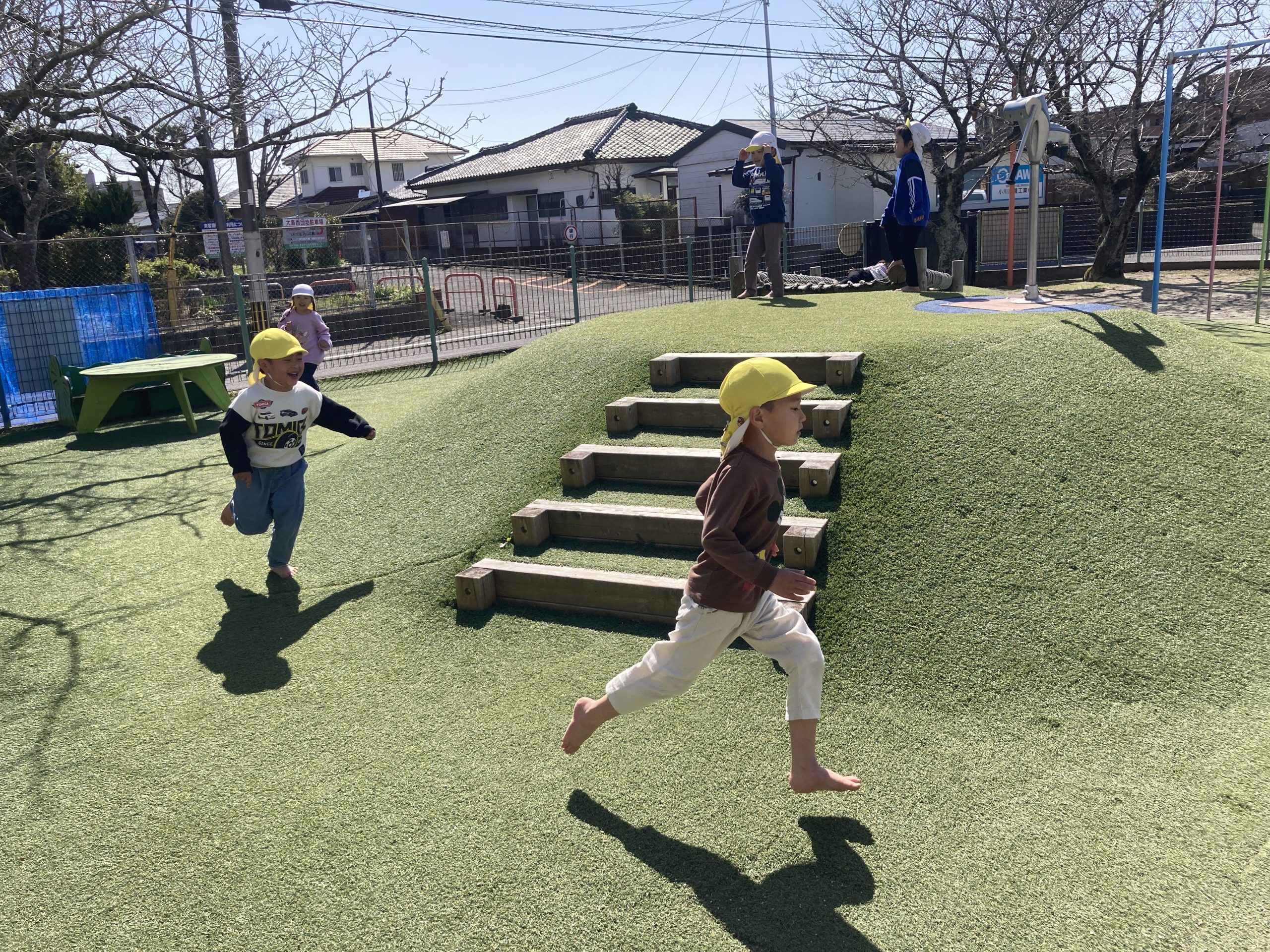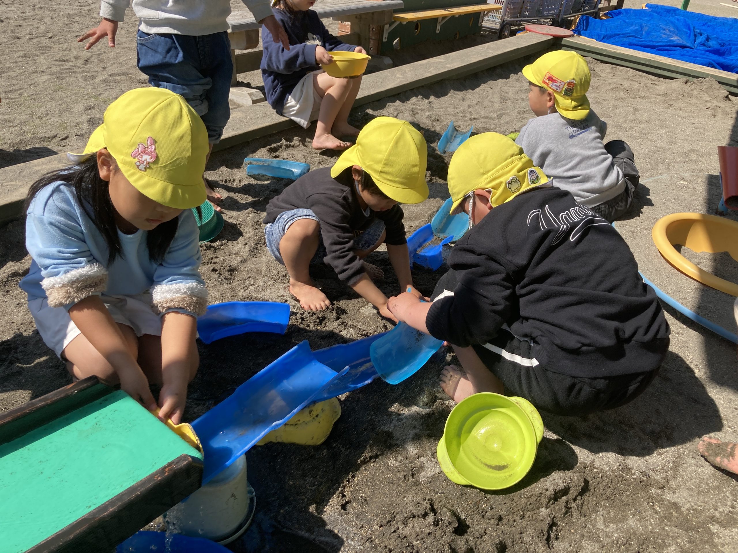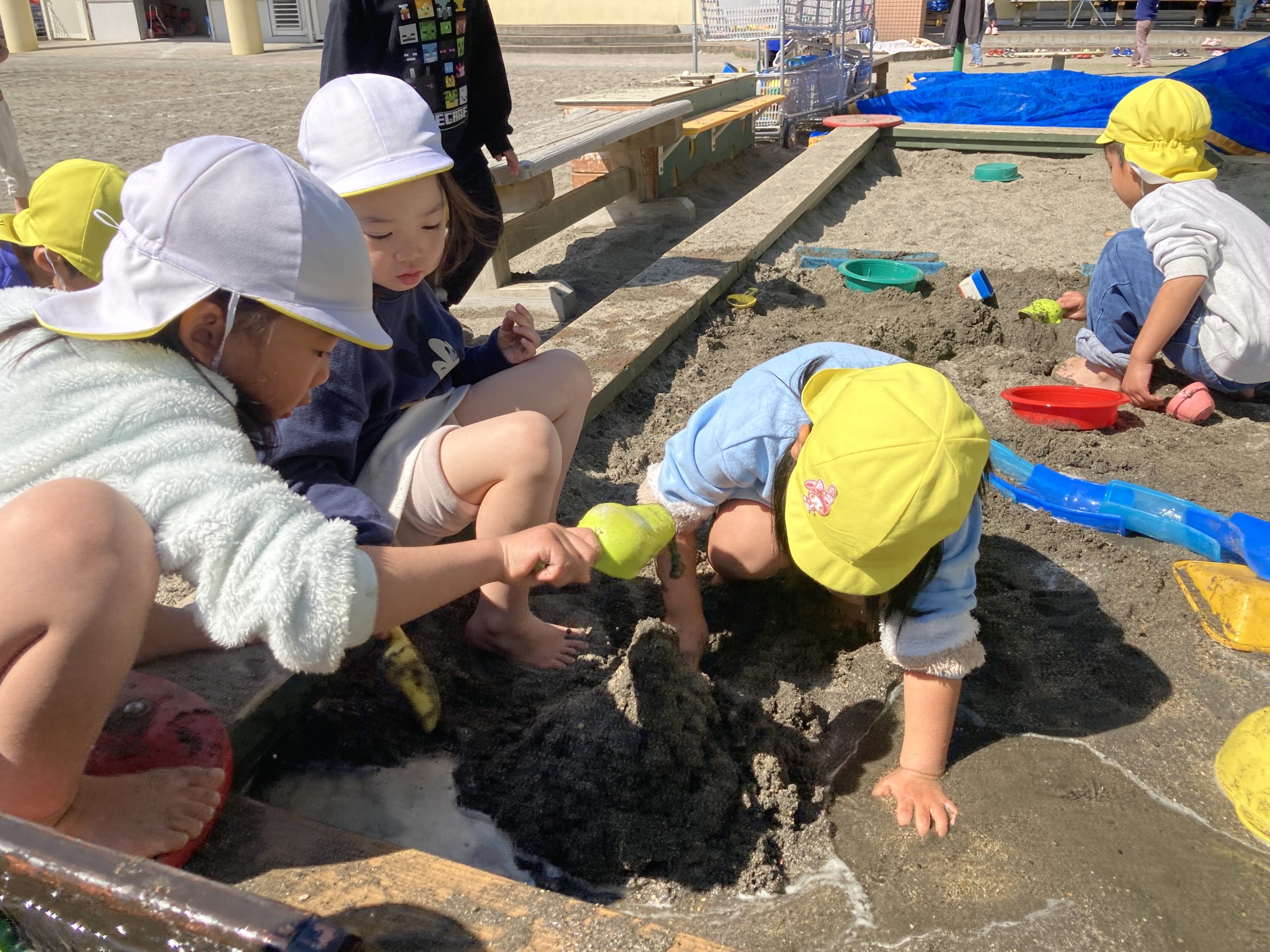 今日は園庭で遊びました。最初にドッヂボールと竹馬をした後、築山と砂場の好きな方で遊びました🍀築山では鬼ごっこをしてたくさん走り回ったり砂場では水路を作ってお山のトンネルや池に水を流したりと楽しうに遊んでいましたよ😸💖