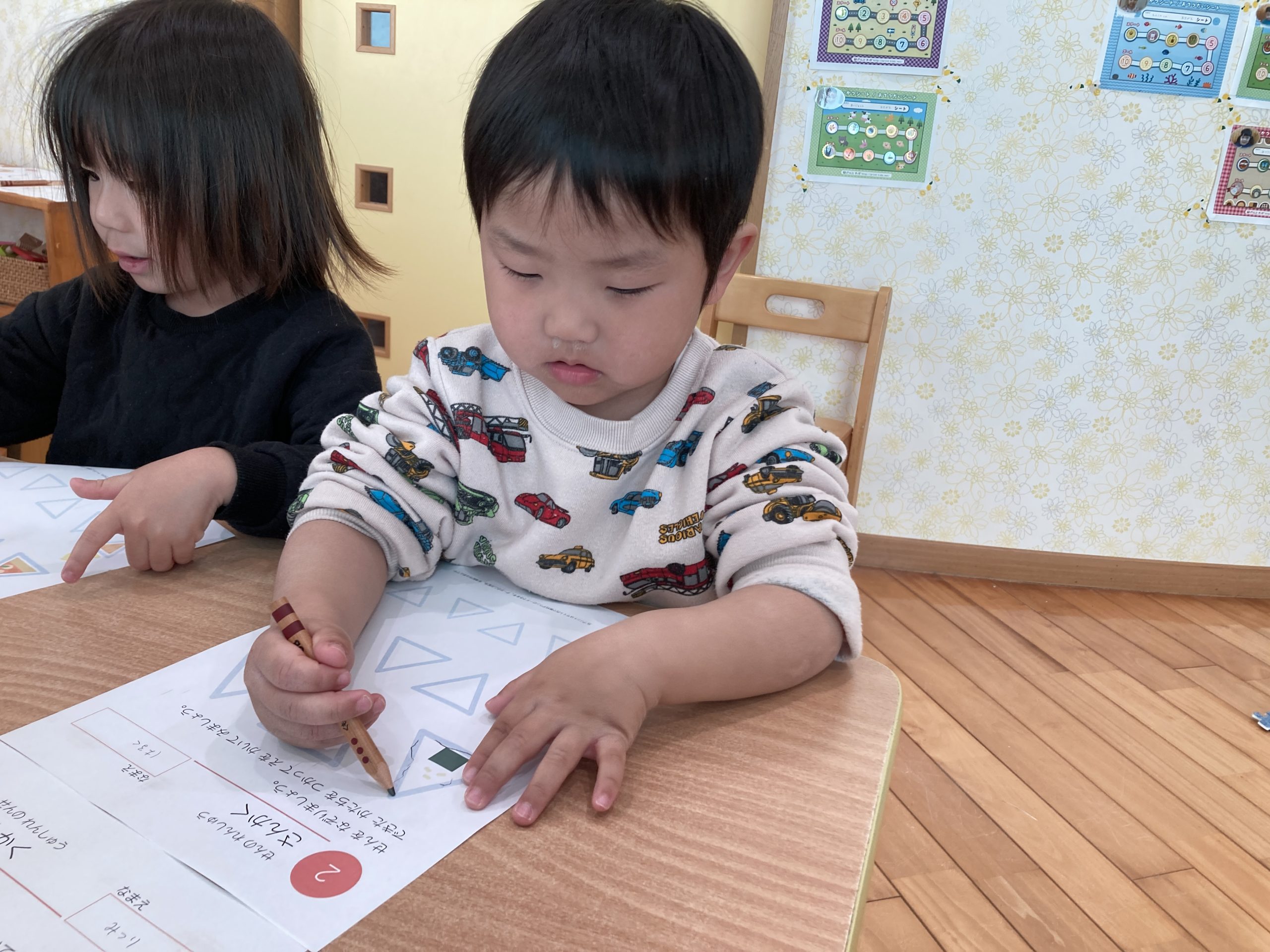 今日は、うんぴつをしました✍みんな上手に鉛筆を握りながら、集中して取り組んでいましたよ☆彡