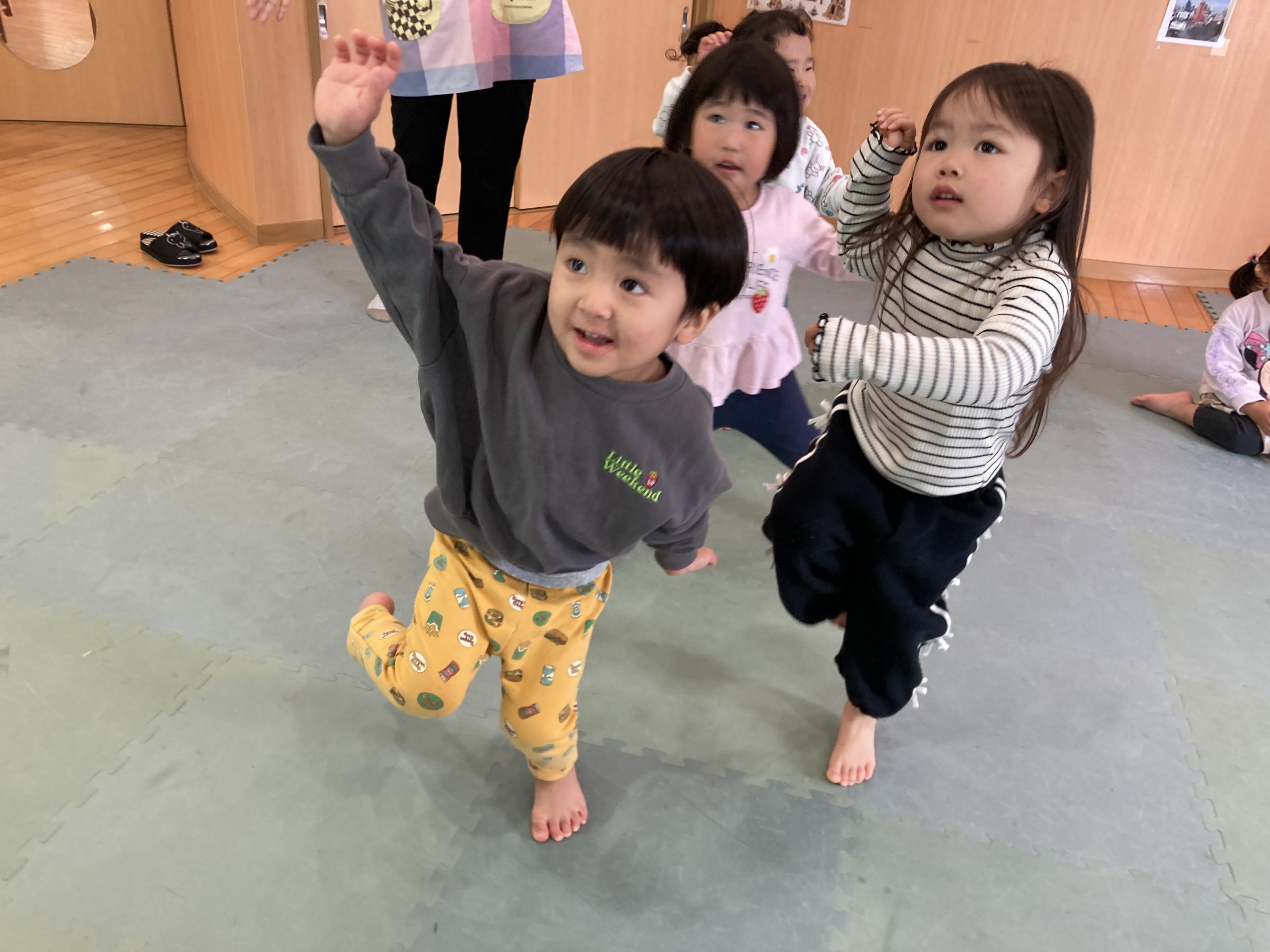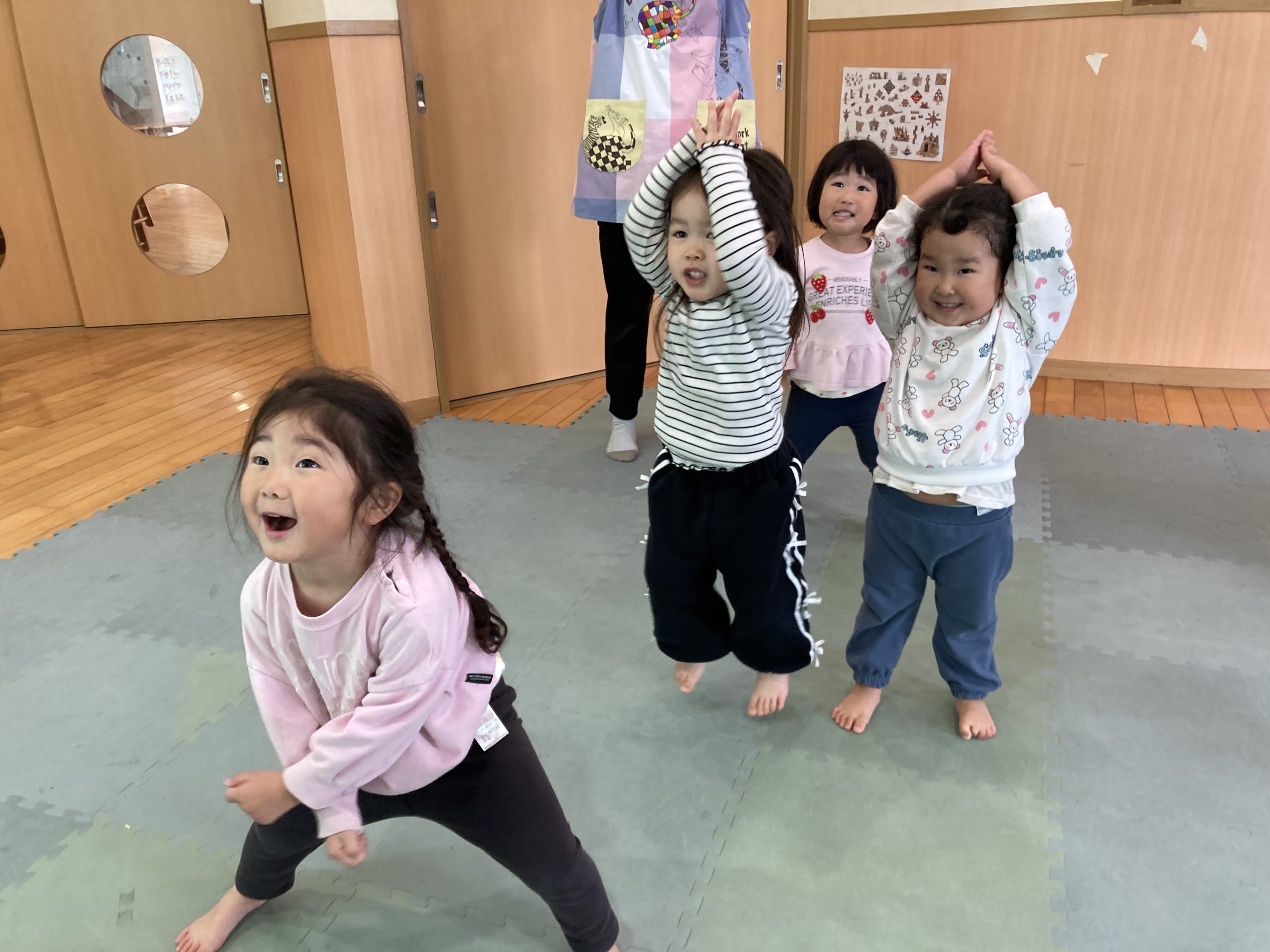 今日は、リズム遊びをしました🎵みんなノリノリで踊っていましたよ😊✨