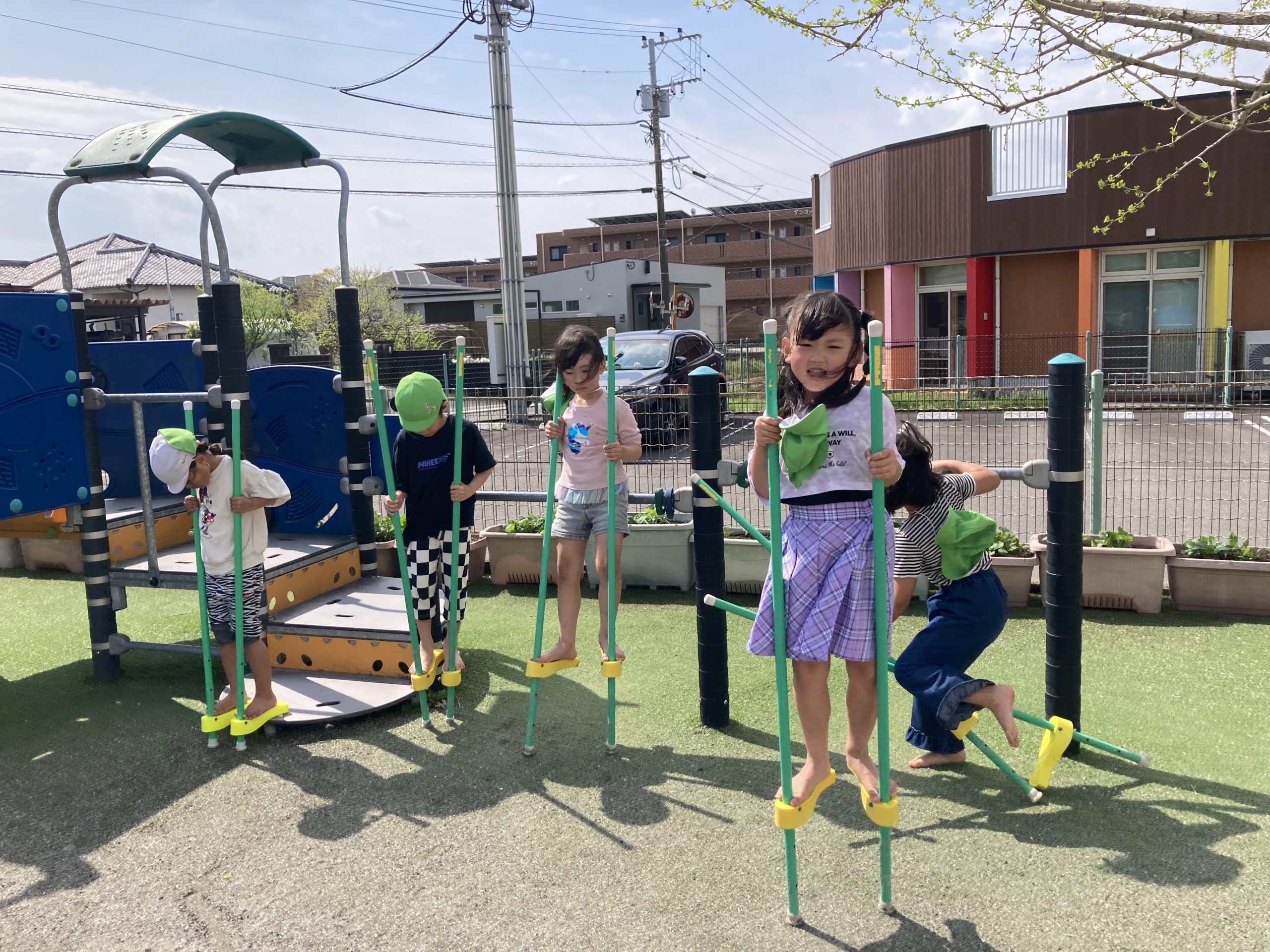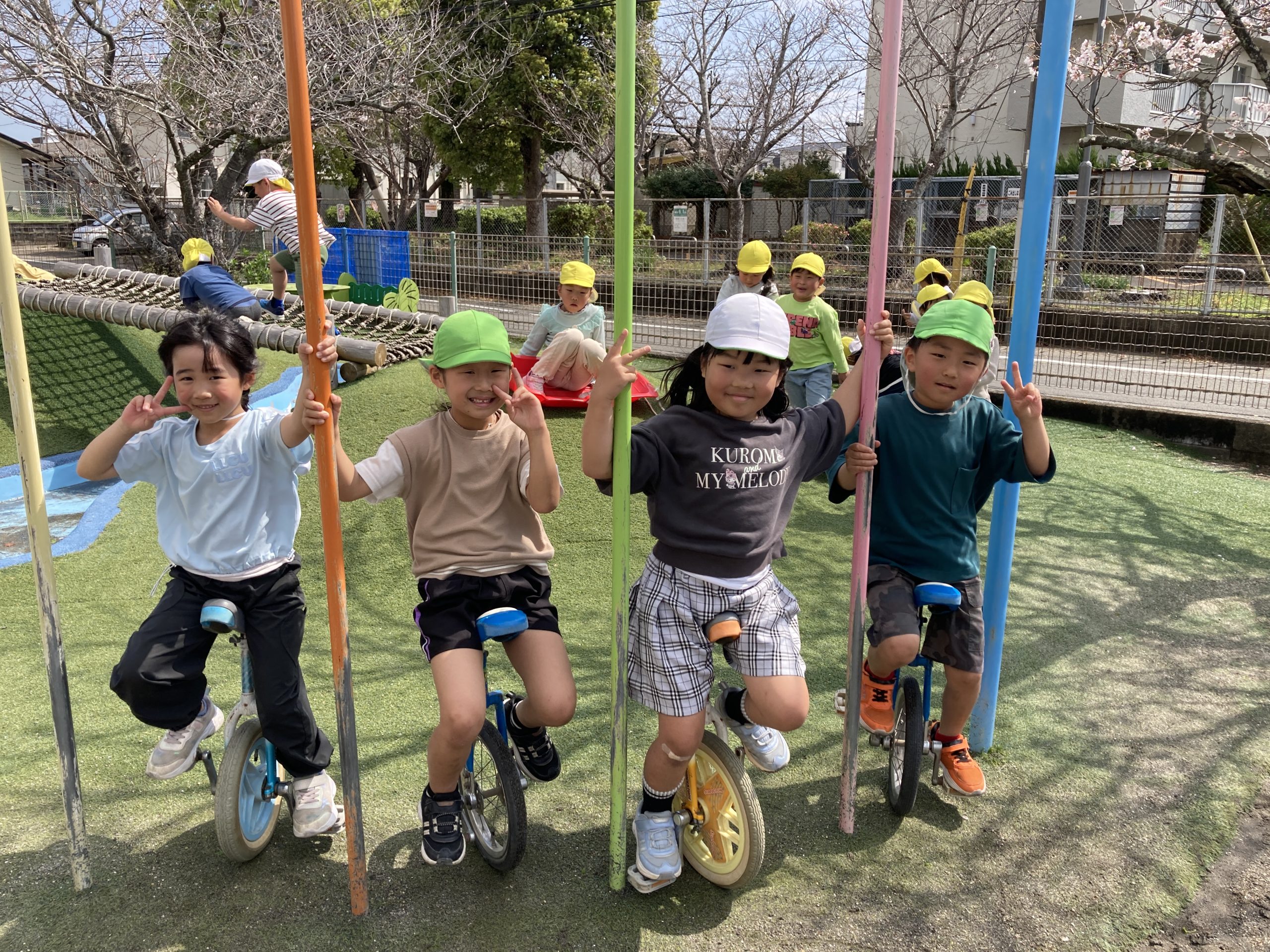 今日は、きりんぐみ最後の保育園の日だったのでサークルタイムで好きな遊びを決めて戸外遊びをしました。けいどろ、竹馬、一輪車など友だちと思いっきり遊んでいました😁