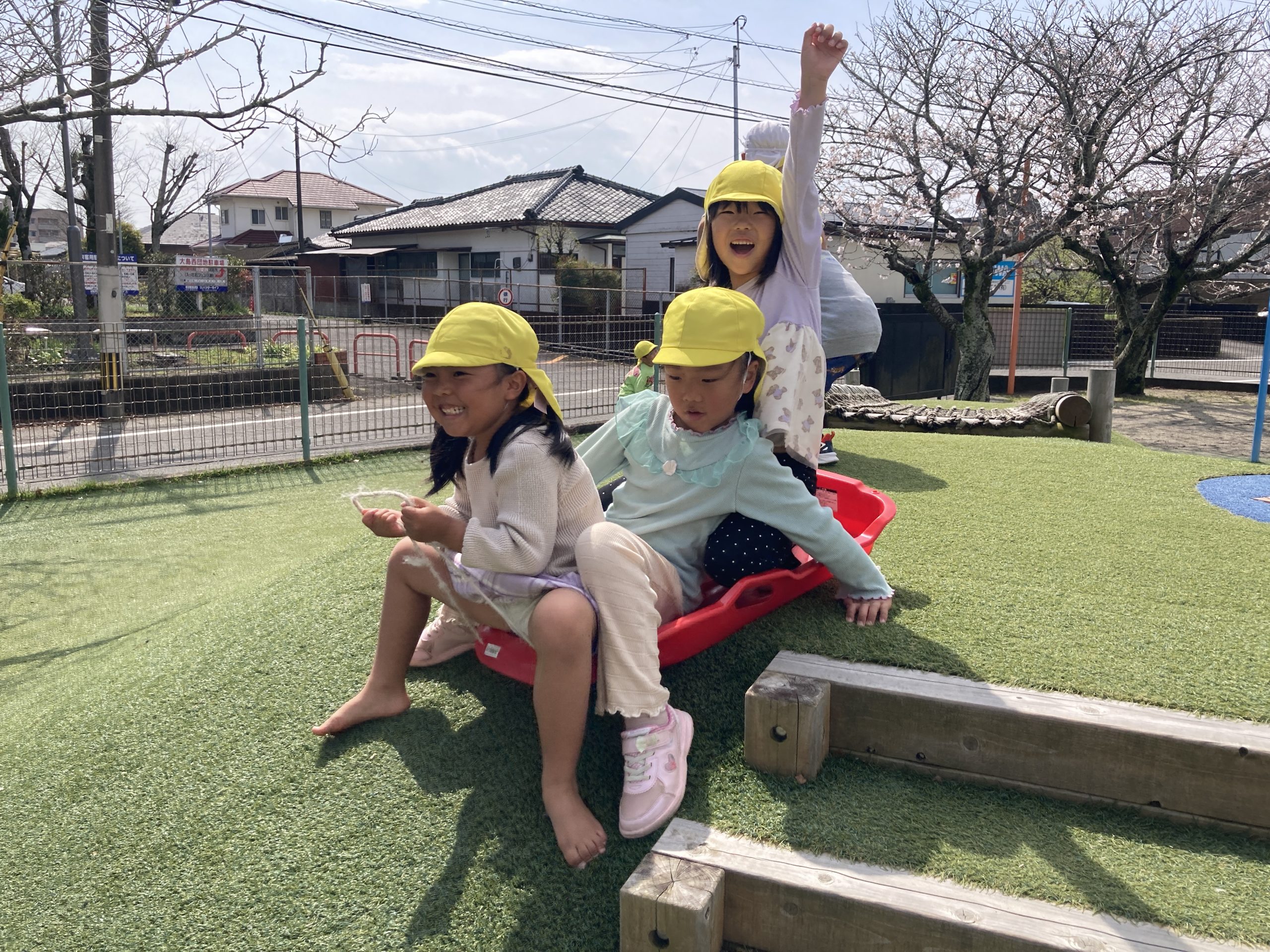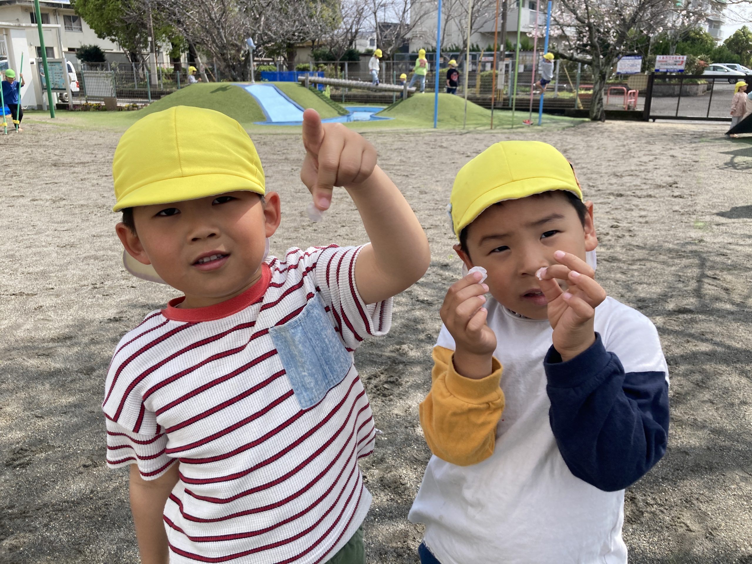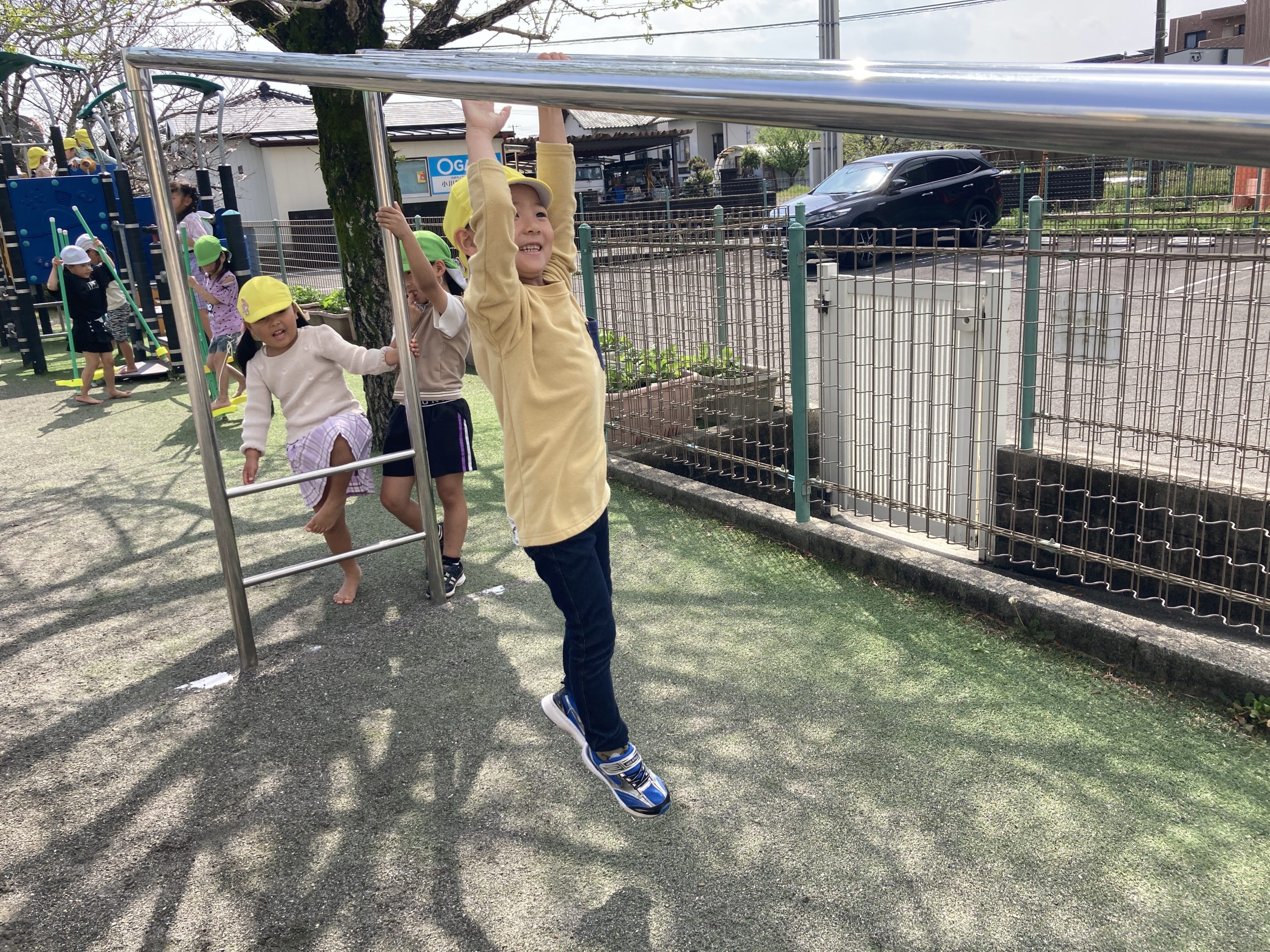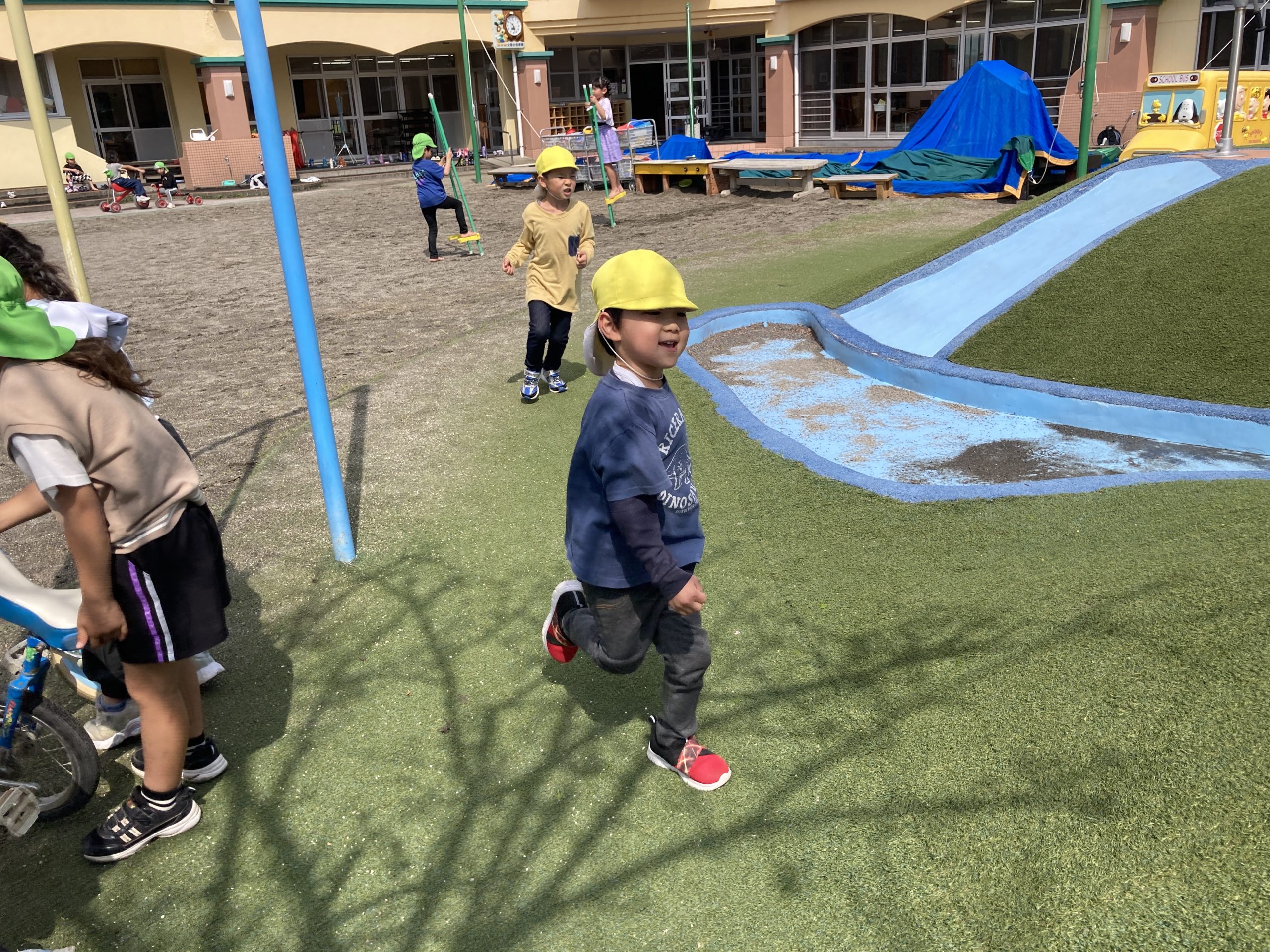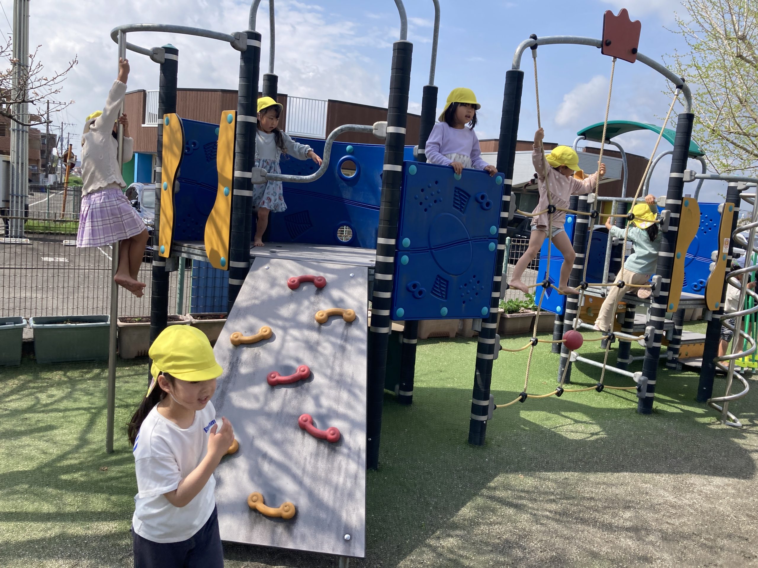 今日は園庭で築山や大型遊具、うんてい、ドッヂボールなどで遊びました!きりんぐみさんとたくさん体を動かして遊びましたよ🍀