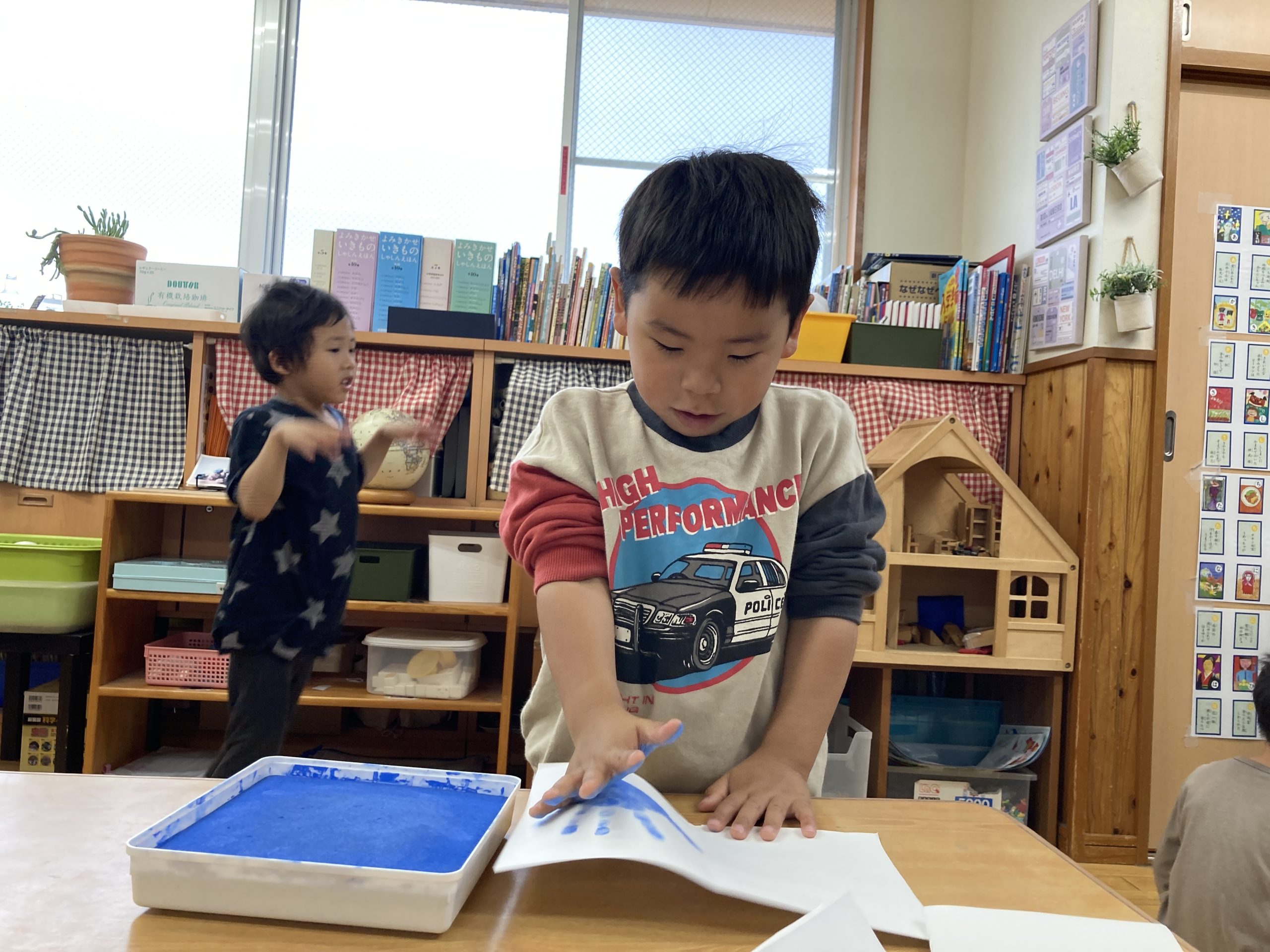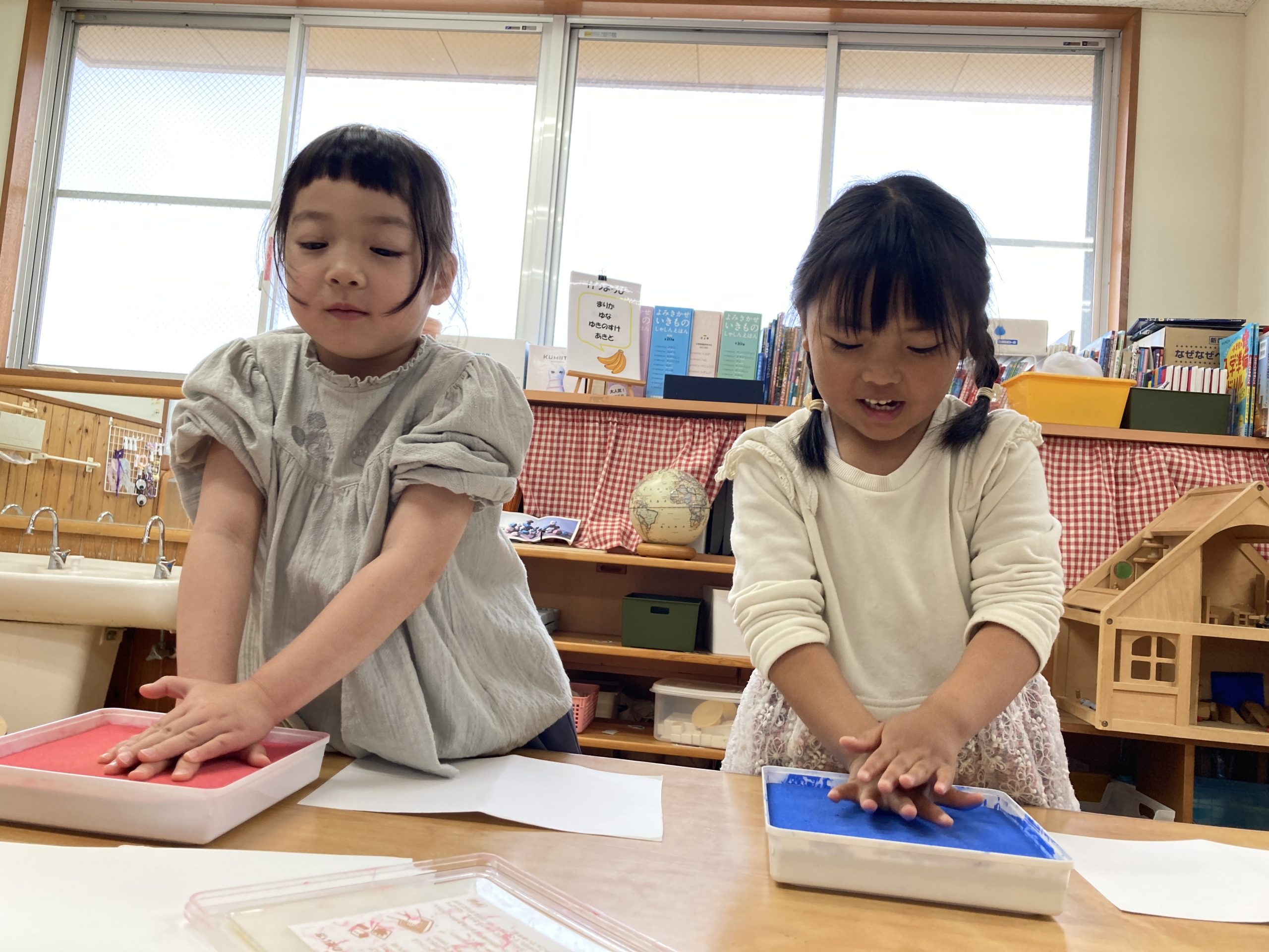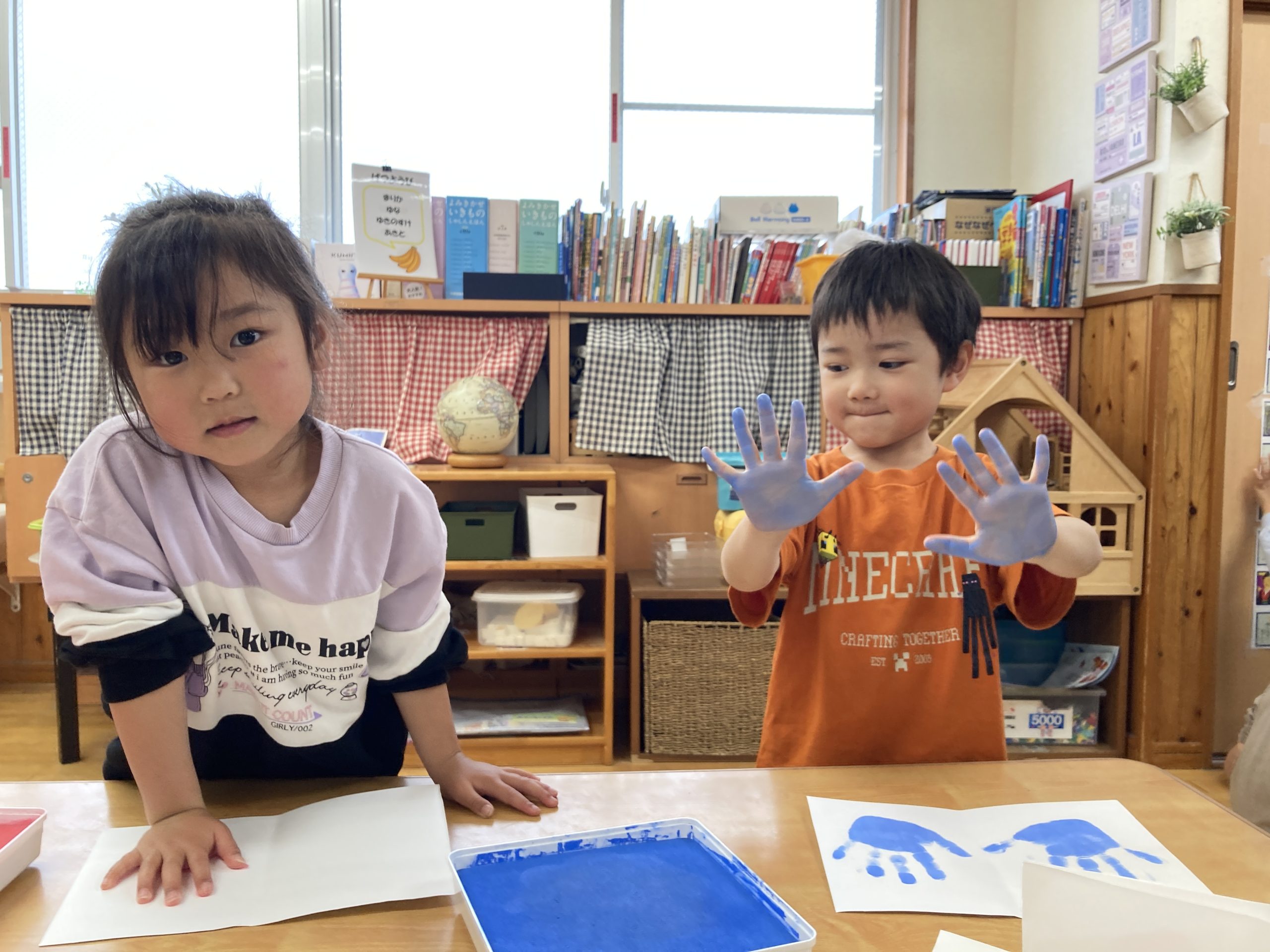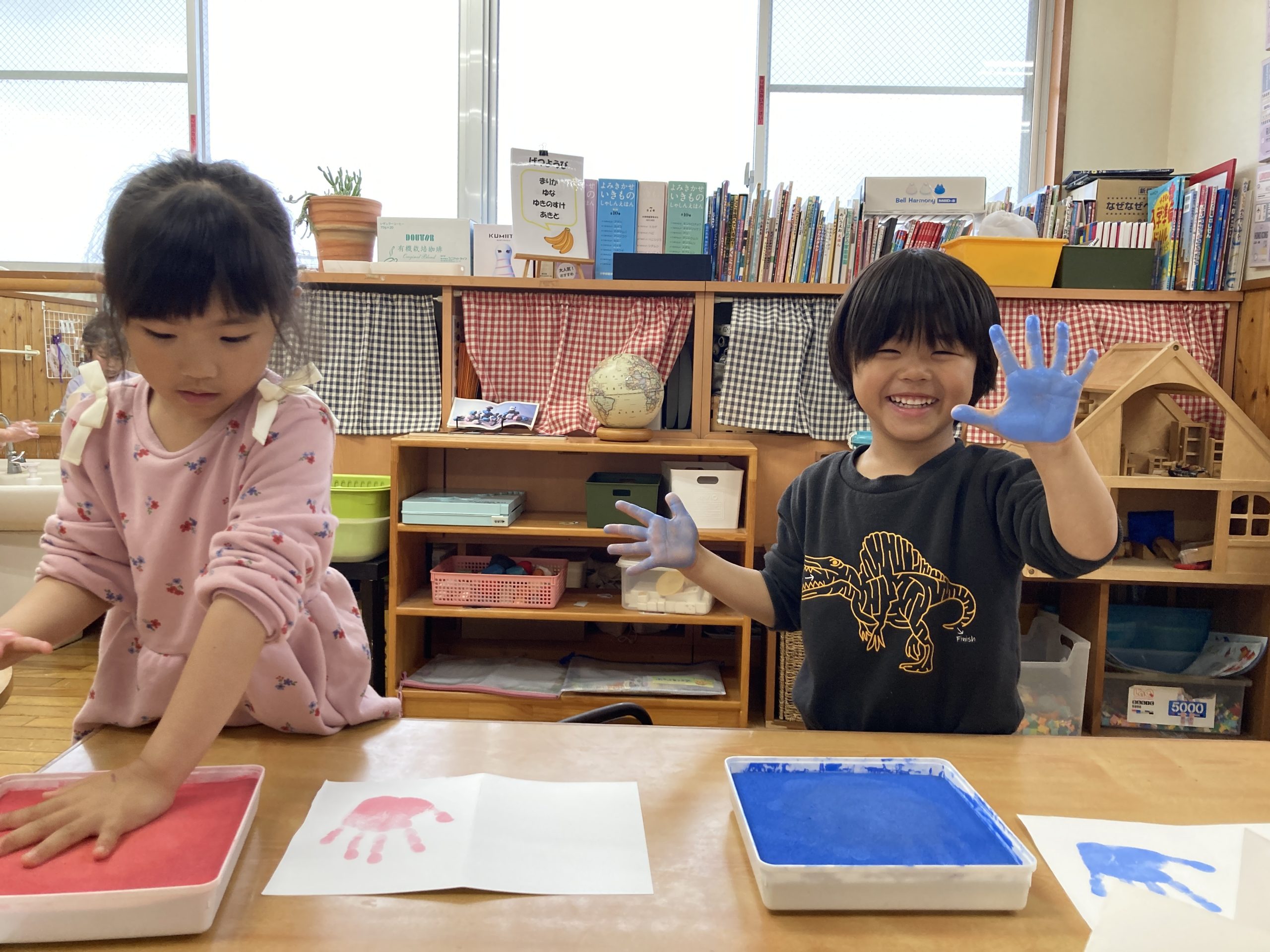 今日は、手形取りをしました!好きな色を選んでスタンプしましたよ。友達と手形の大きさを比べていました🖐️