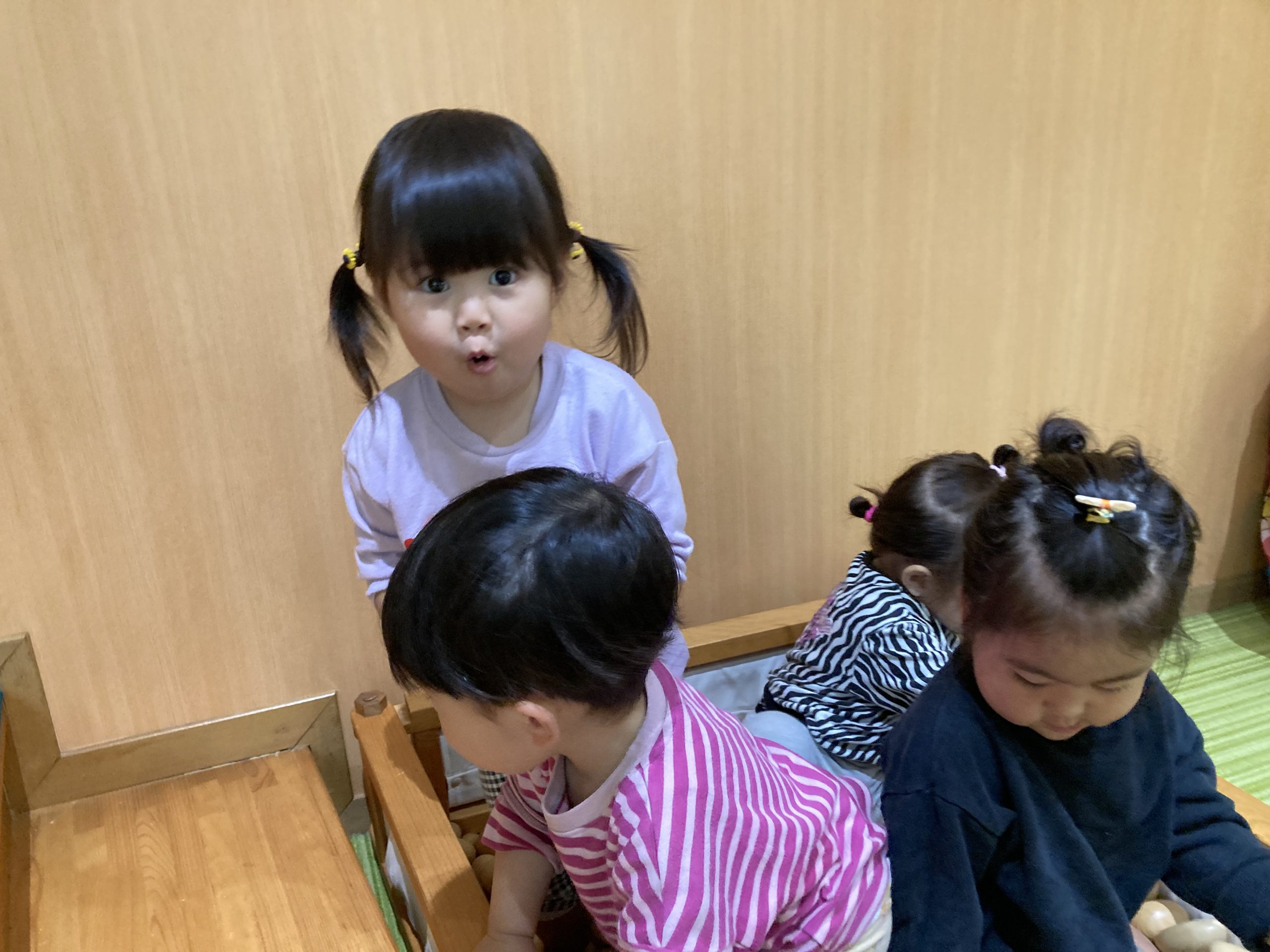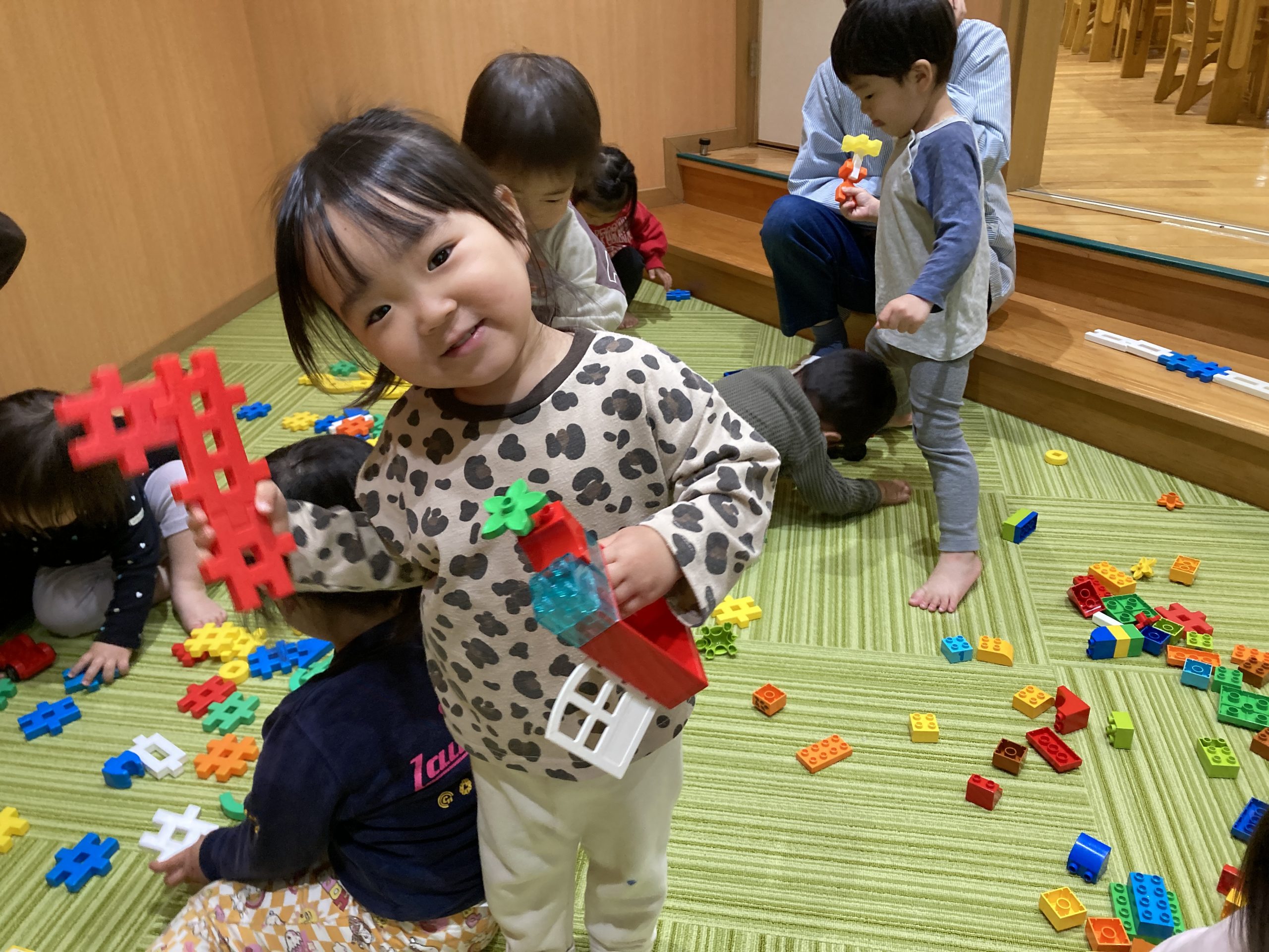 今日からうさぎぐみ🐰での生活がスタートしました✨みんなの前で自己紹介をした後に、園内を巡り、ブロック遊びをしましたよ🎵