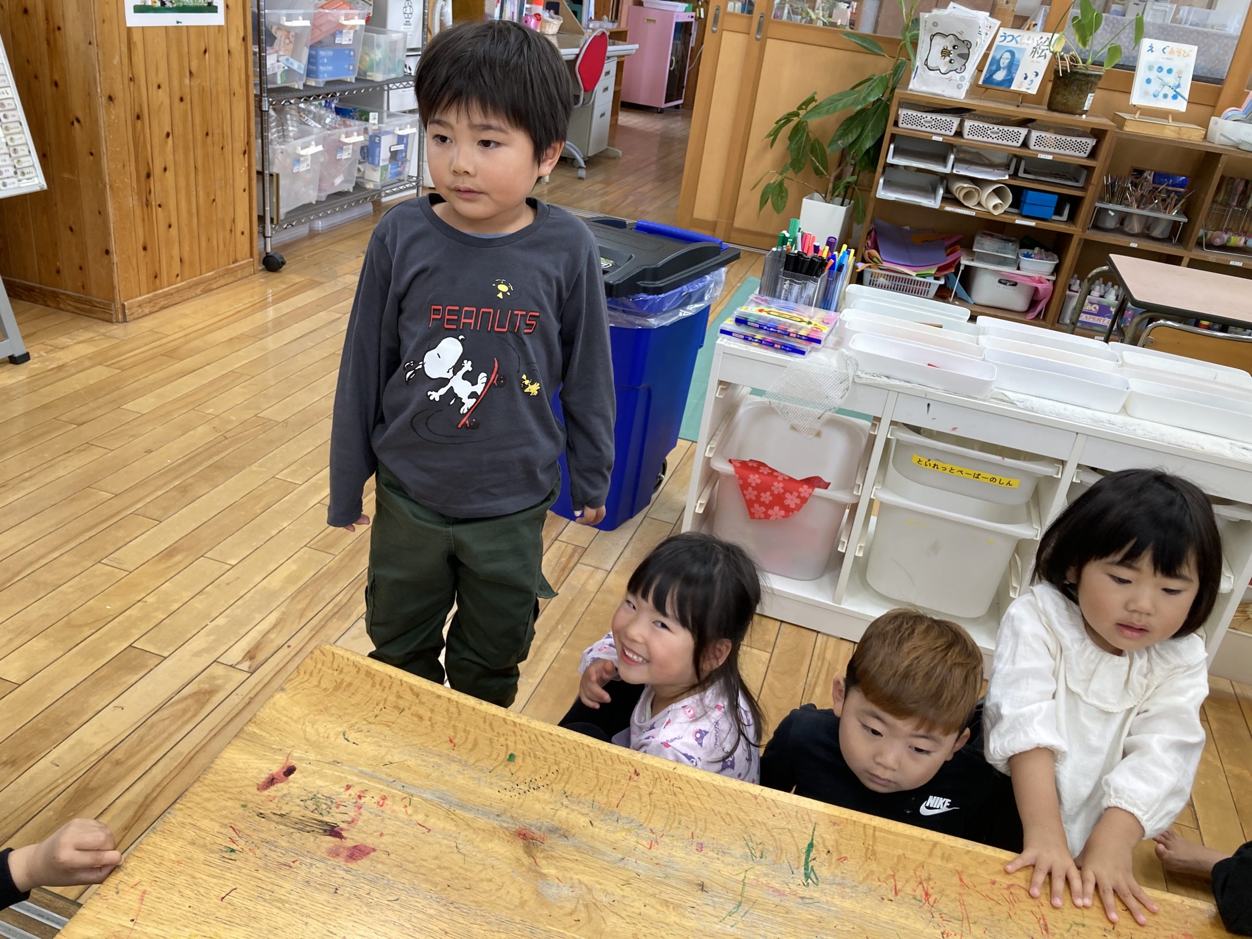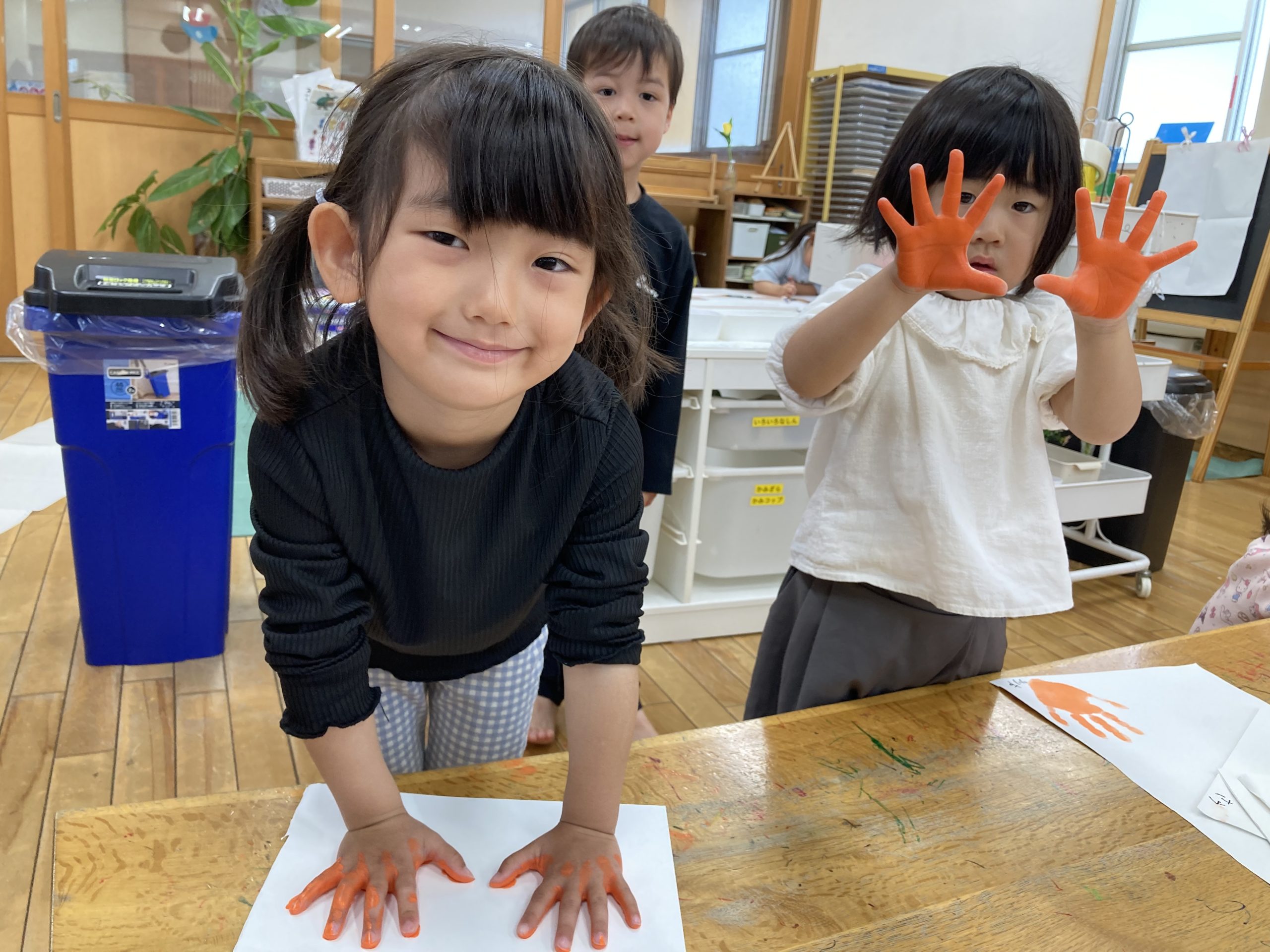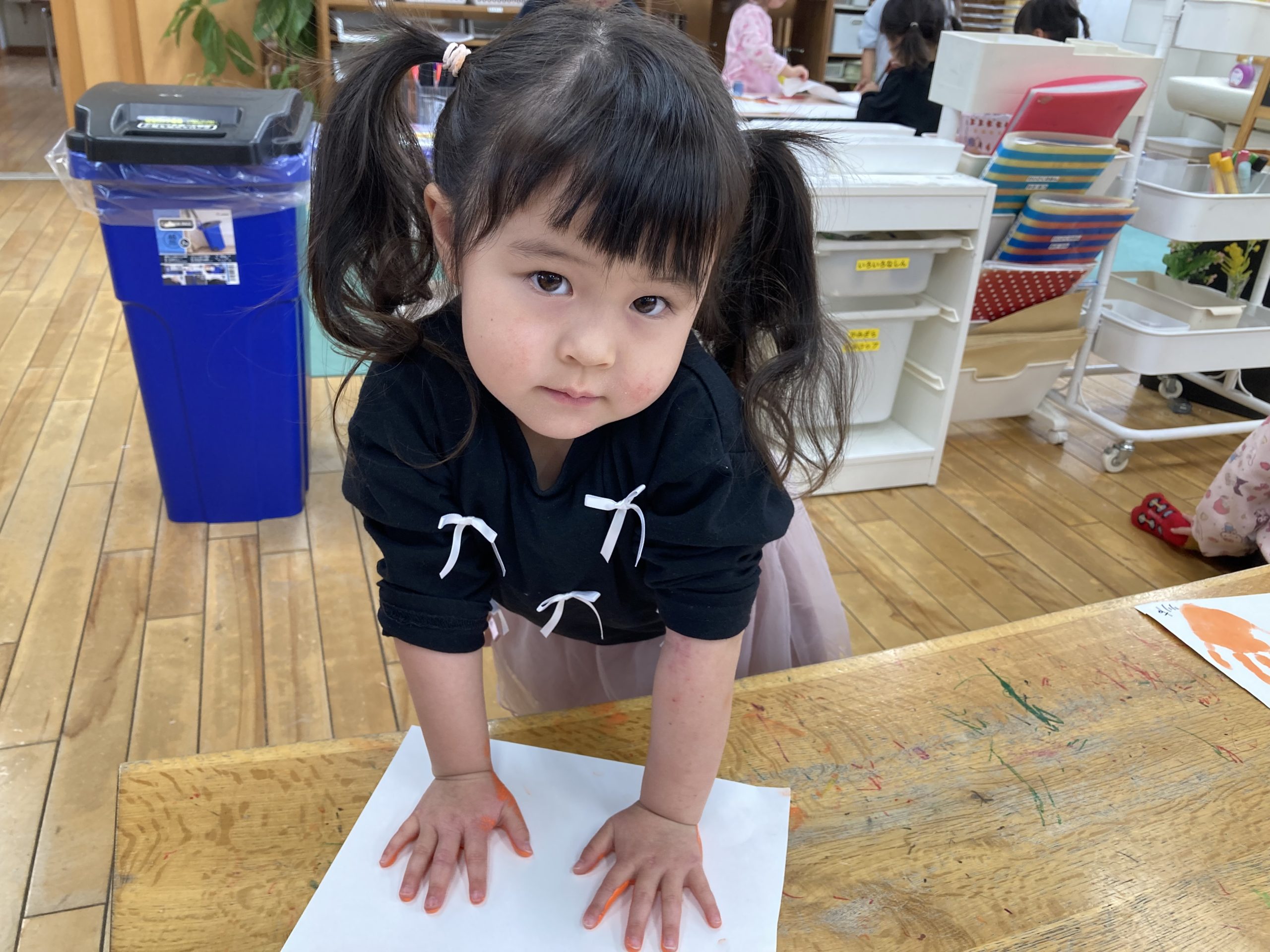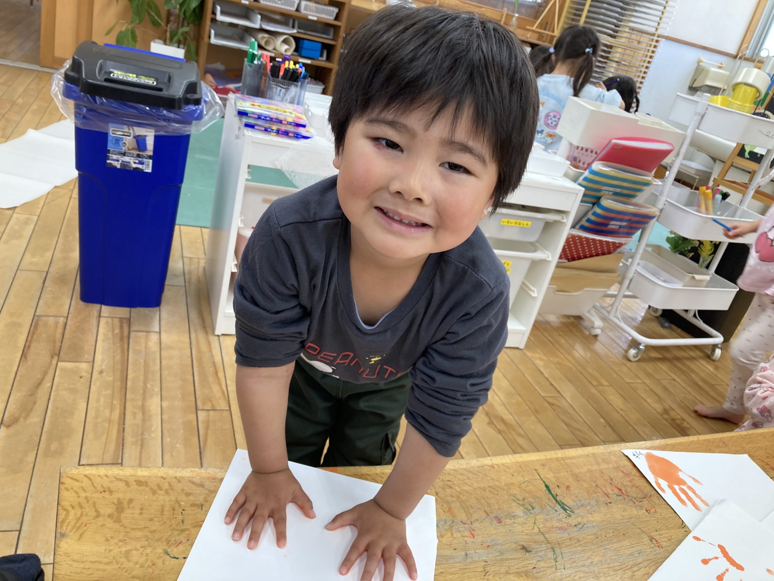 今日から新しくりすぐみさんでの生活がスタートしました✨自分のお名前や好きなあそび、がんばりたいことなど、ひとりずつ自己紹介をしました。なわとびをがんばりたい!かけっこをがんばりたい!など、自分の思いを発表しました。ひとりずつ手形を取って、3月にはどれくらい大きくなるか楽しみだねとお話しましました。