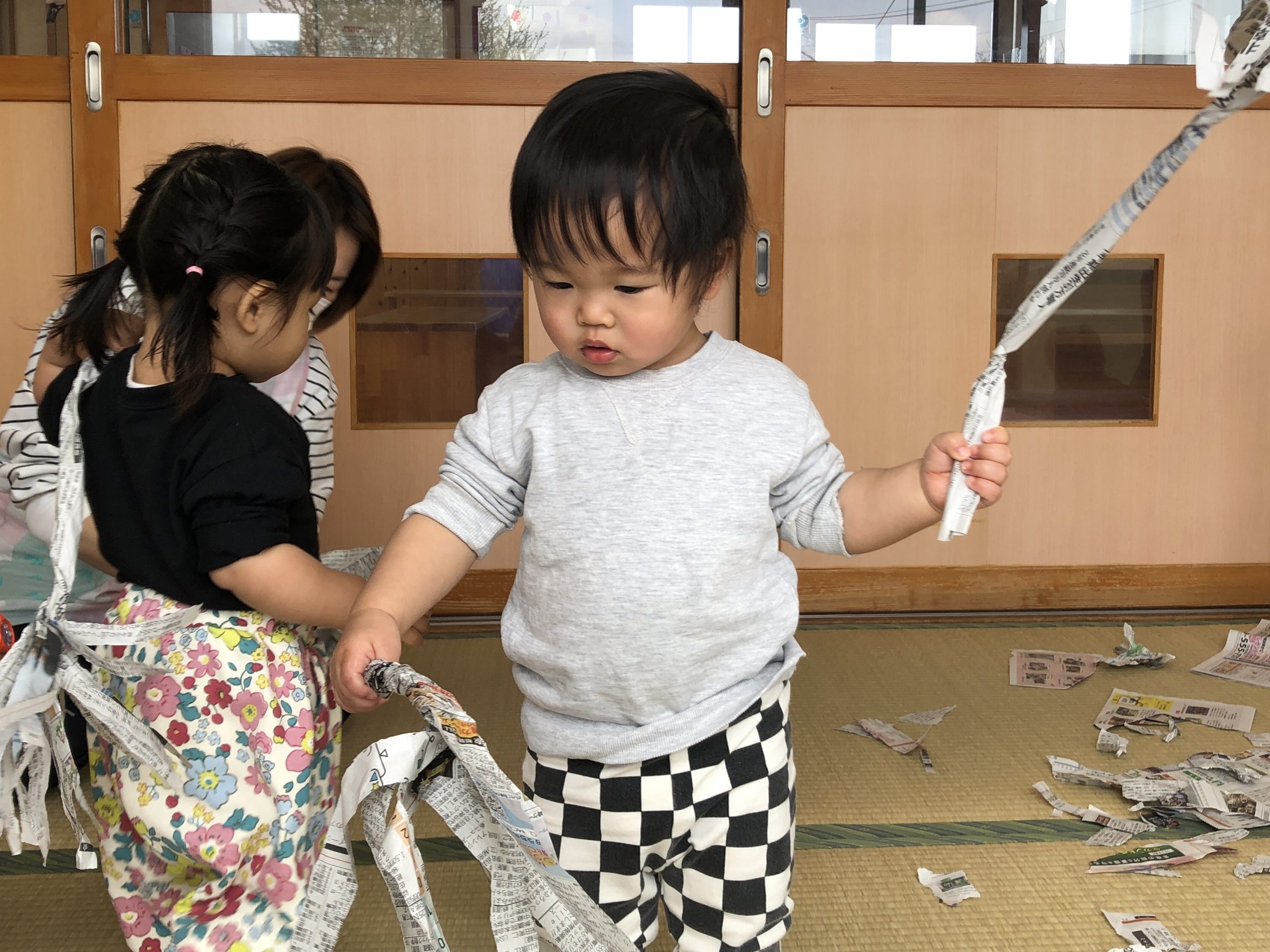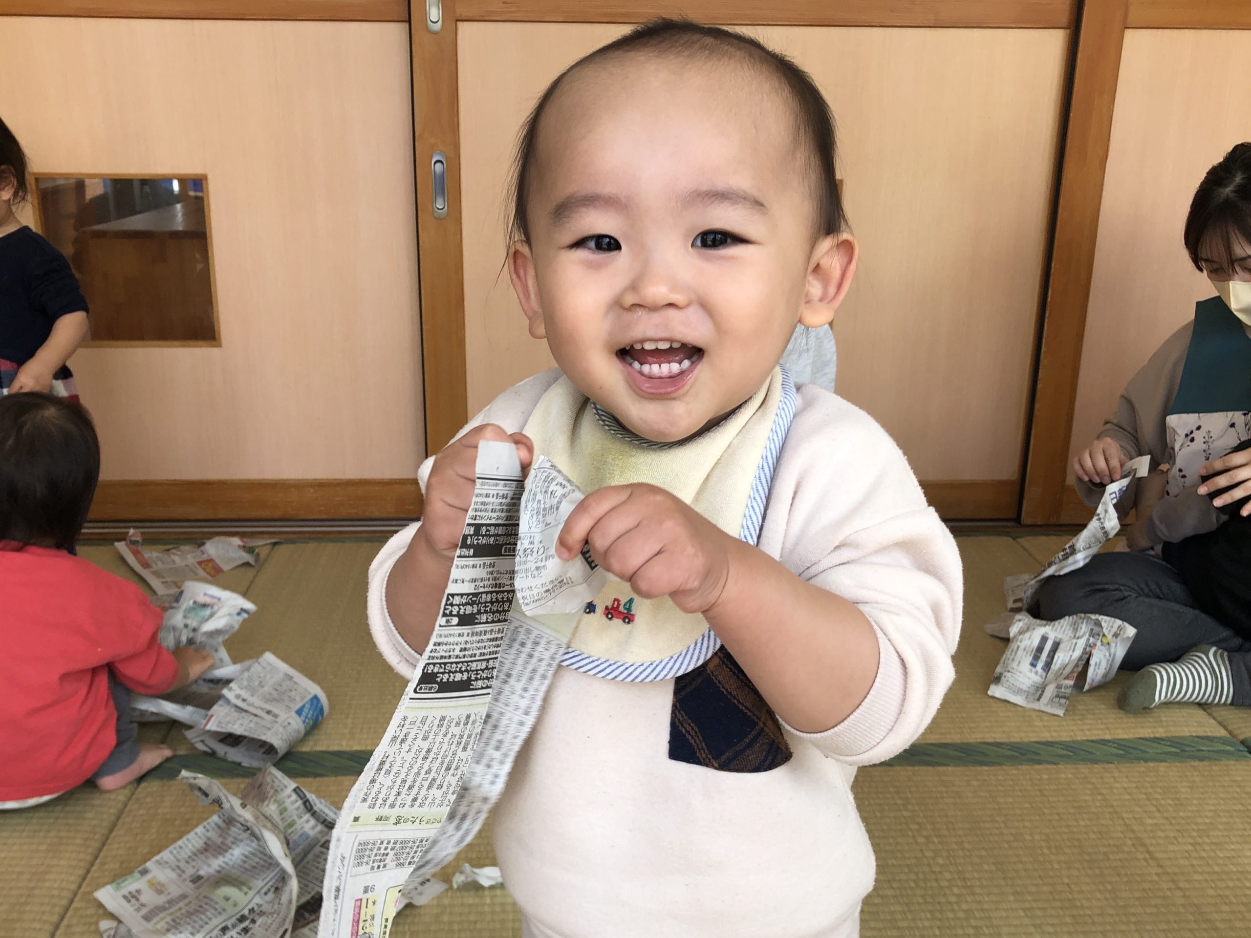 今日は、みんなで新聞紙遊びをしました🎵新聞紙を破いたり丸めたり楽しそうに遊んでいましたよ☺️