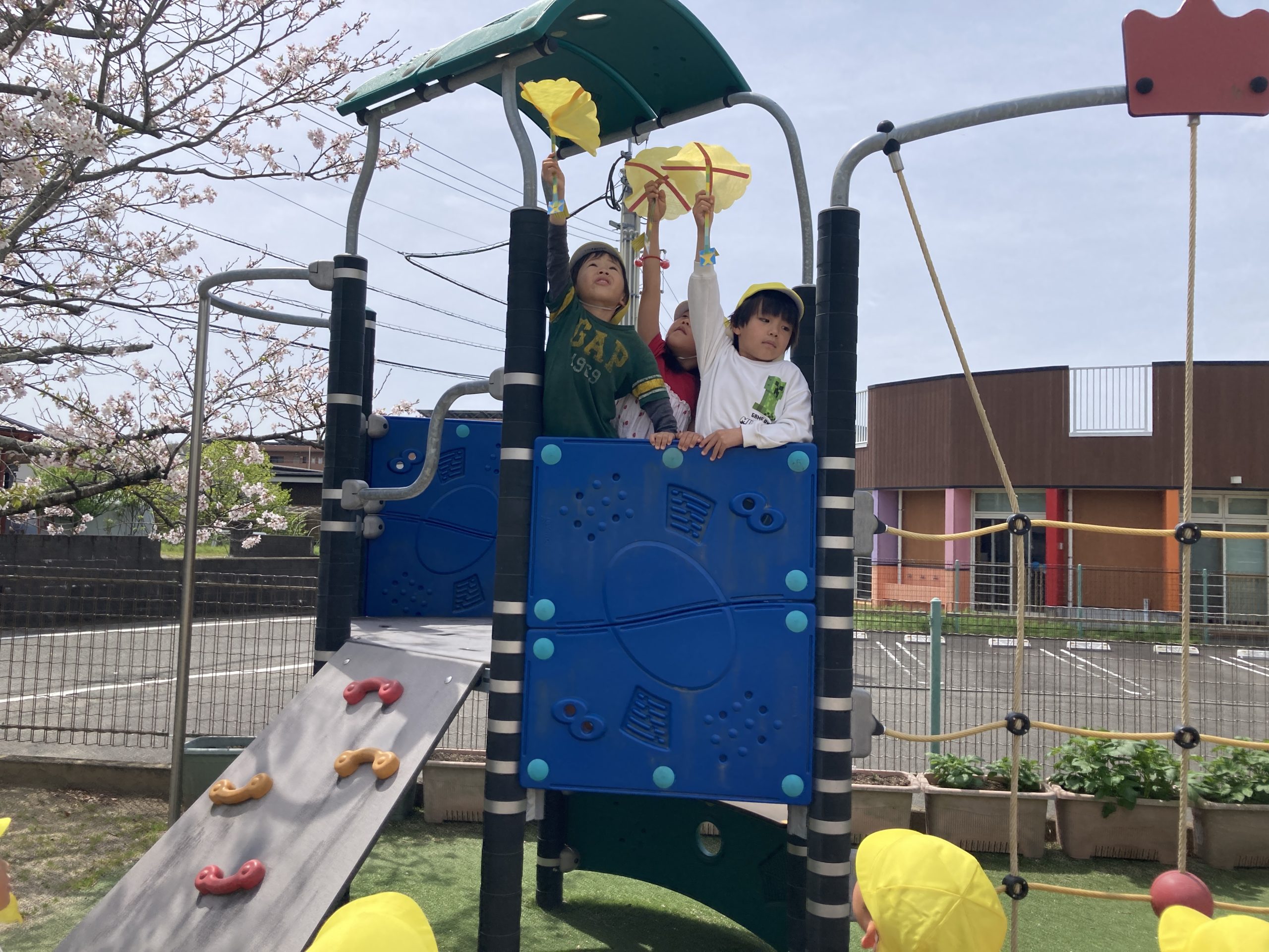 今日は月刊絵本「やってみたい ふんわりくうき」の読み聞かせをしました!付録についていたたんぽぽパラシュートを使って園庭でとばして楽しみましたよ🪂