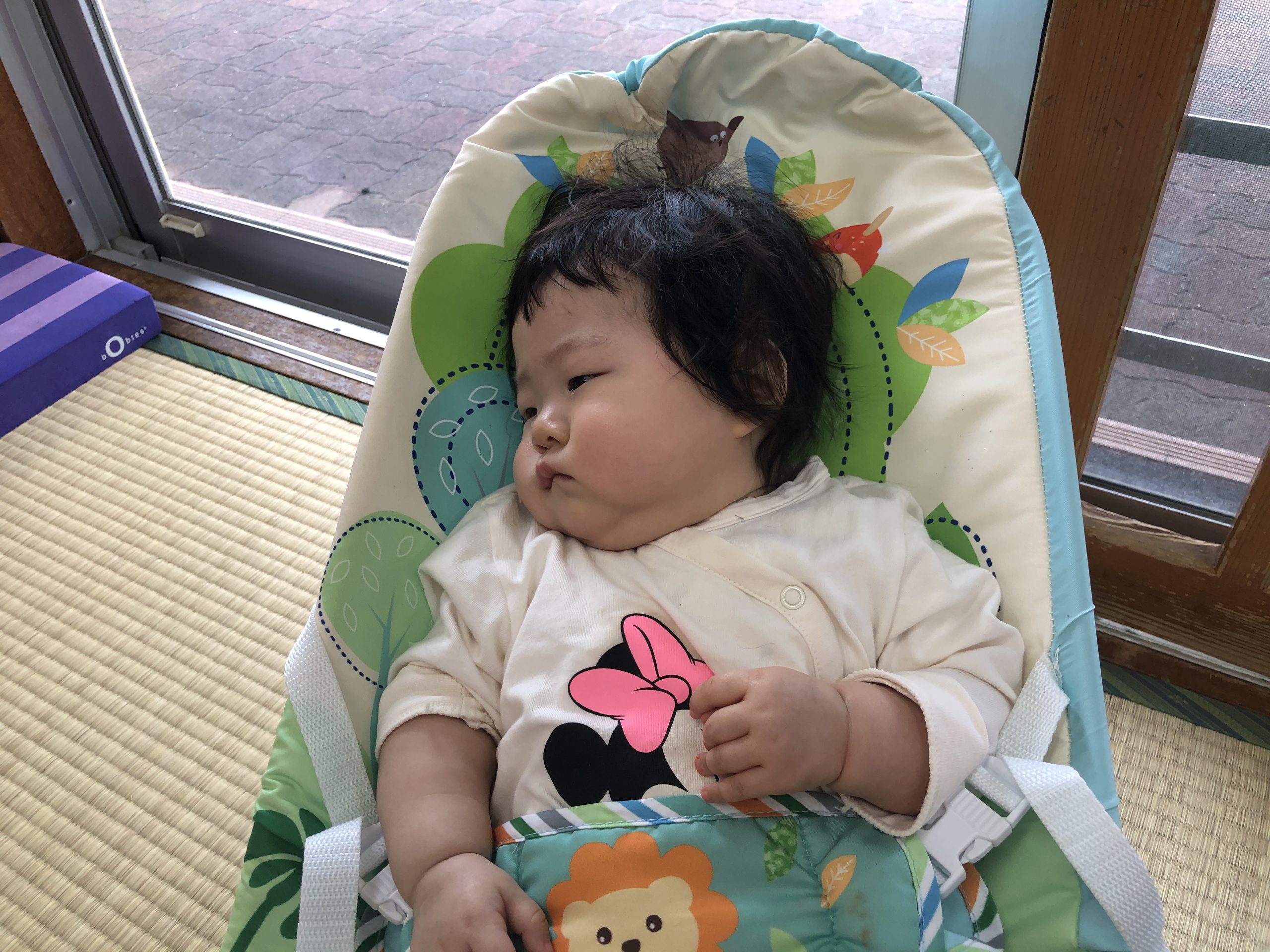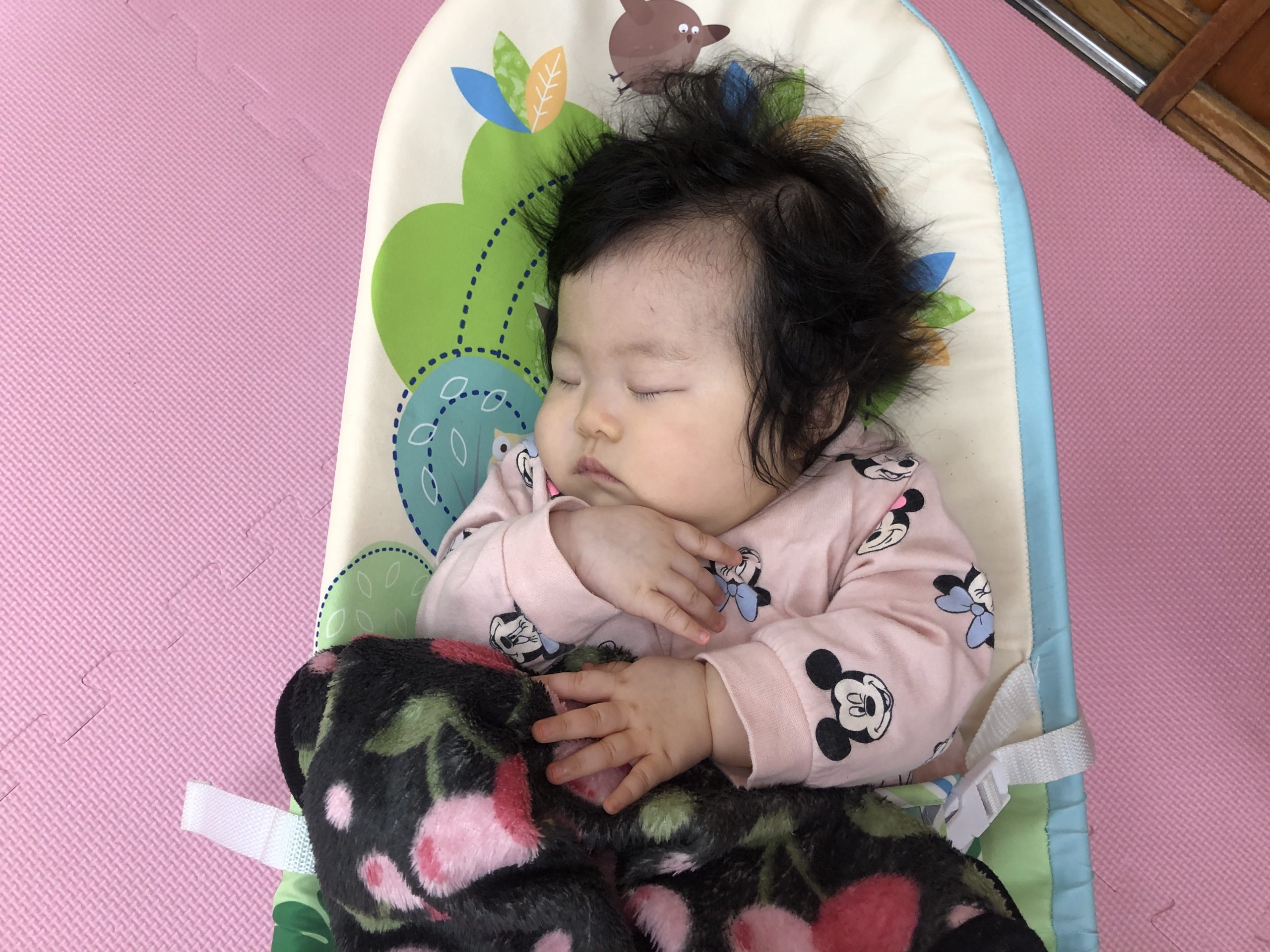 今日は4月の製作で手形を取りました。スタンプの感触が嫌で大泣きでした😖💦少しずつ慣れてきたのか、バウンサーに乗ると泣き止んで周りを見渡したり眠りについたりする時間が増えてきましたよ💖