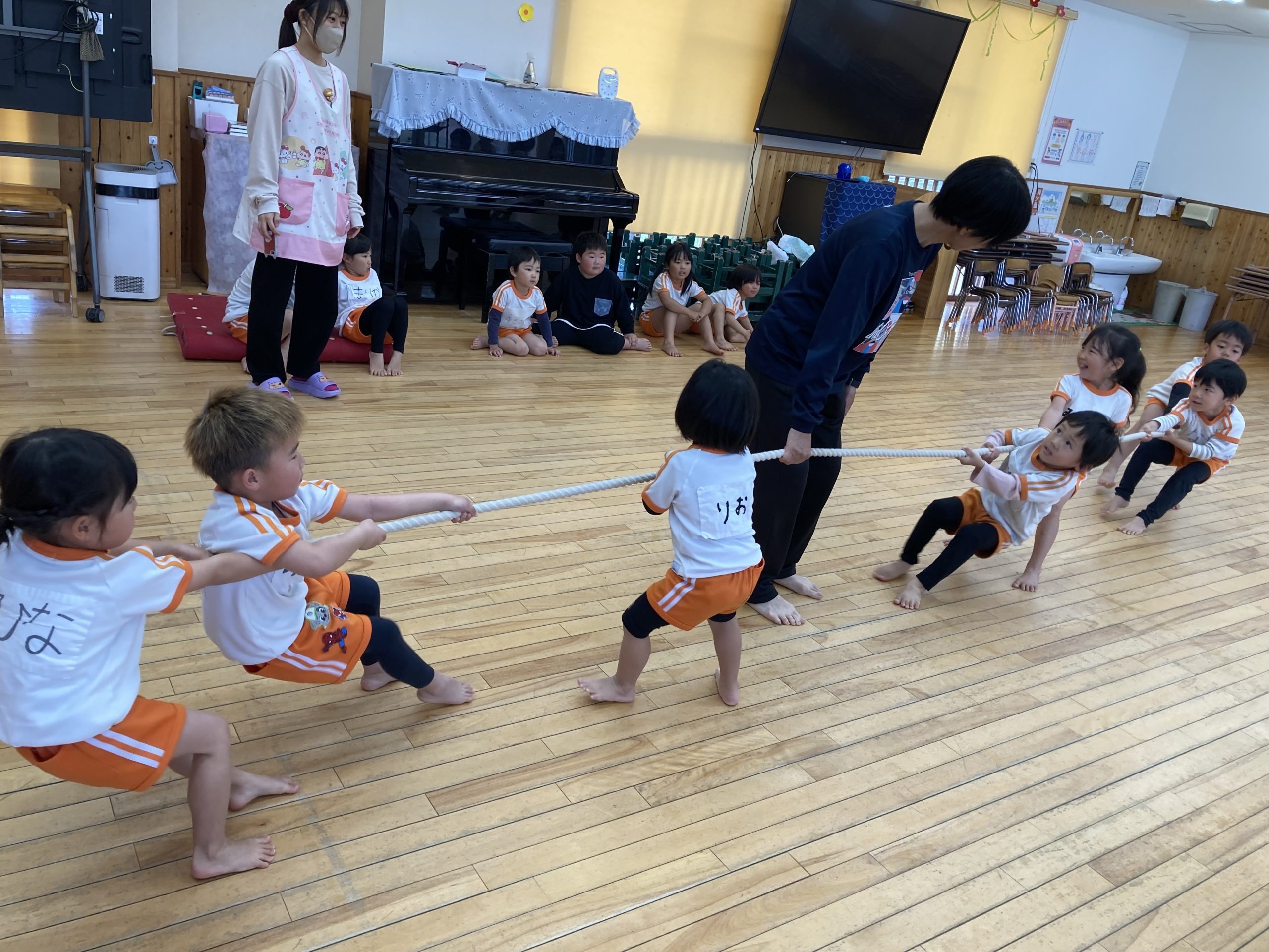 りすぐみさん同士でつな引き対決をしたり、きりんぐみさんとつな引き対決をしたりしました✨