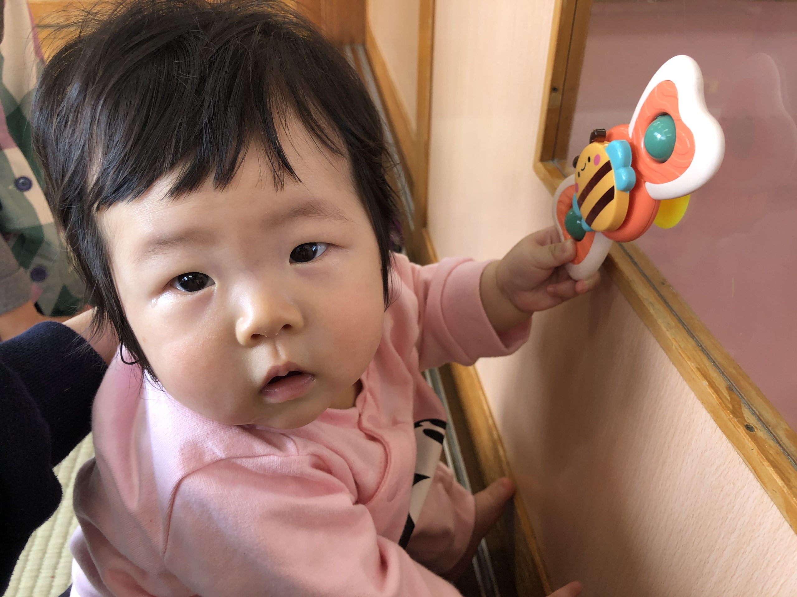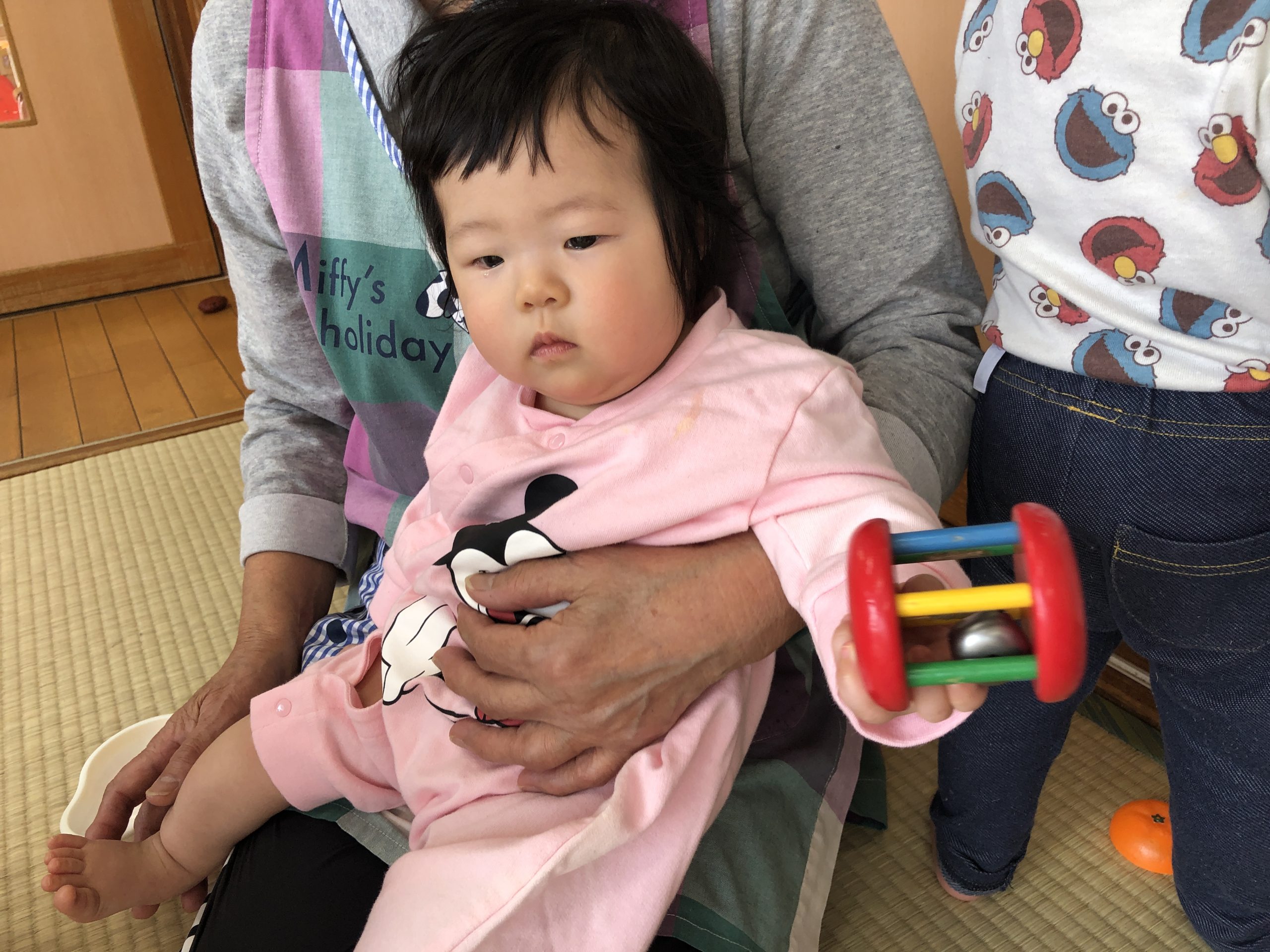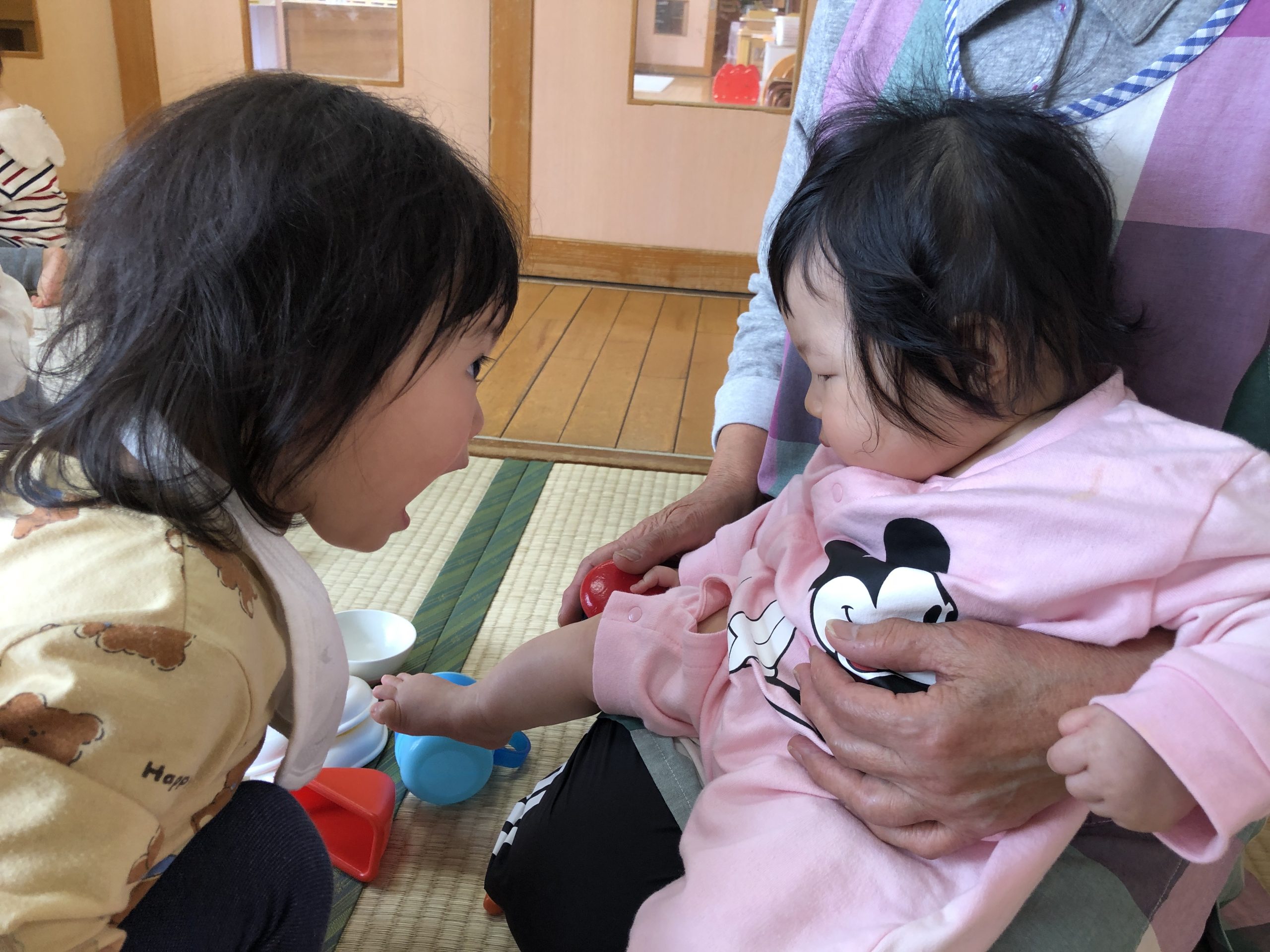今日は午前寝した後ほしぐみさんと畳のお部屋であそびました🐣鈴のおもちゃをフリフリしたり、くるくる回るおもちゃを触ったりして遊んでいましたよ🍀