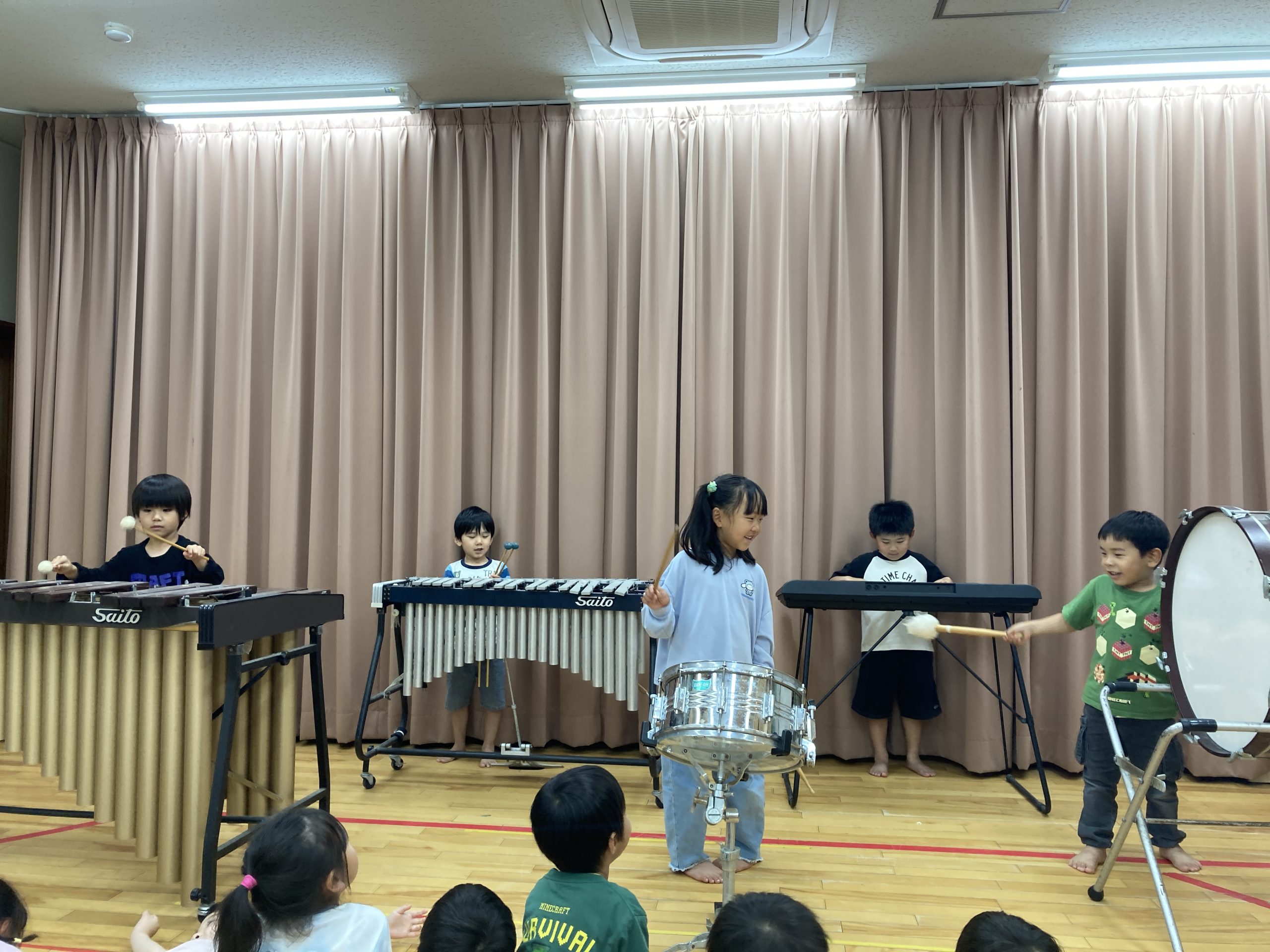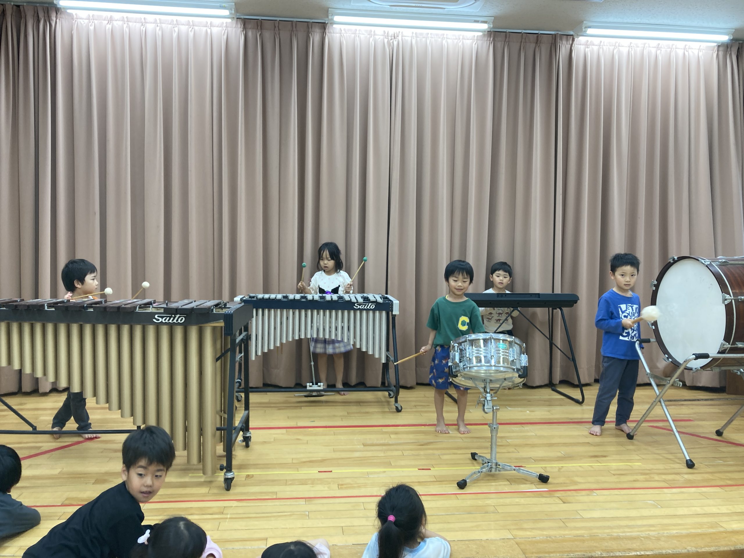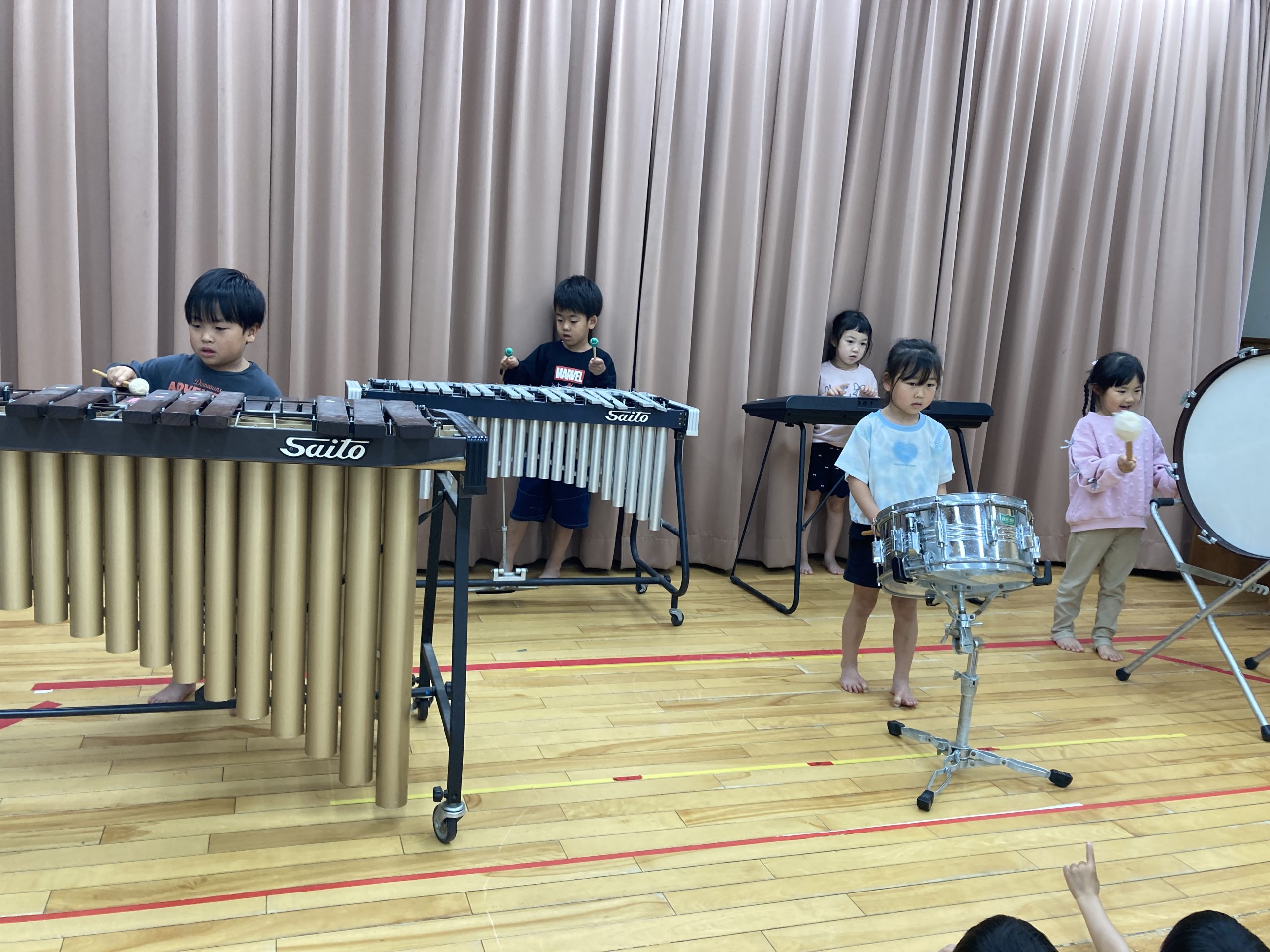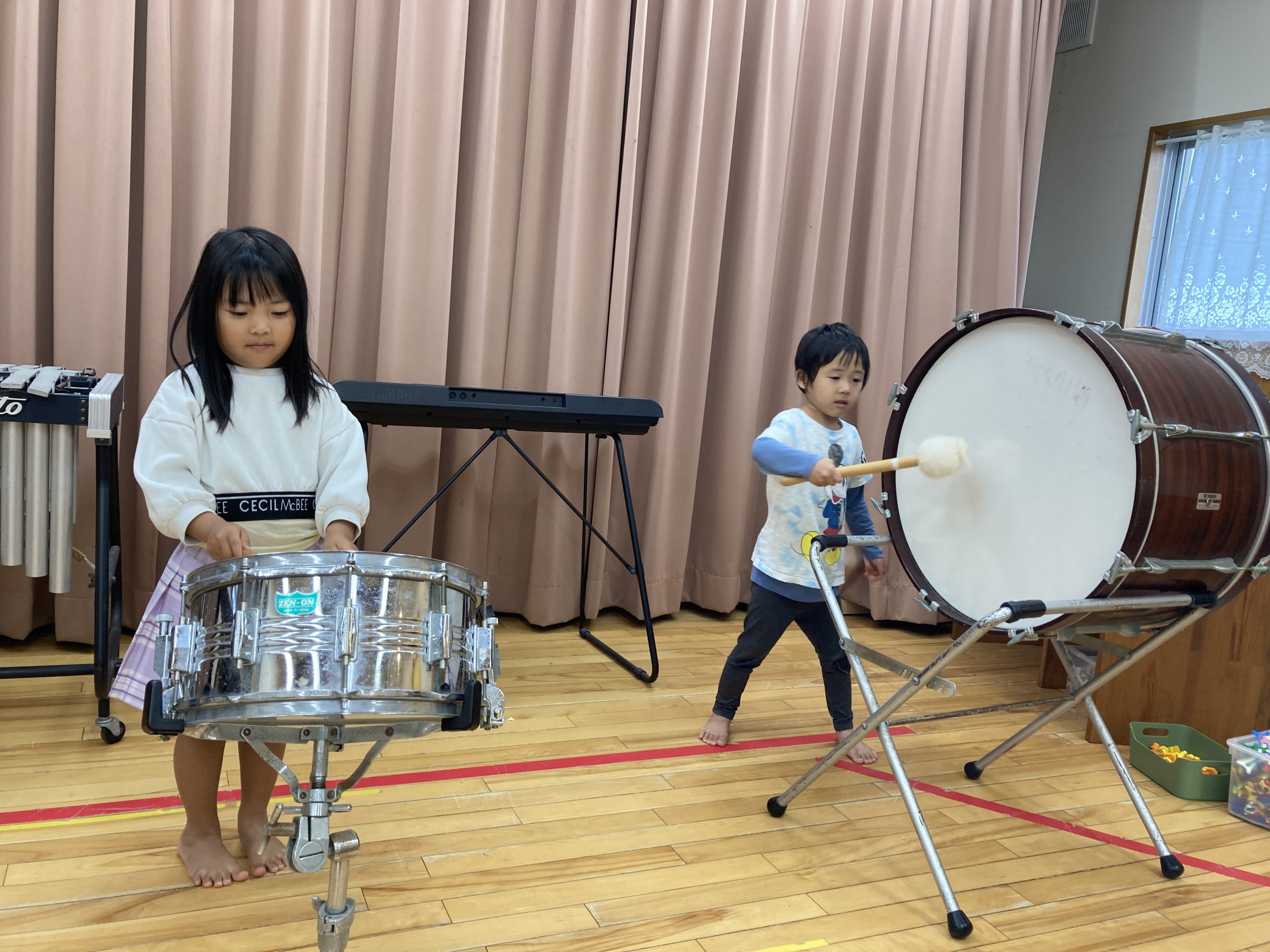 今日は楽器遊びをしました!大太鼓、小太鼓、木琴、鉄琴などいろいろな楽器を鳴らして楽しみました🎵
