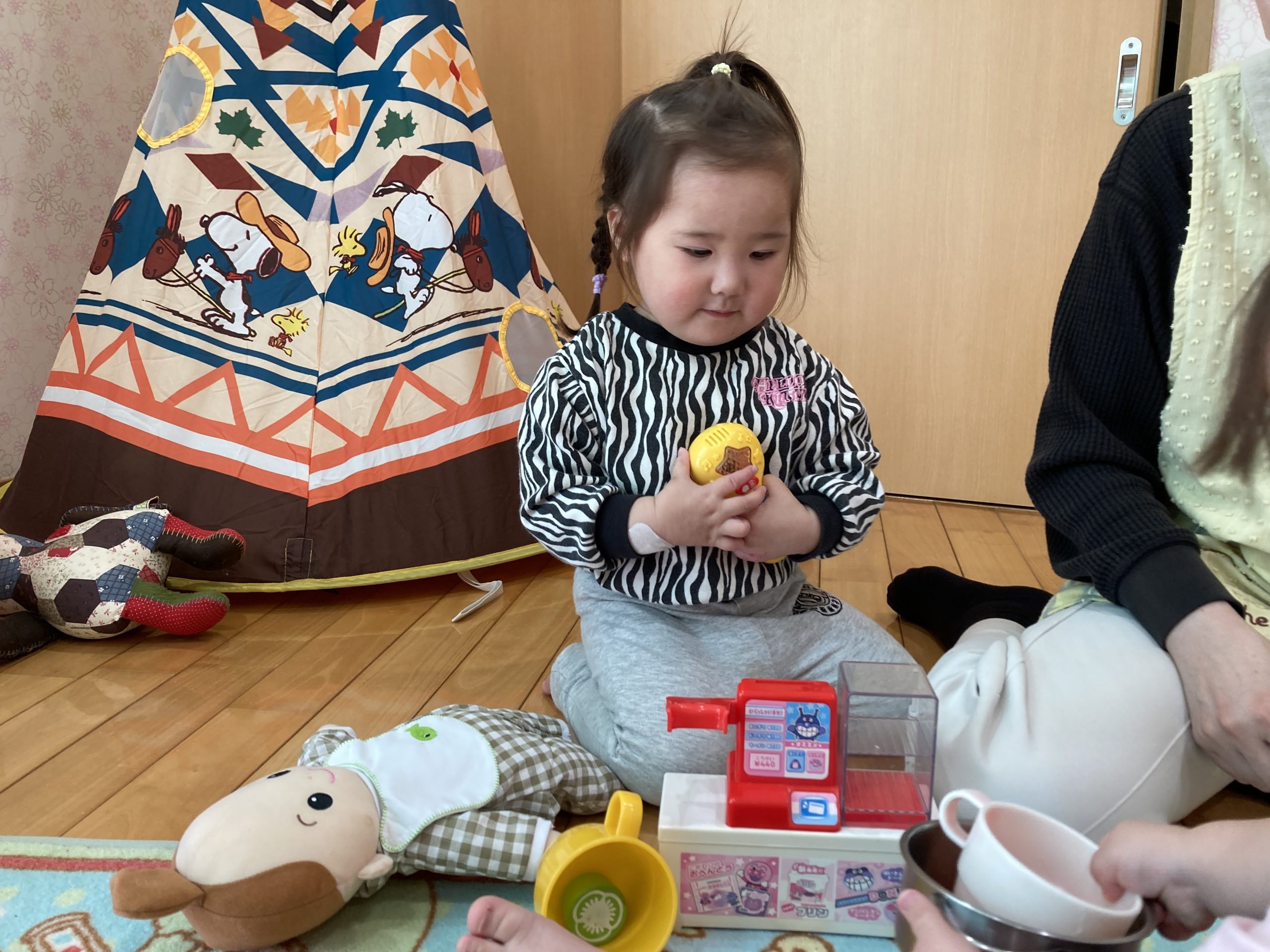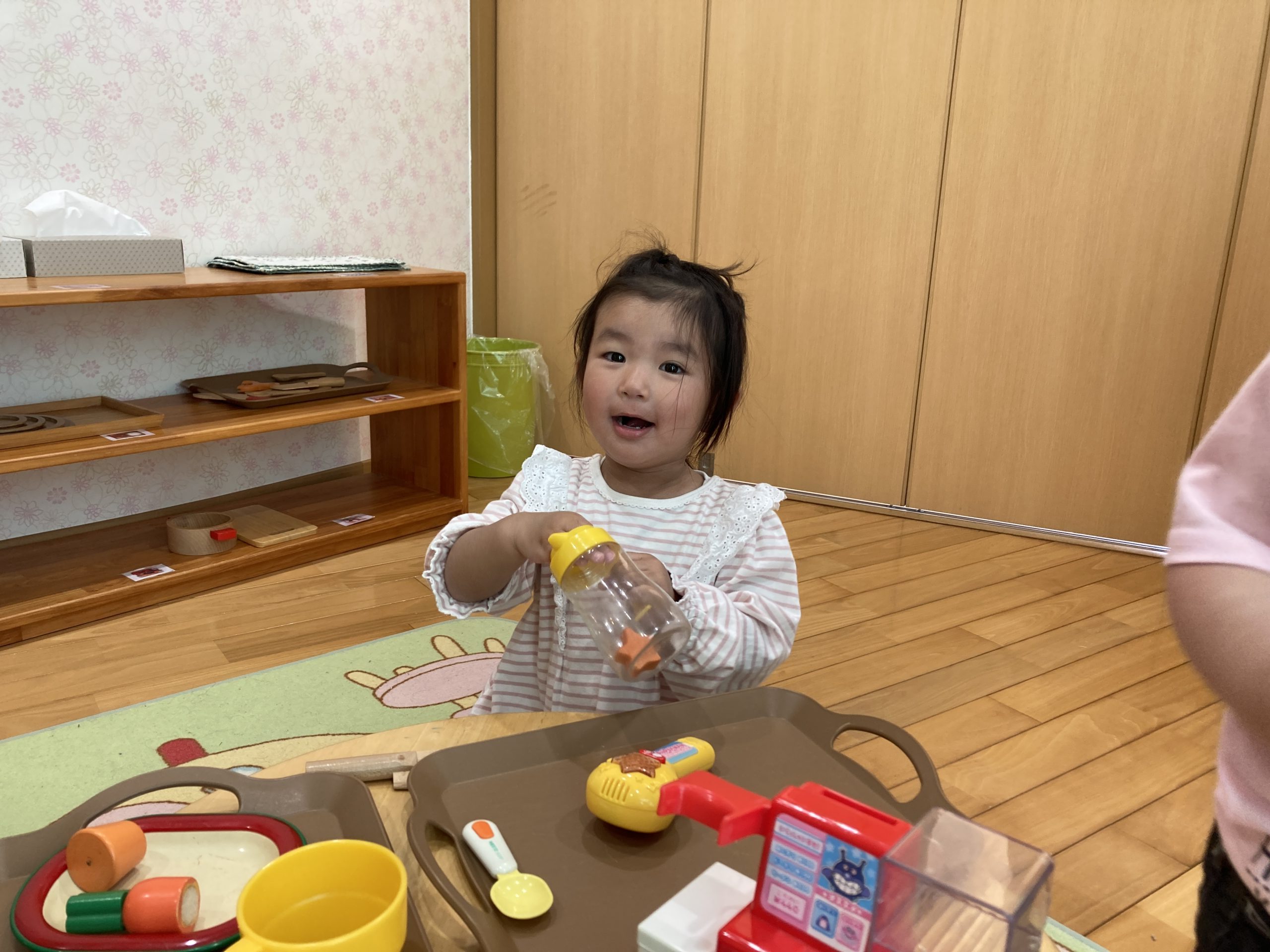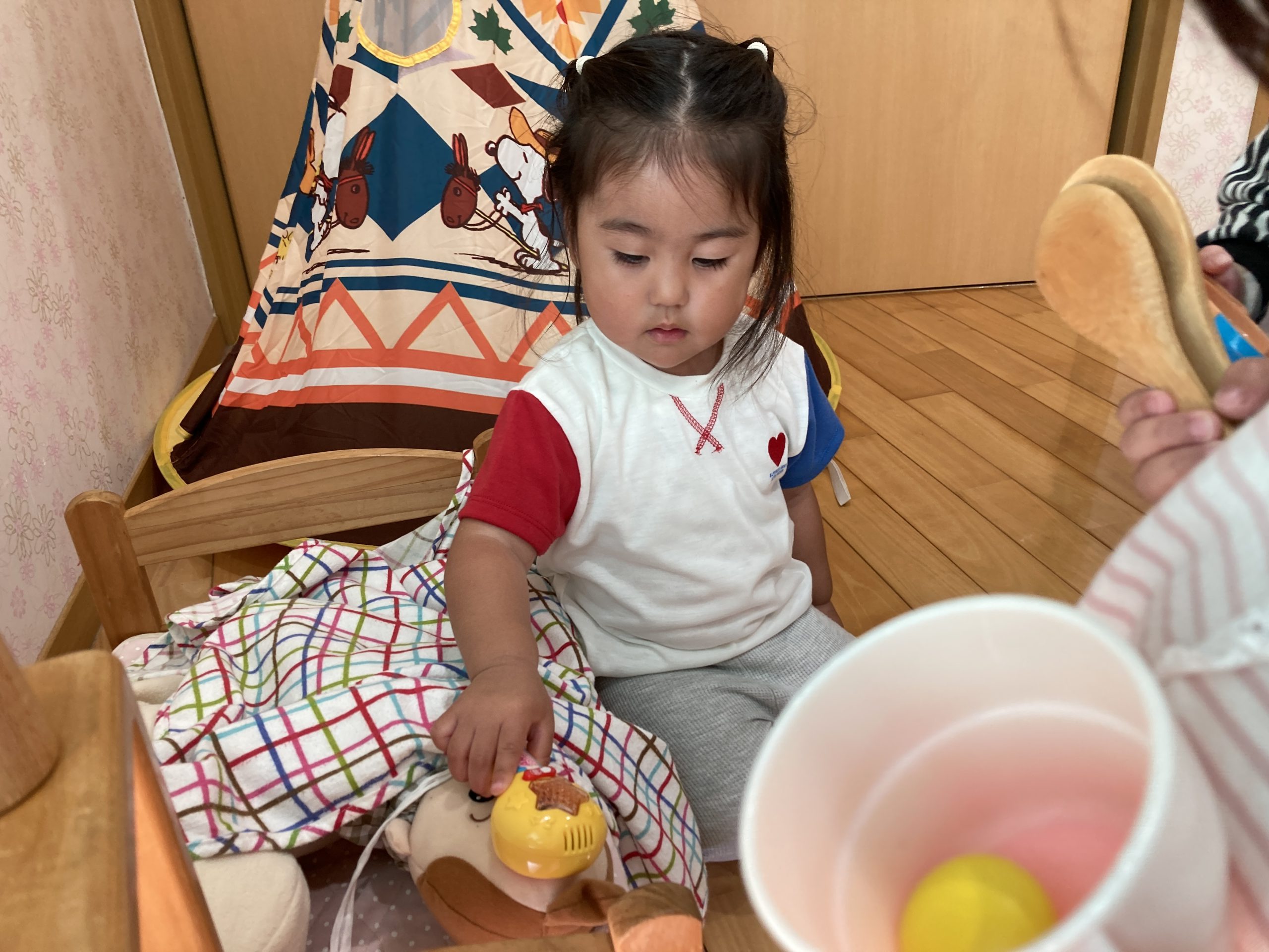 今日は、ままごと遊びをしました🍳「いらっしゃいませ!」とお店屋さんごっこをしたり、お人形のお世話をしたりと、お友だちと仲良く楽しんでいましたよ😊