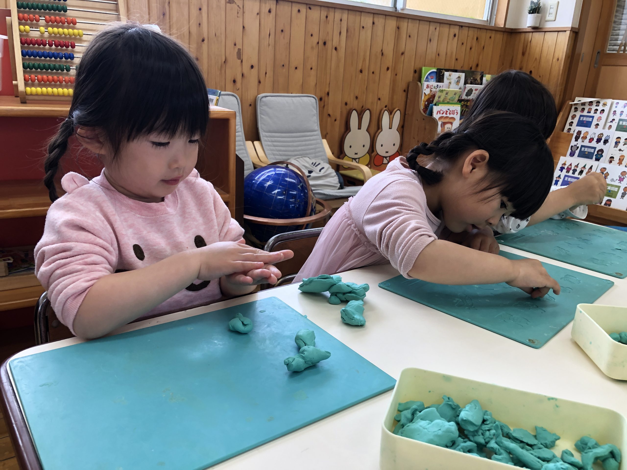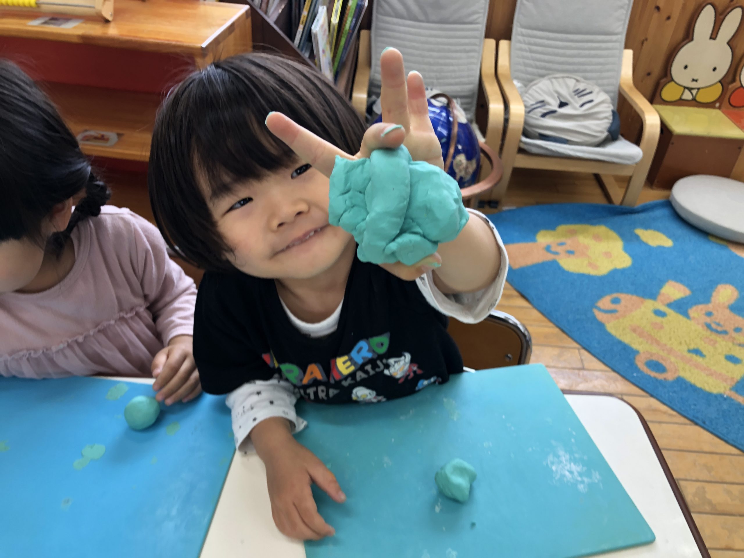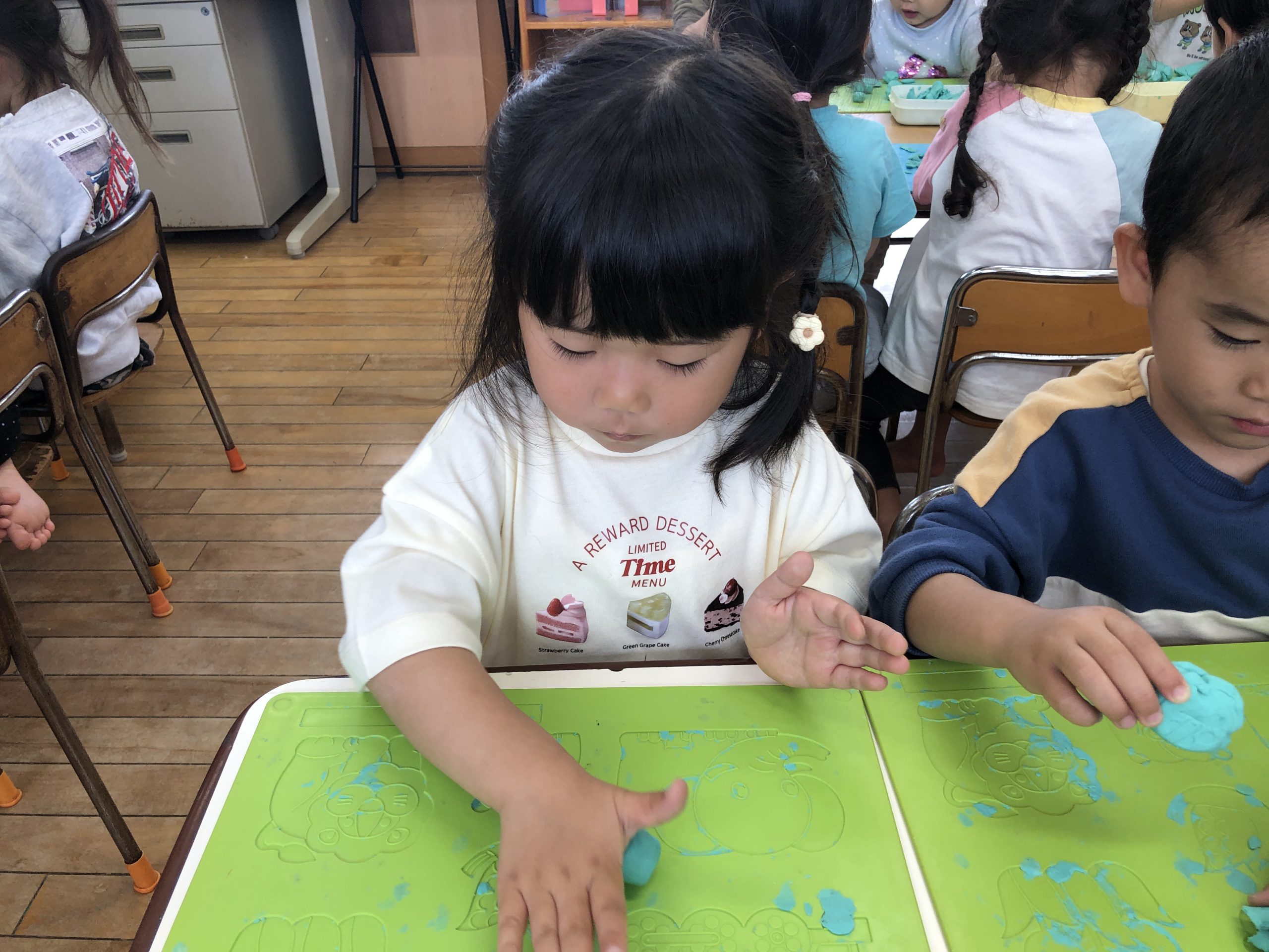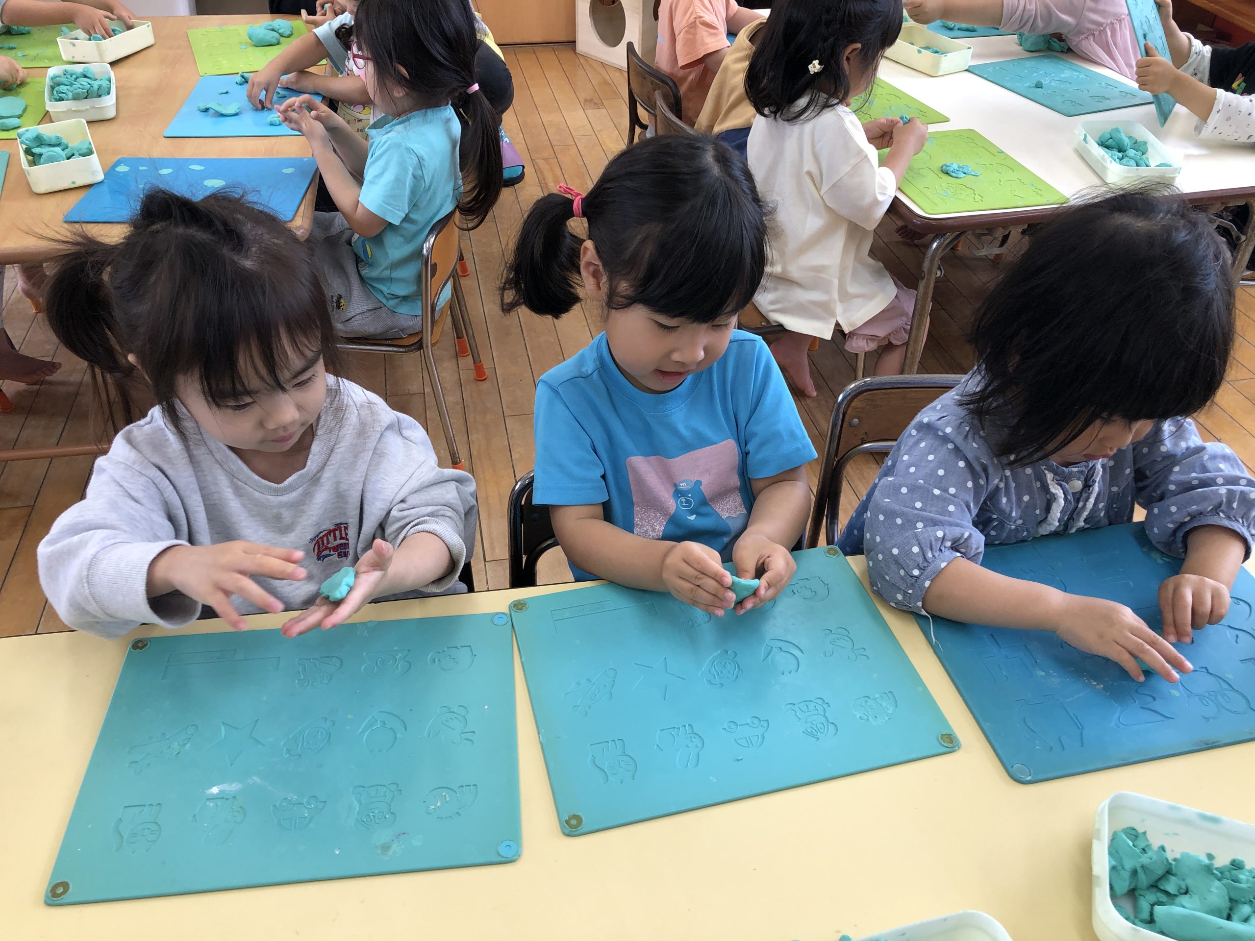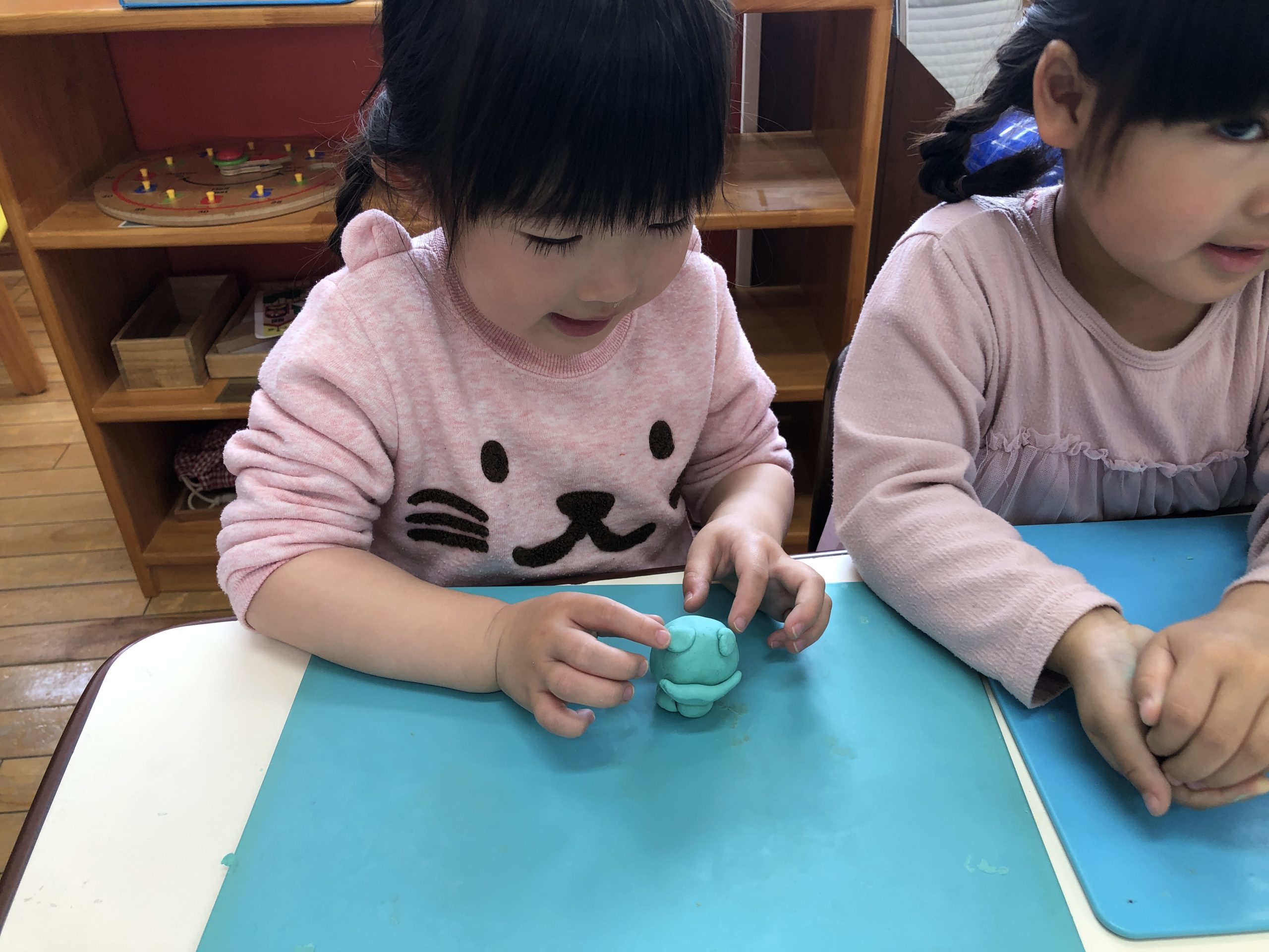 今日は、粘土遊びをしました。粘土板の型で好きな型抜きをしたり、雪だるま⛄️や猫など作りたいものを作っていました。