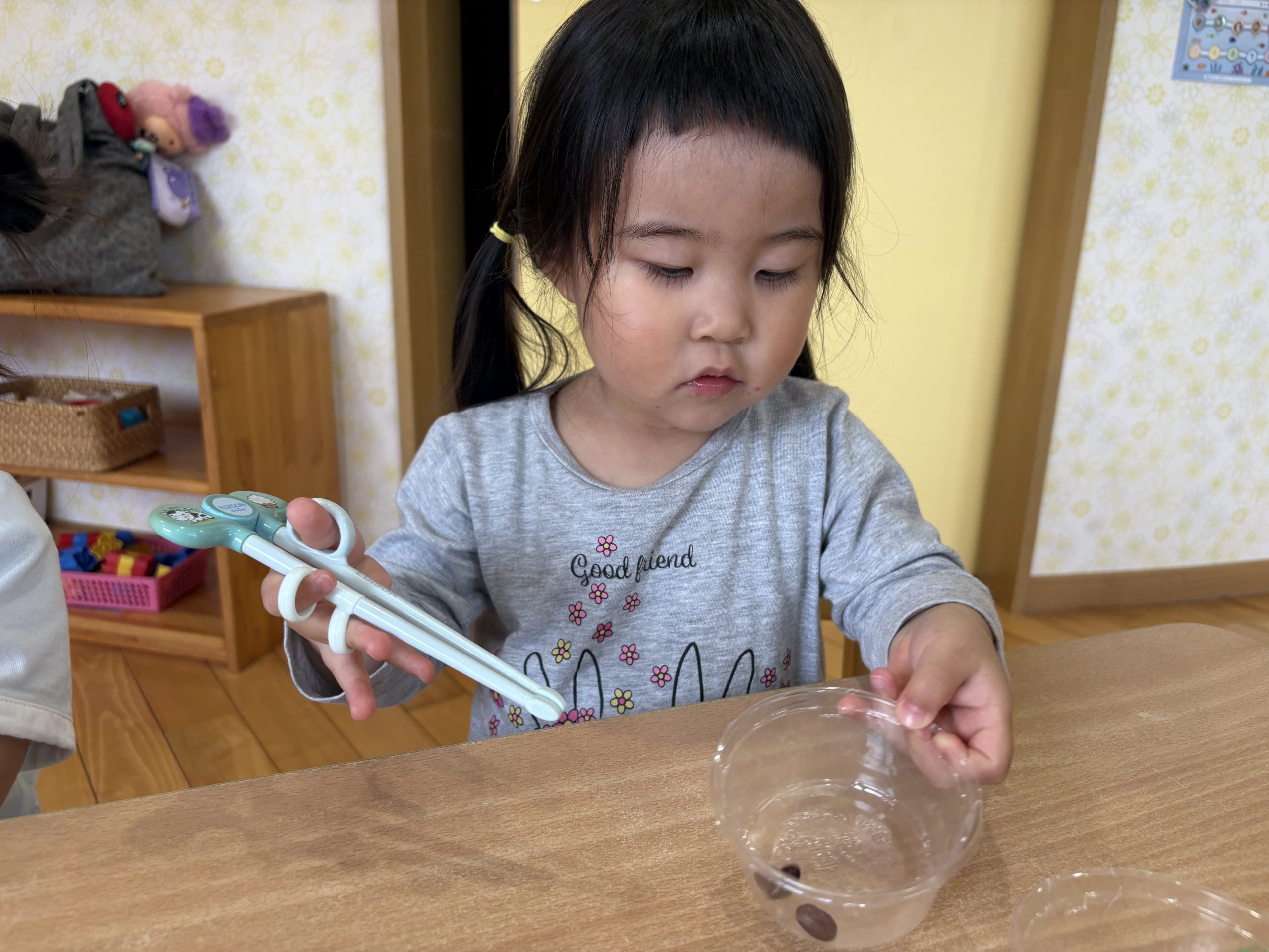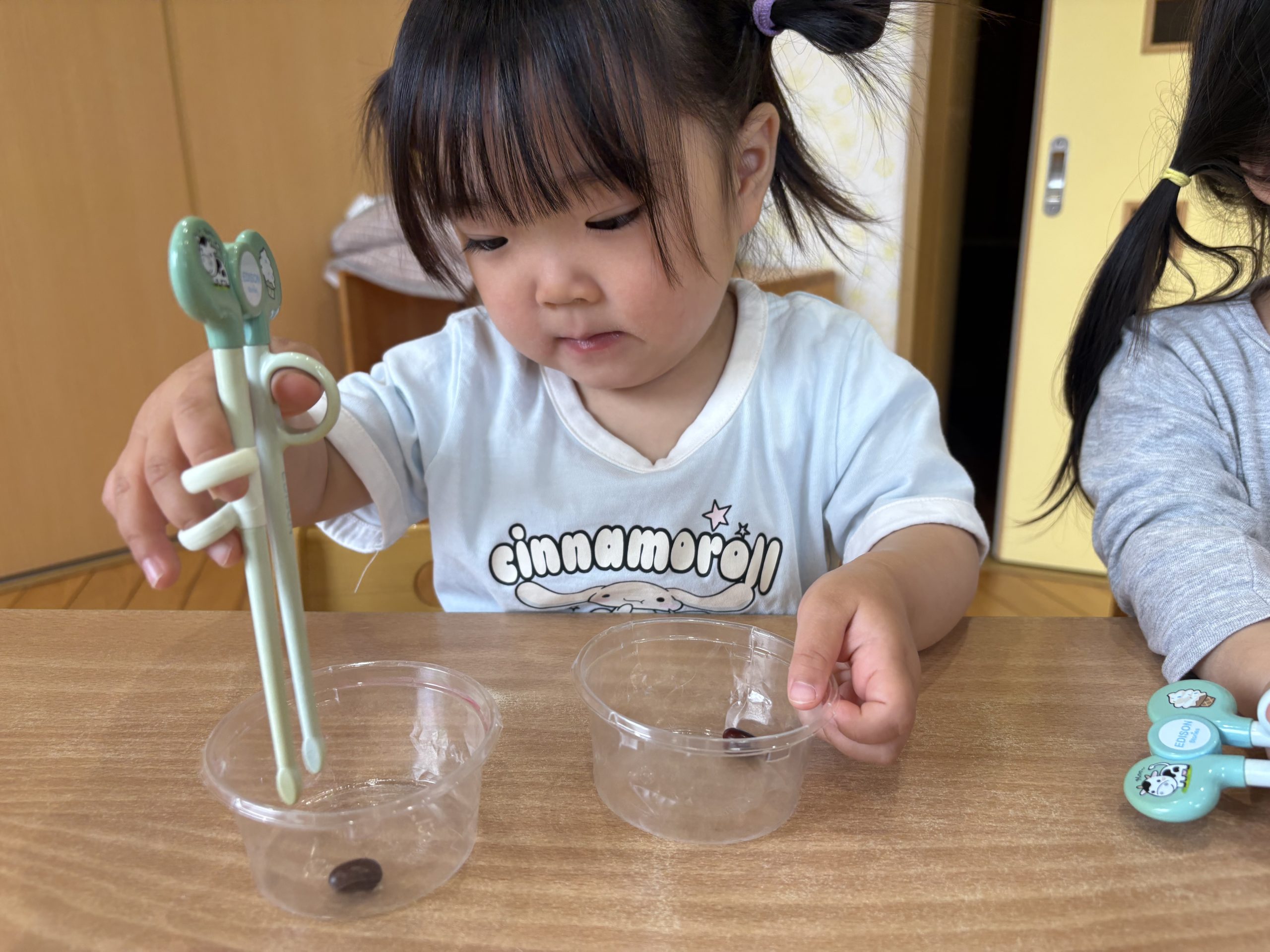 今日は、豆うつしをしました🥢エジソン箸やスプーンを使って集中して取り組むことが出来ていましたよ😊