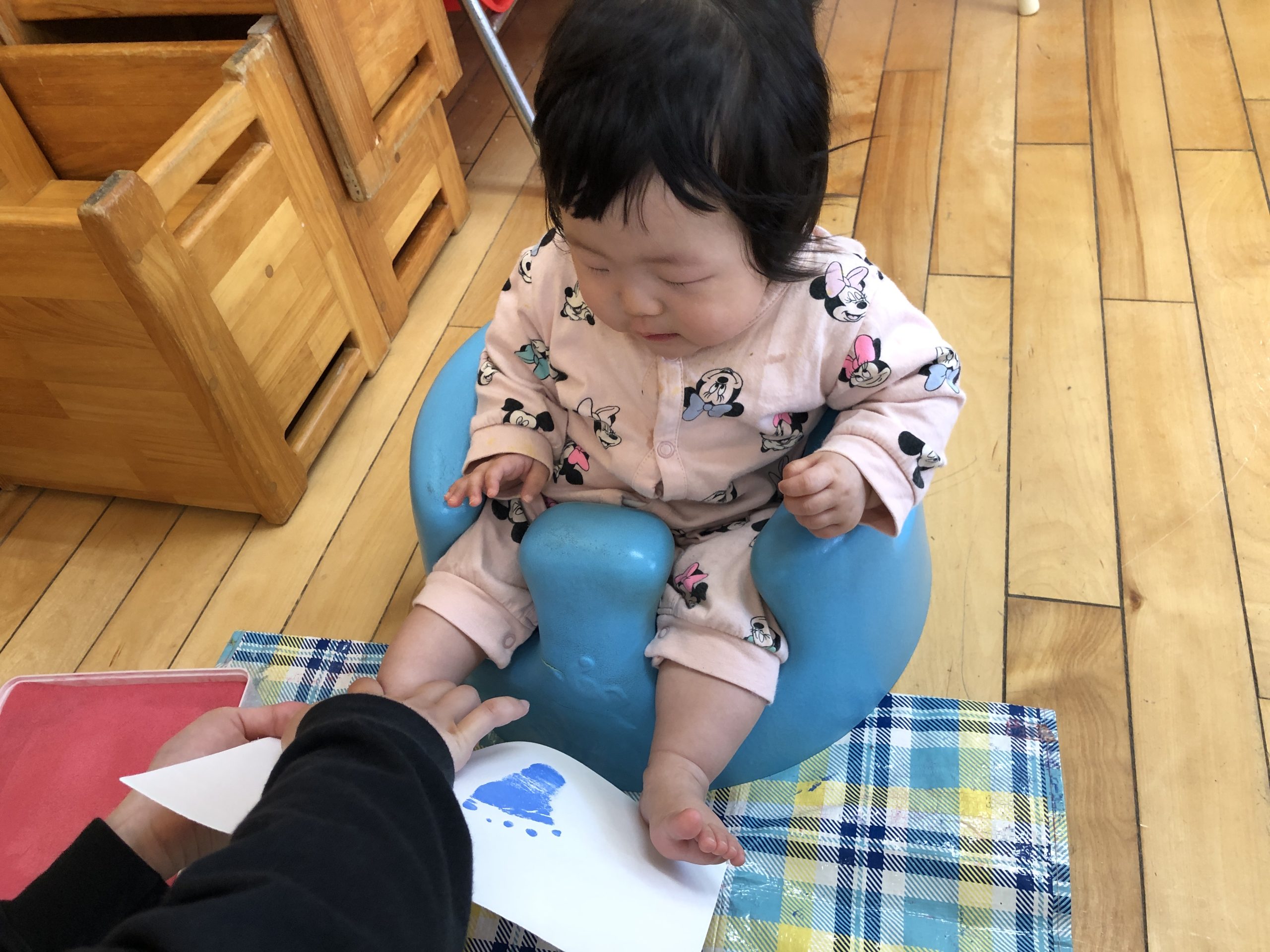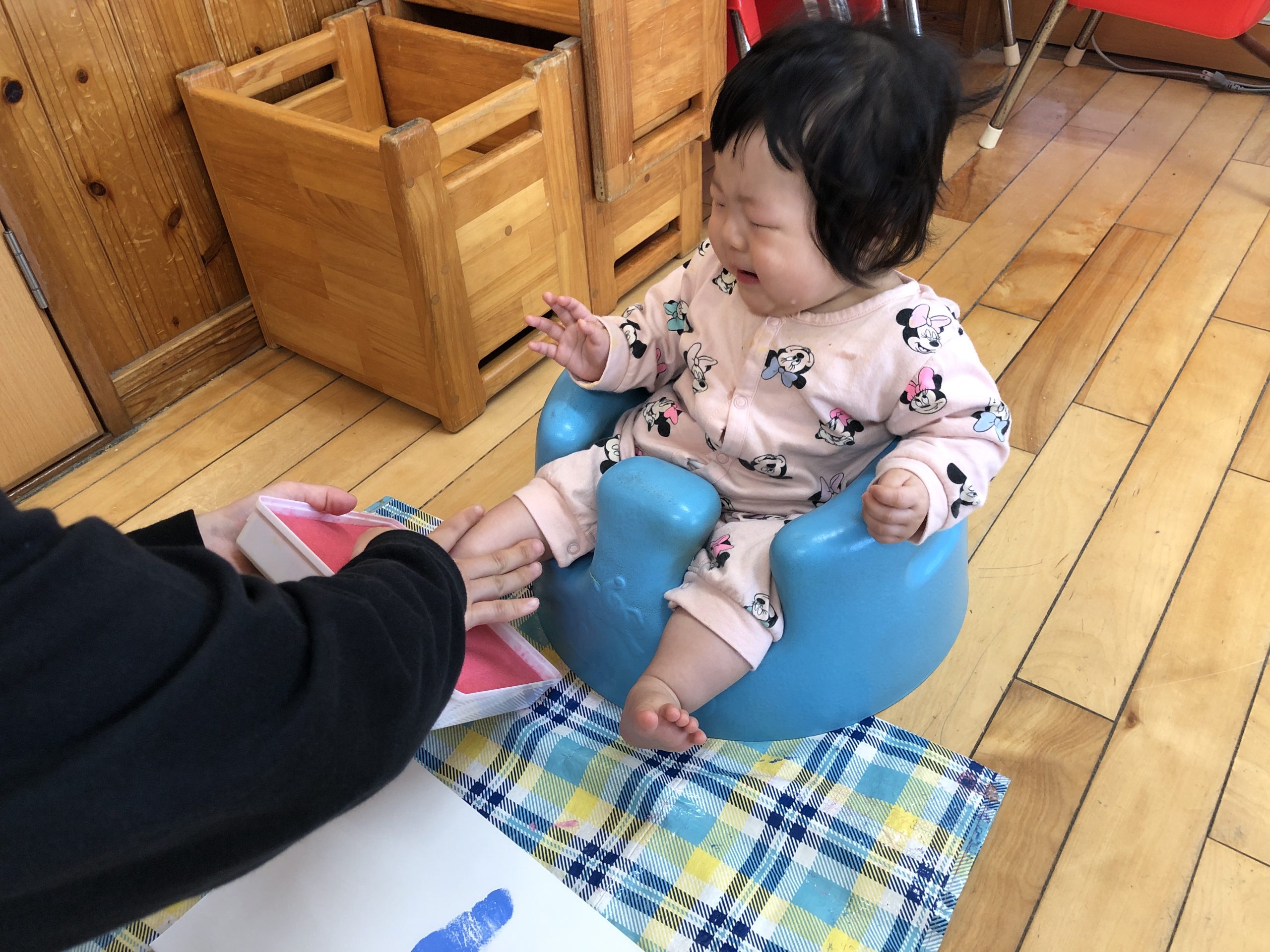 今日は鯉のぼり製作で足形を取りました🎏スタンプの感覚が嫌だったのか泣いていました😖