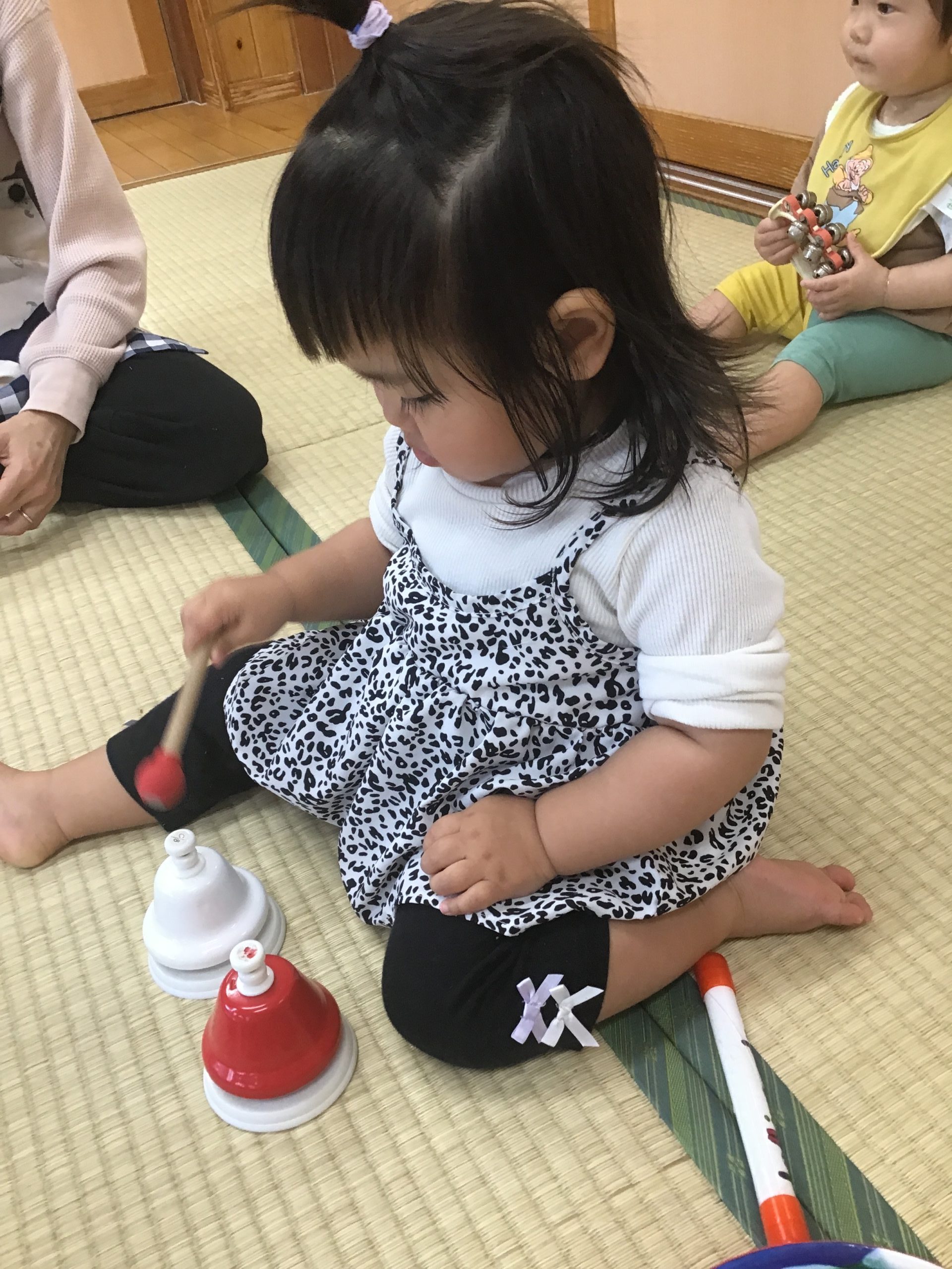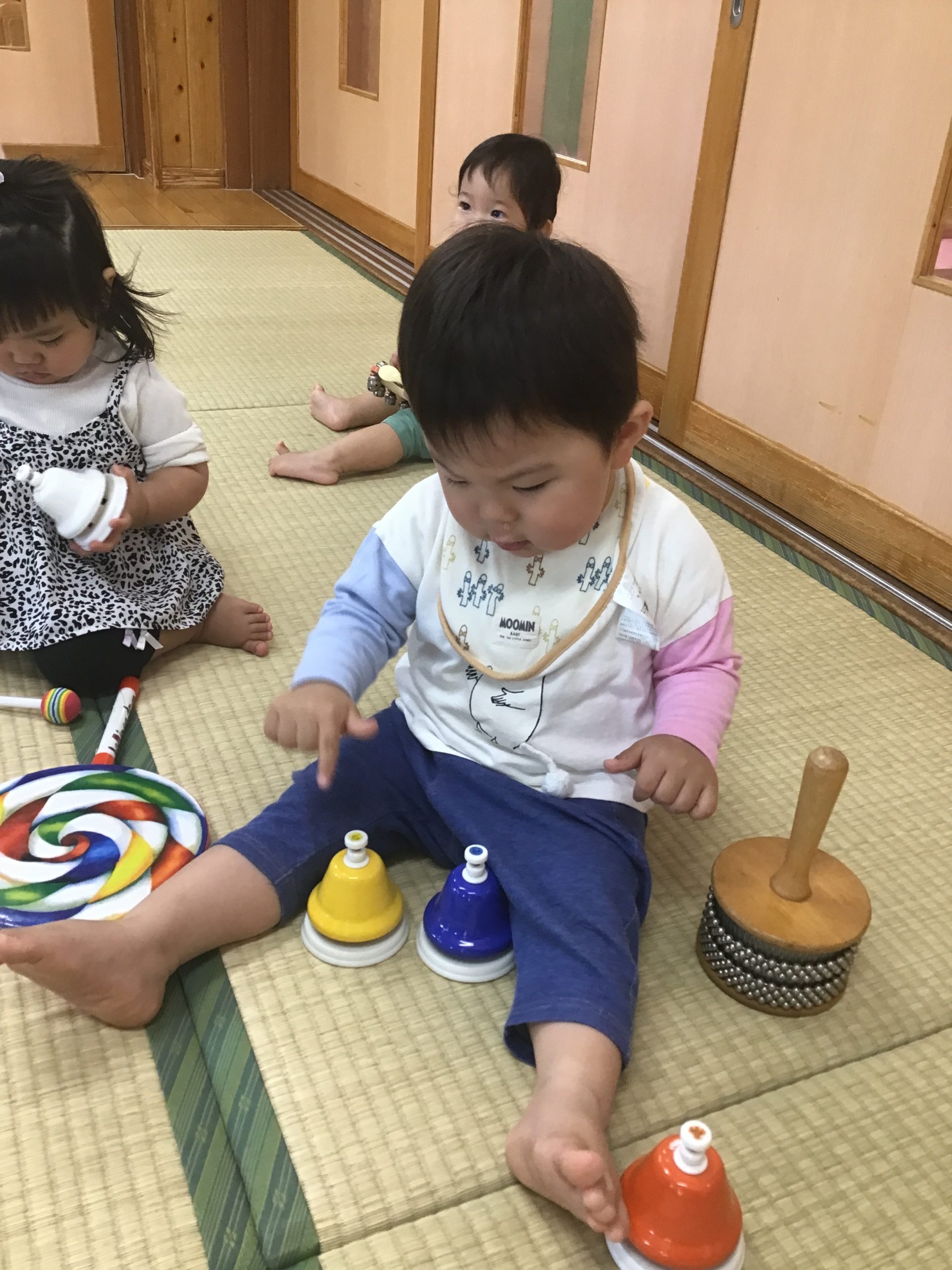 今日は楽器遊びをしました❗️音楽に合わせてハンドベルやタンバリンなど色々な楽器に触れることができました😊
