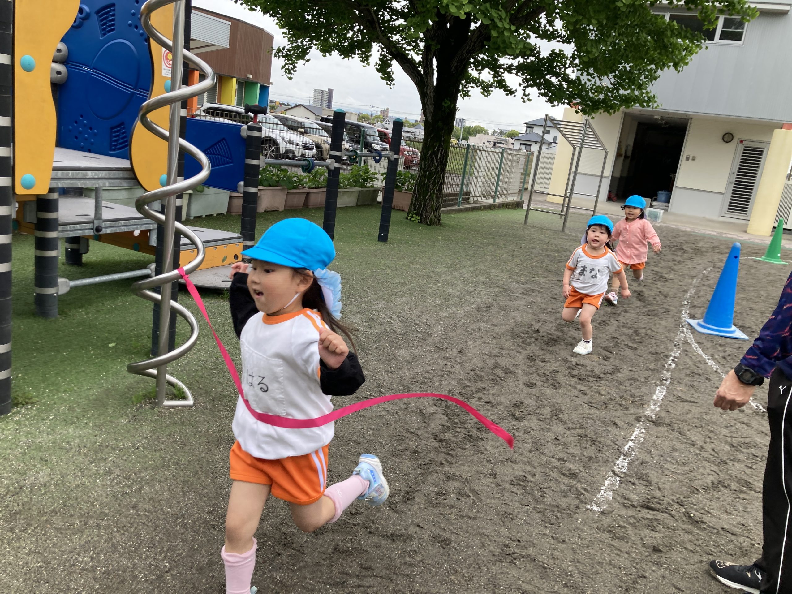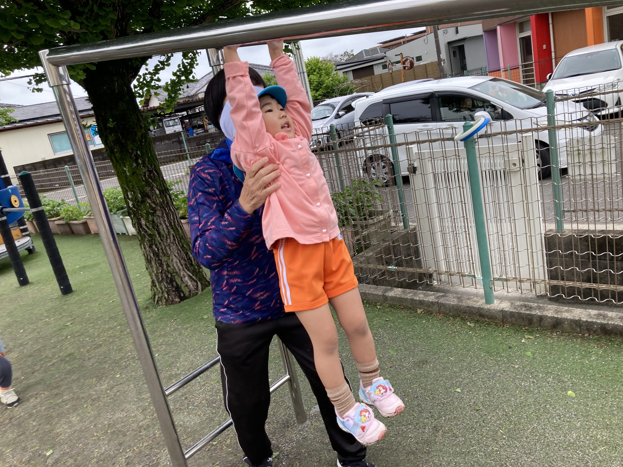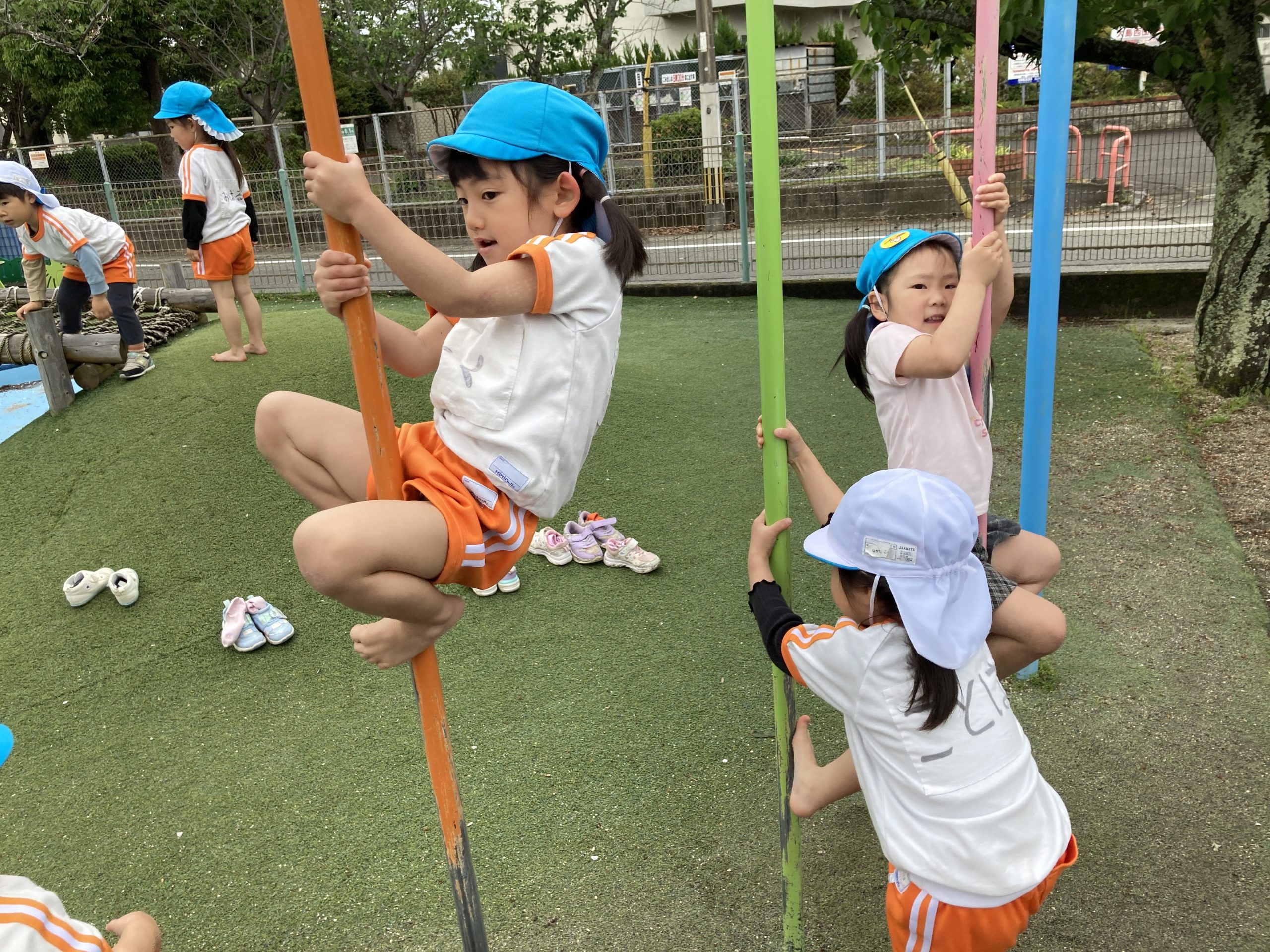 今日は園庭で『体育あそび』に参加しました。かけっこ、リレーをしたり、うんていや鉄棒、のぼり棒の練習をして、体を動かしました✨