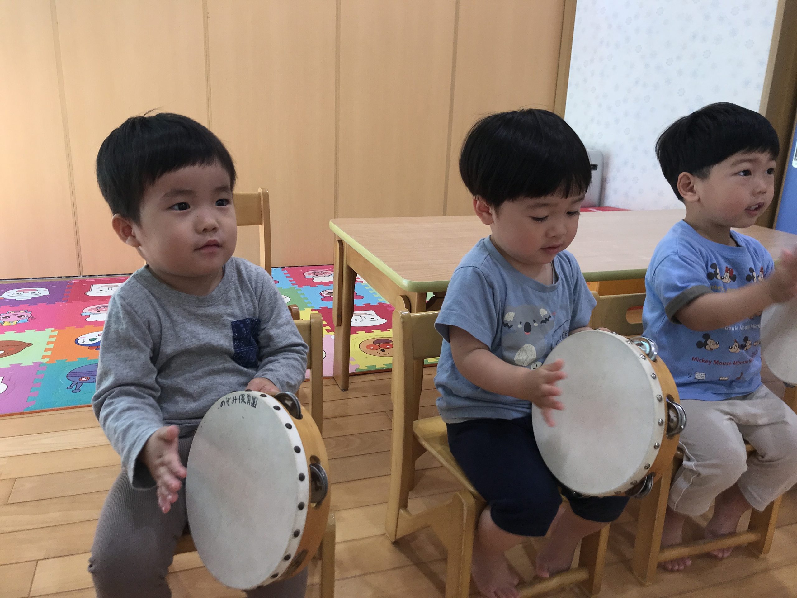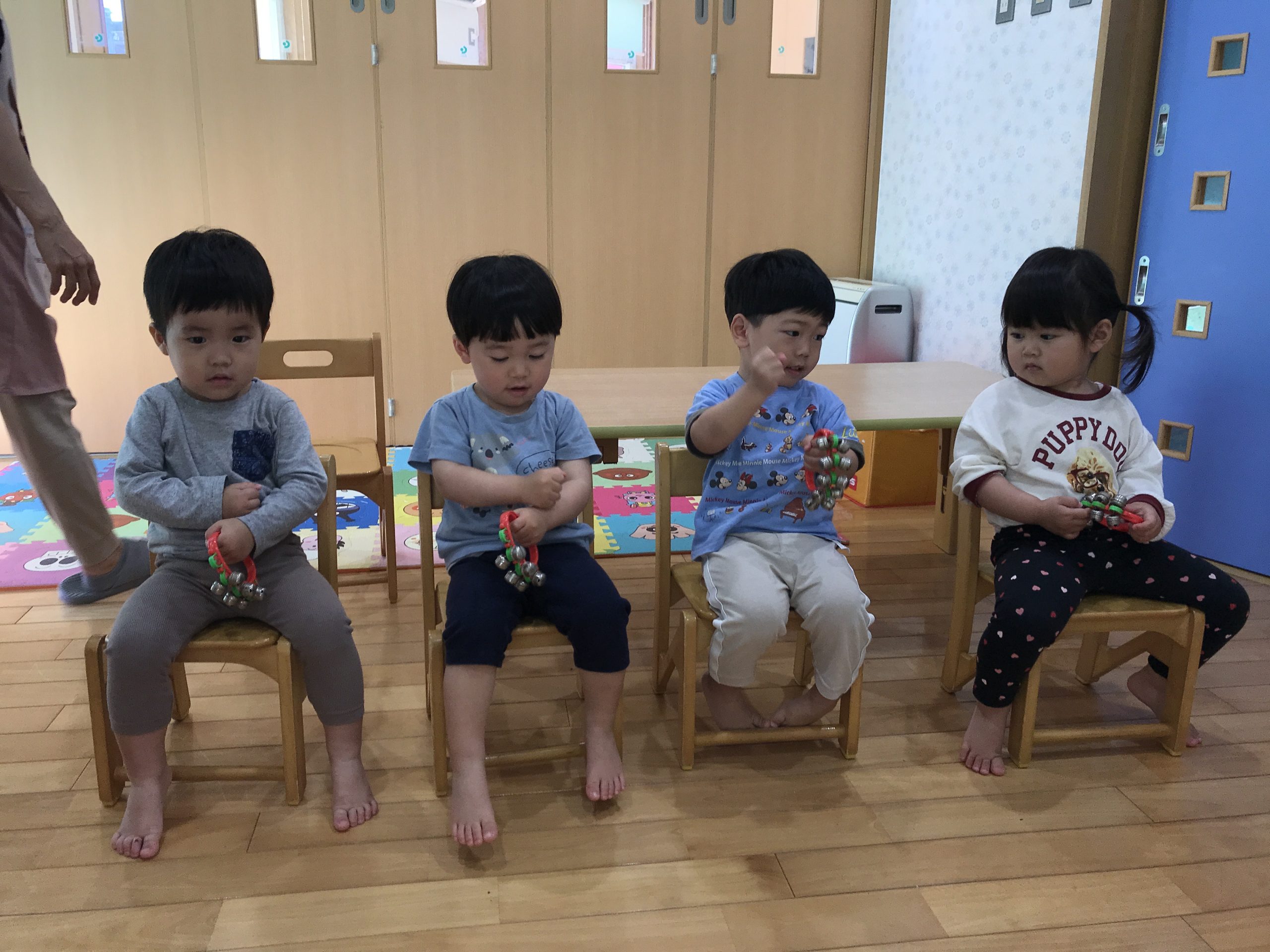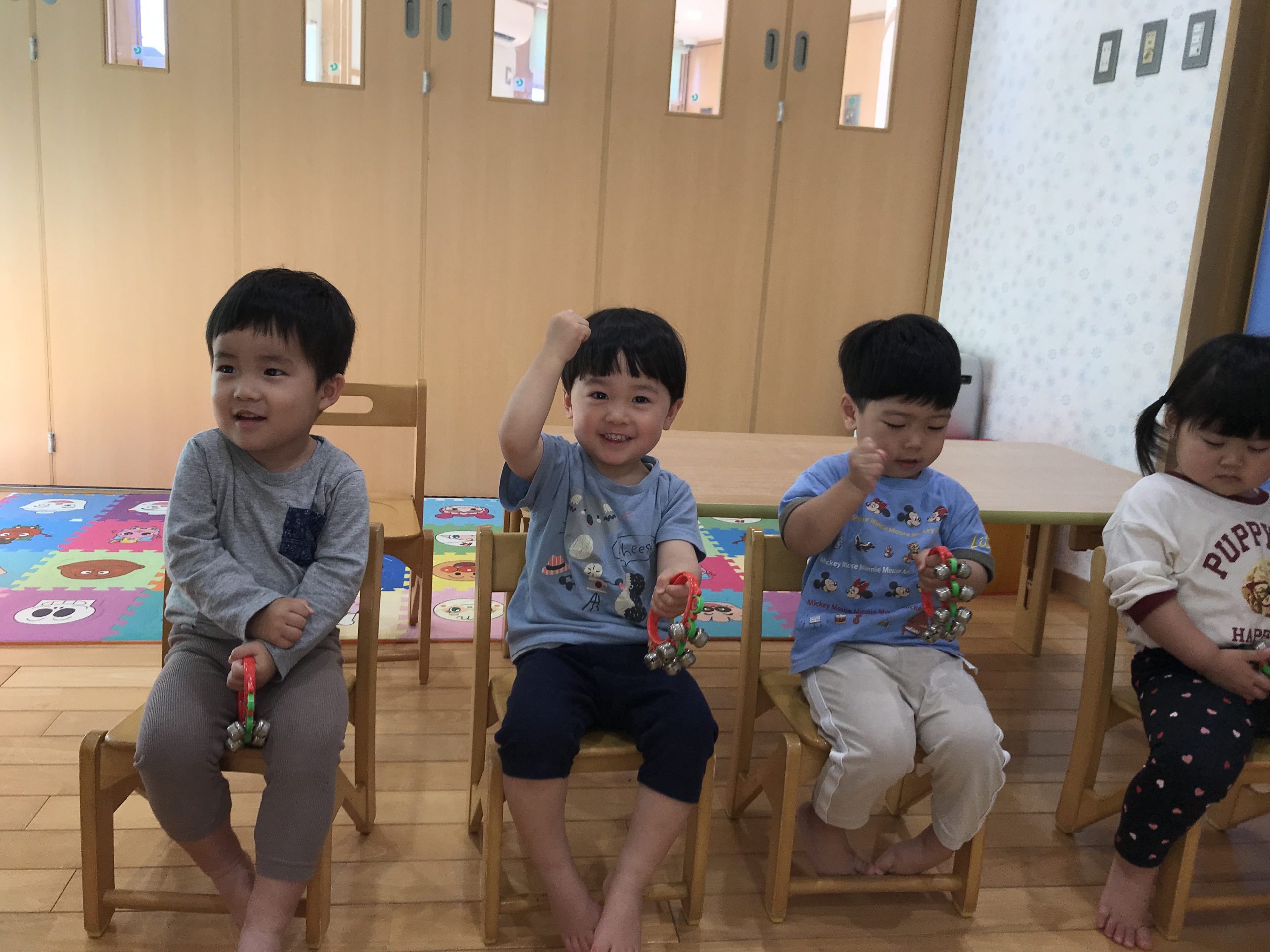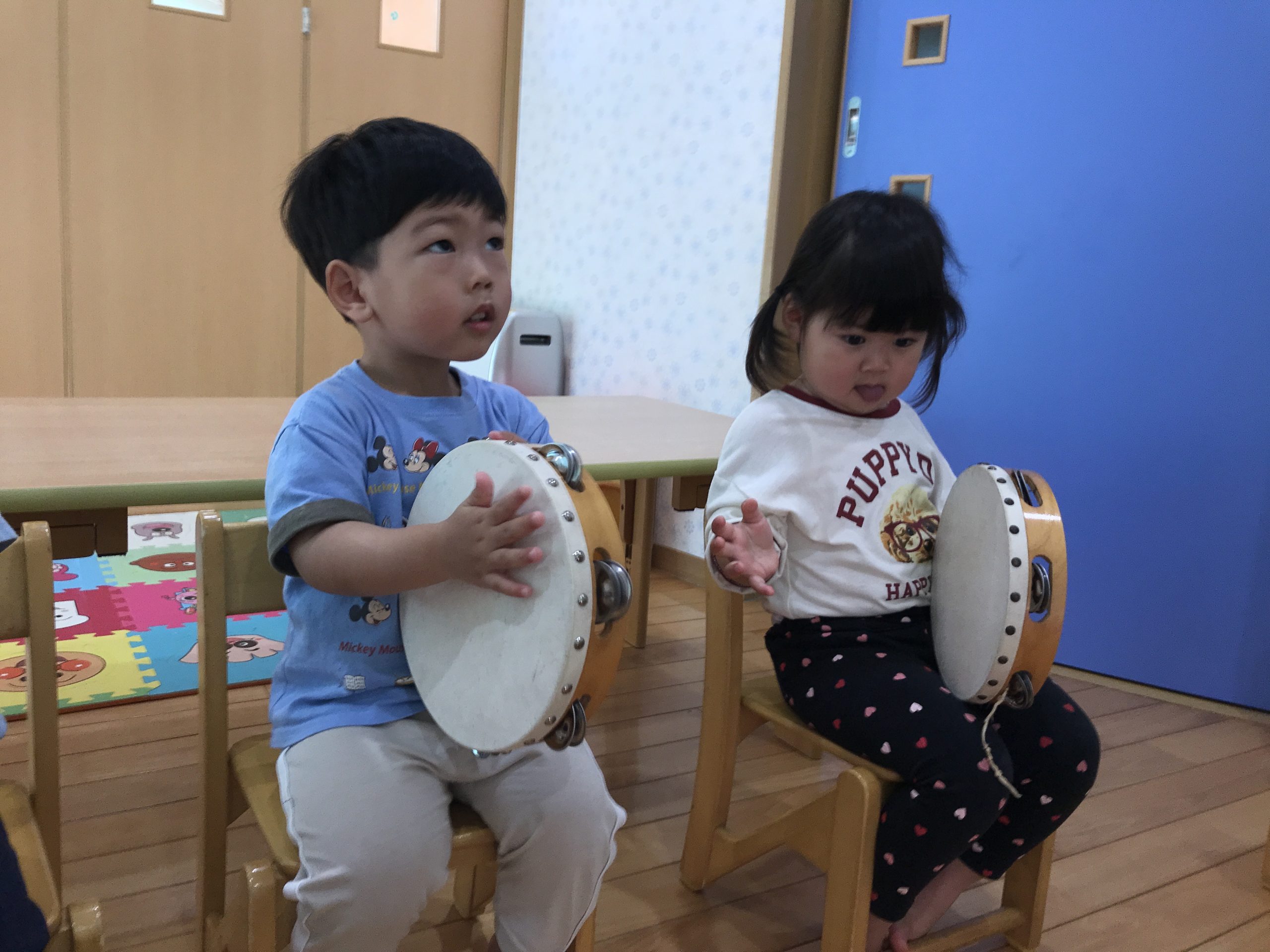 今日は、楽器遊びをしました🎶タンバリンやすずを使って、音楽に合わせて音を鳴らしながら楽しんでいましたよ😊